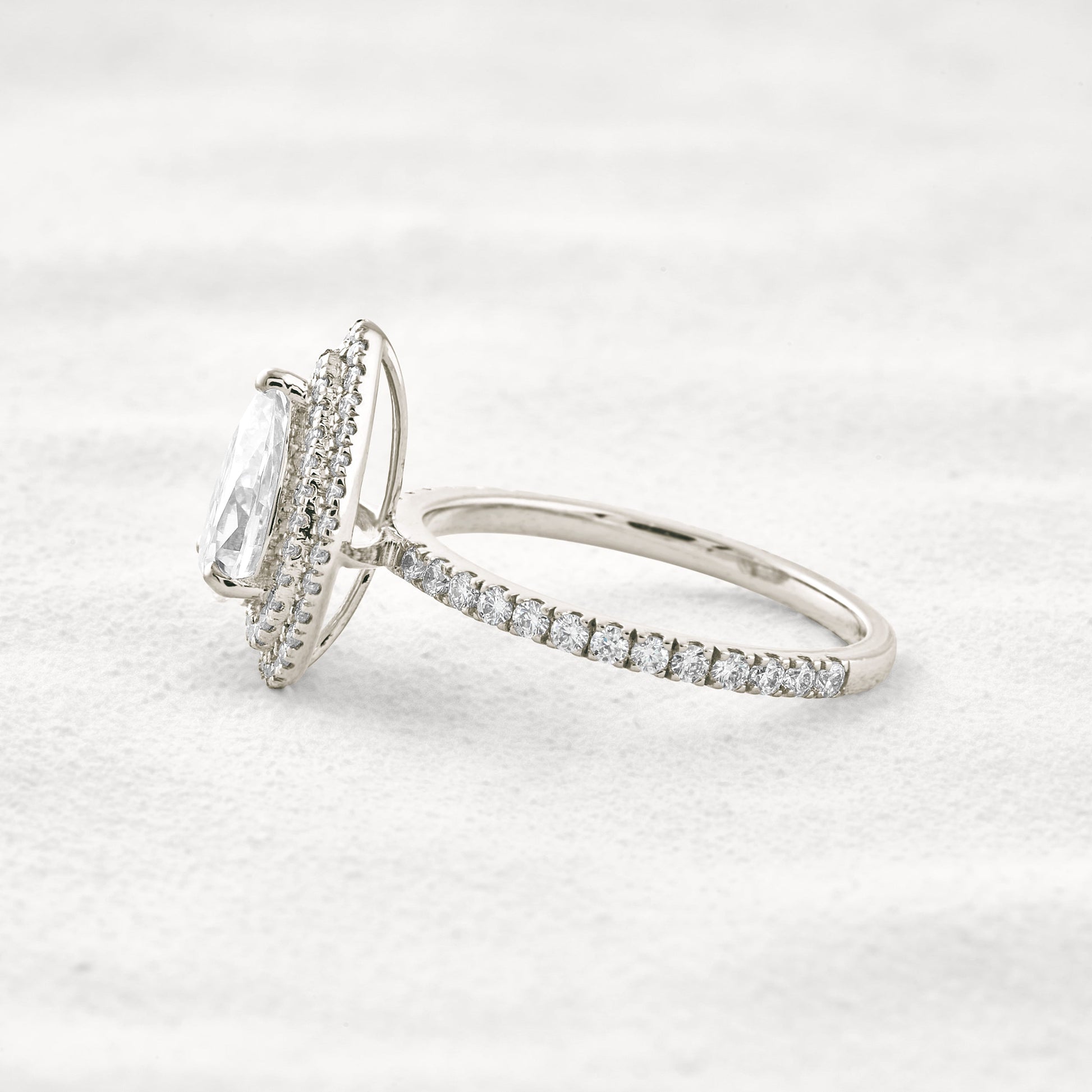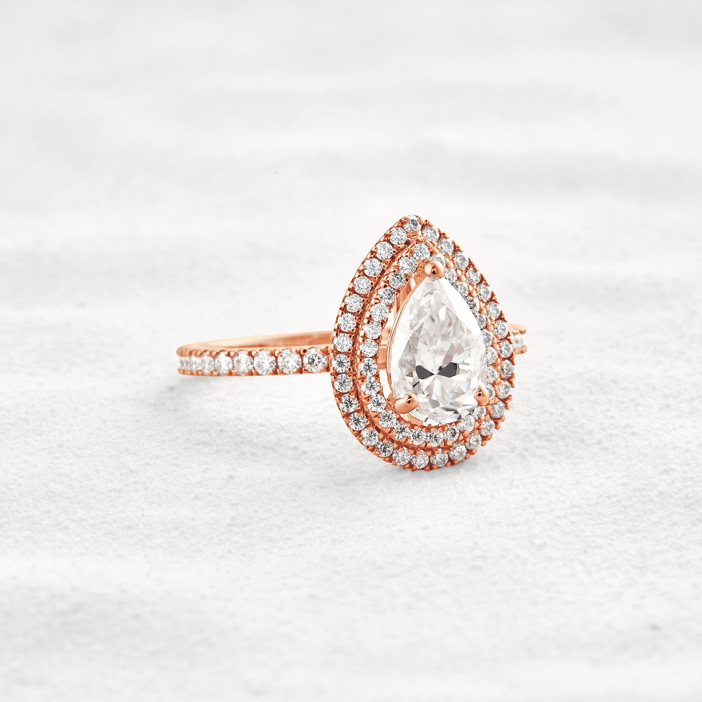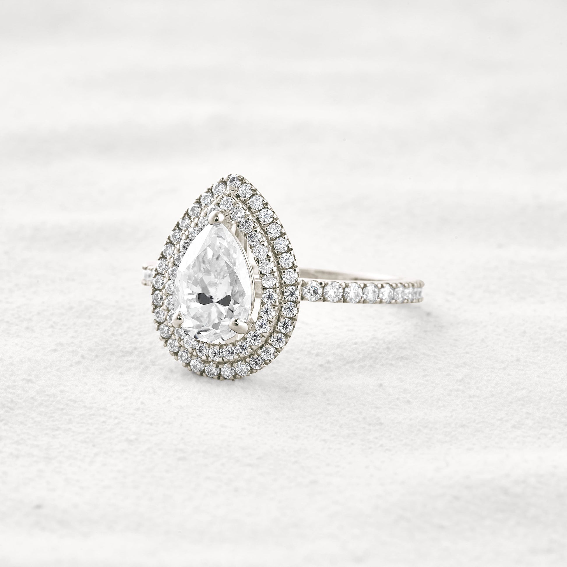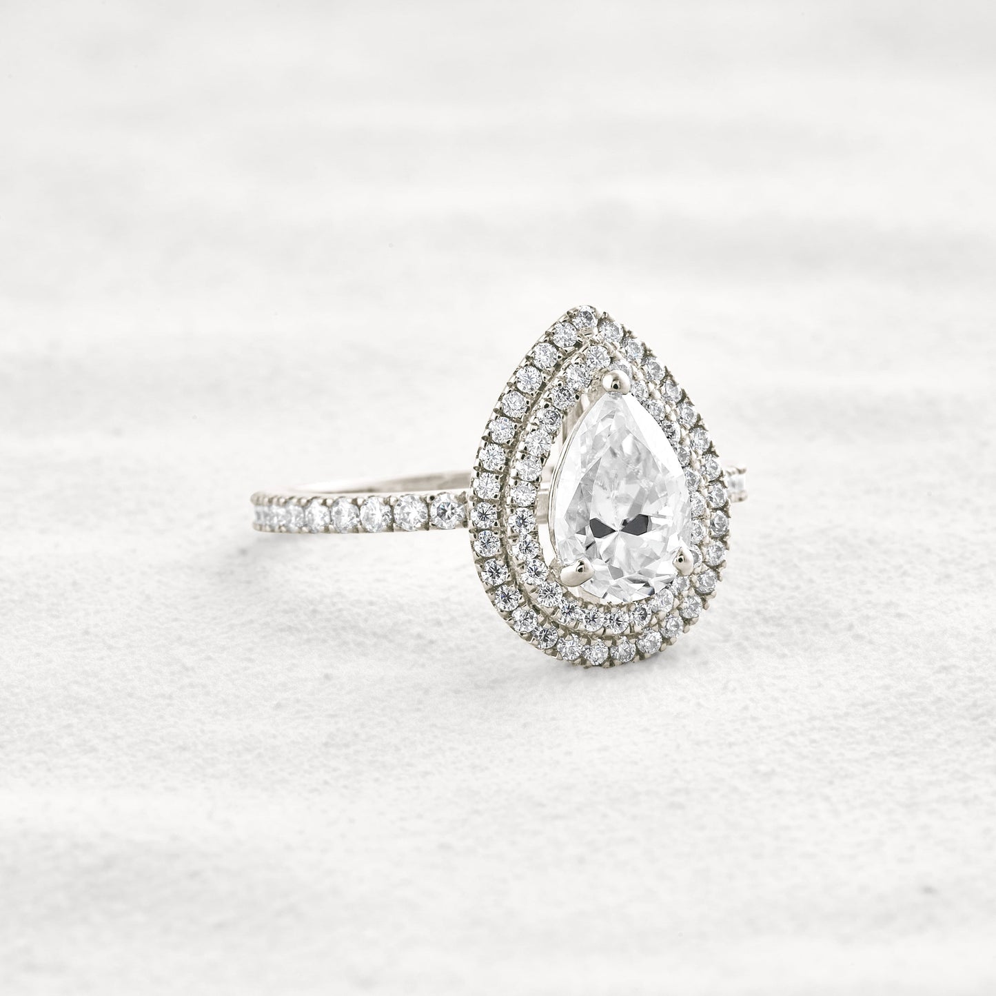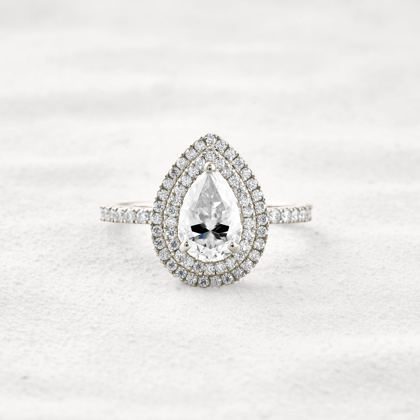 1.33 CT Pear Cut Double Halo Moissanite Diamond Engagement Ring In White Gold