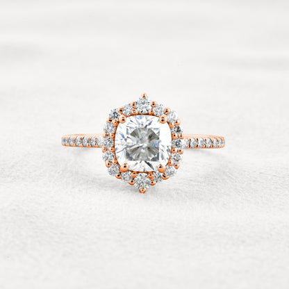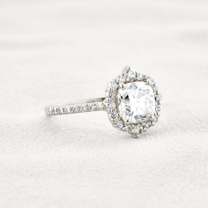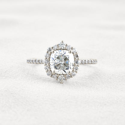 1.5 CT Cushion Cut Halo & Pave Moissanite Wedding Ring