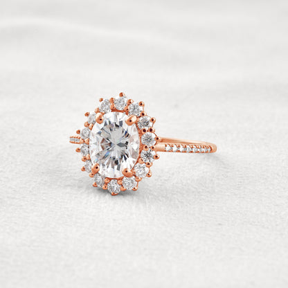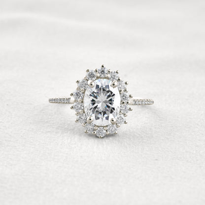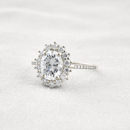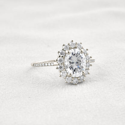 1.91 CT Oval Cut Halo & Pave Moissanite Diamond Engagement Ring