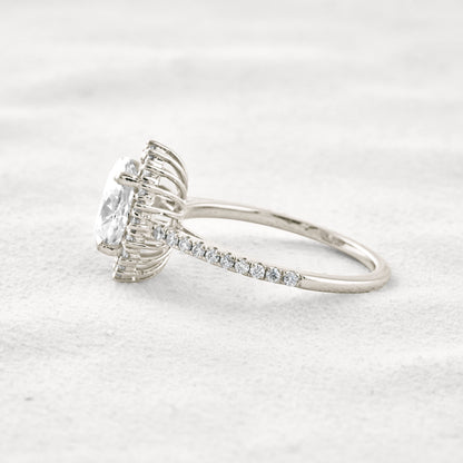 1.91 CT Oval Cut Halo & Pave Moissanite Diamond Engagement Ring In White Gold