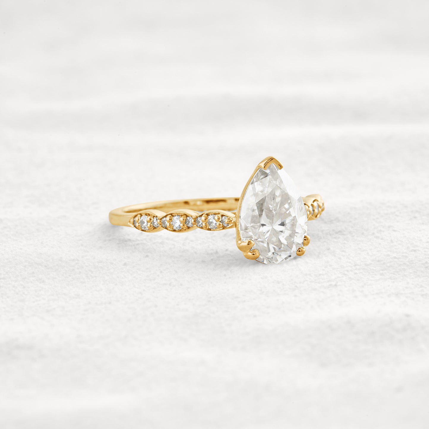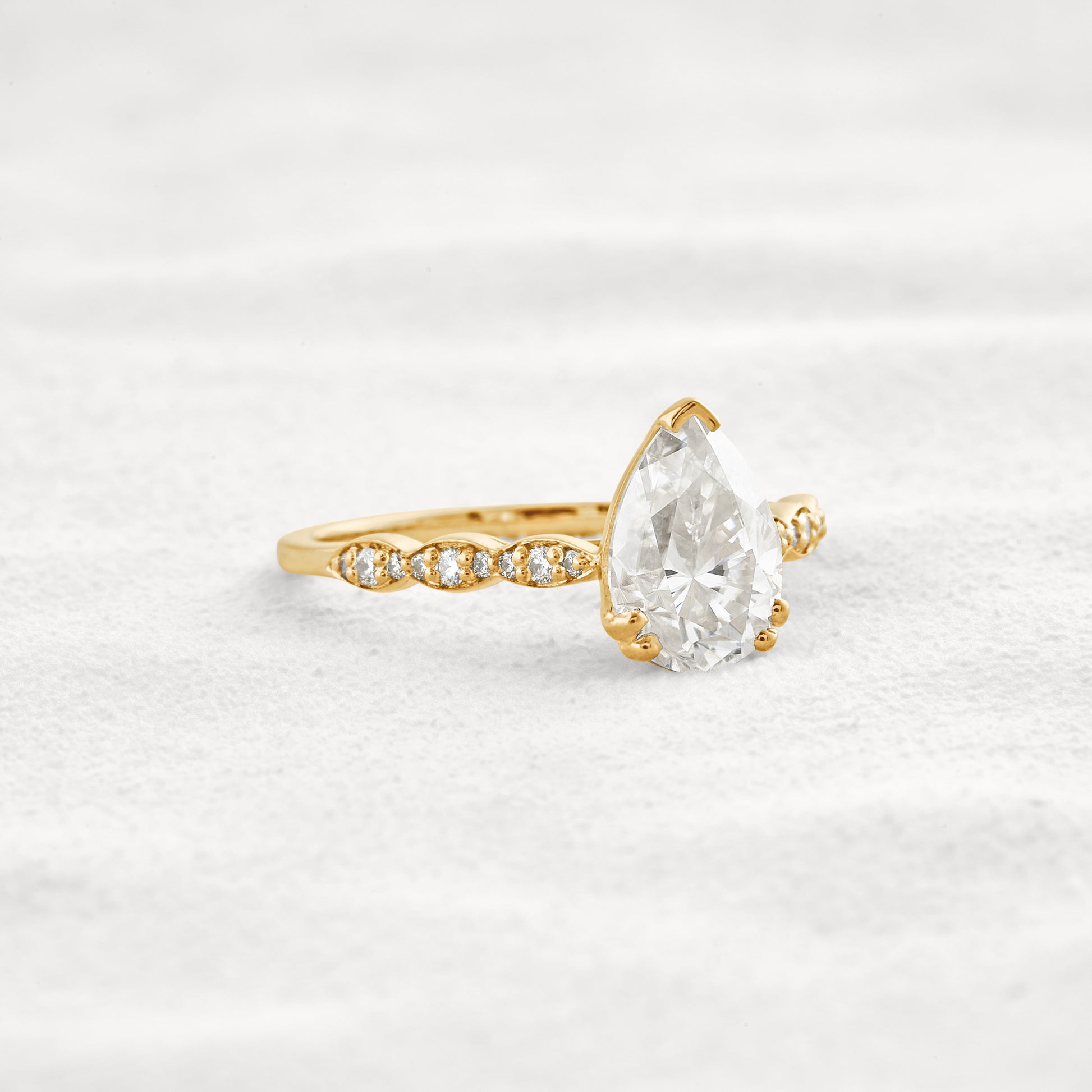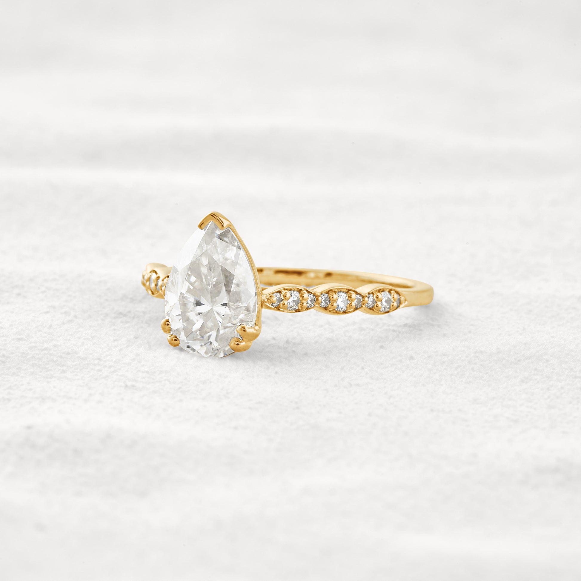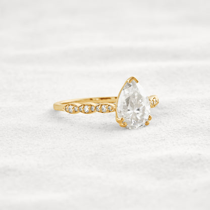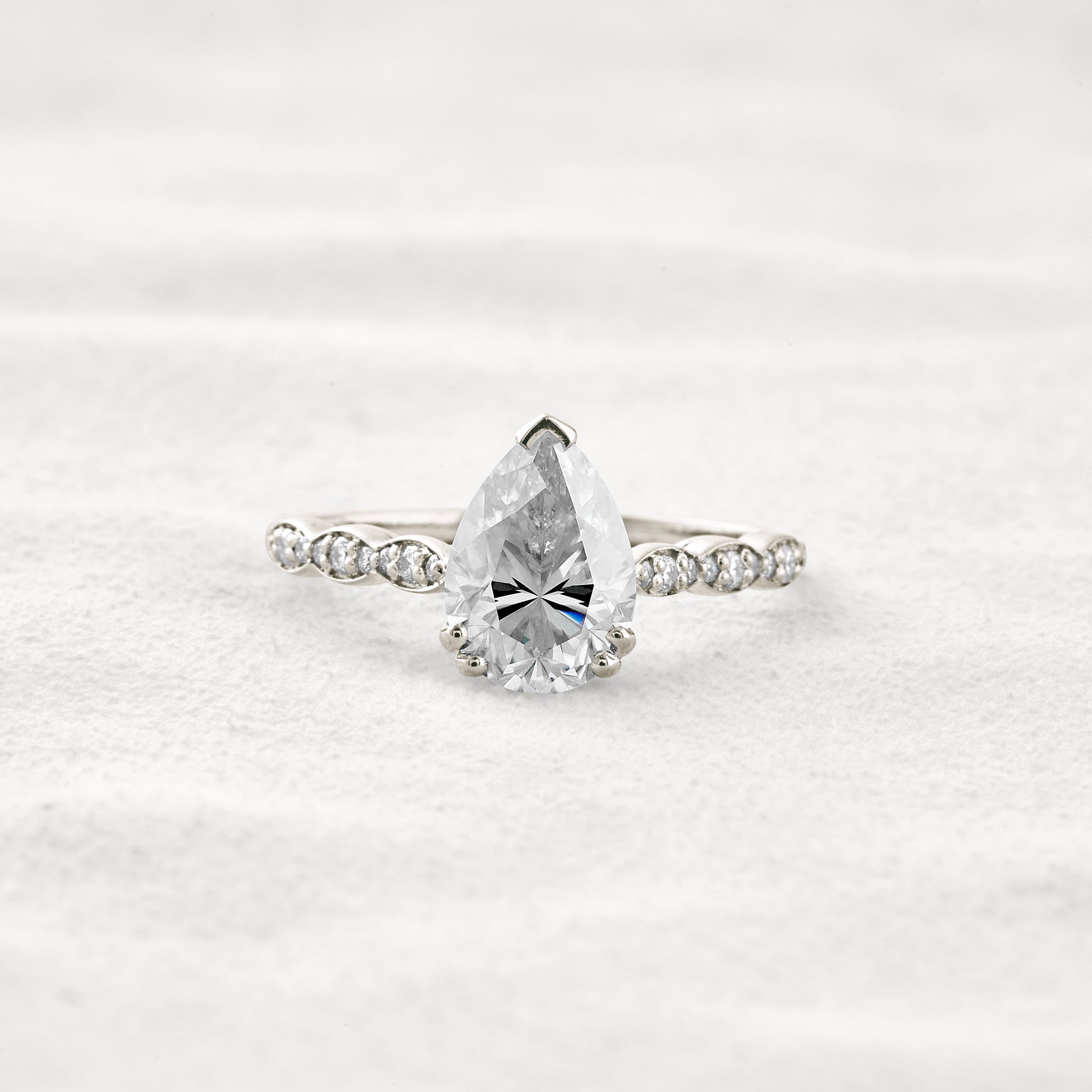 1.93 CT Pear Cut Pave Moissanite Diamond Engagement Ring