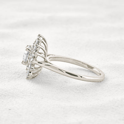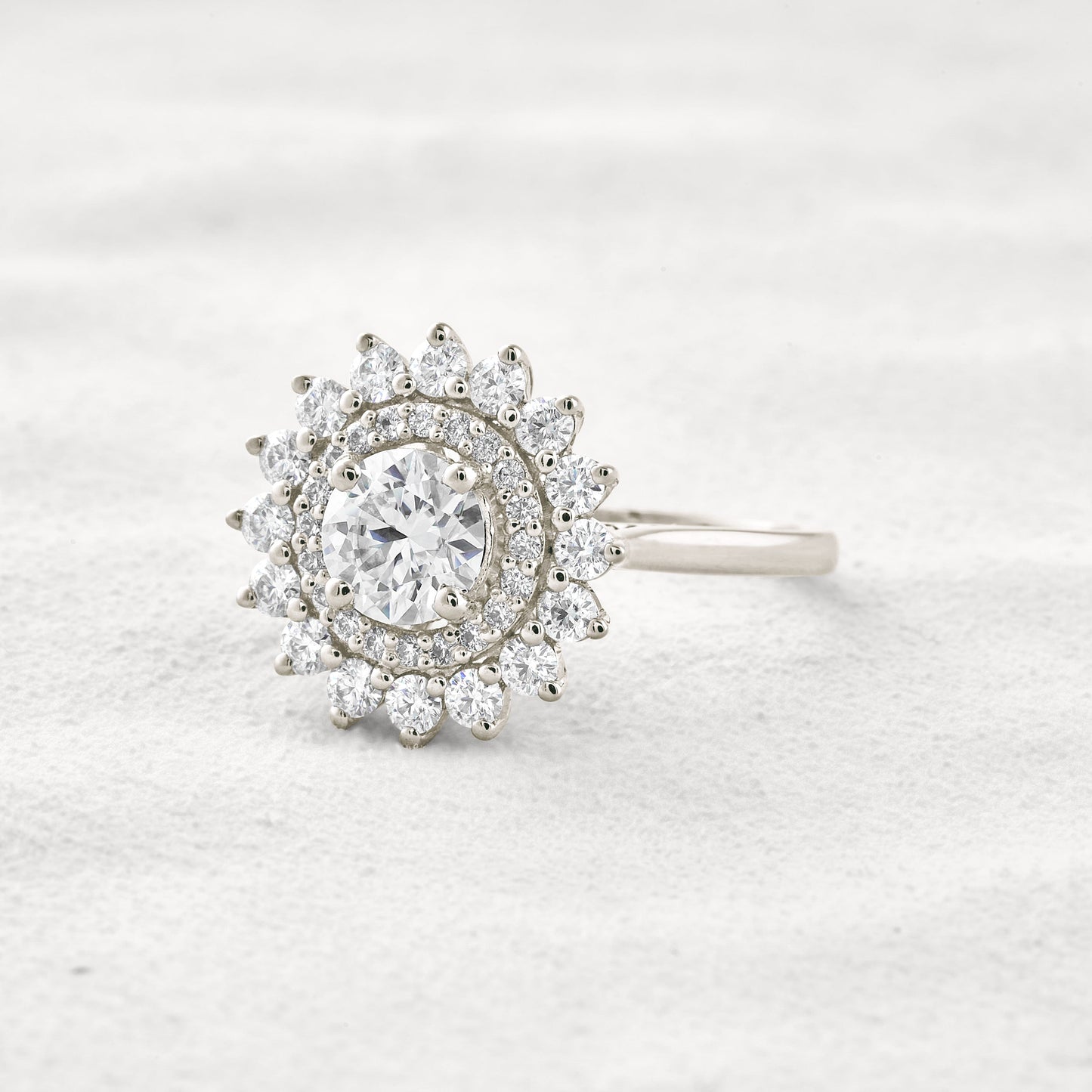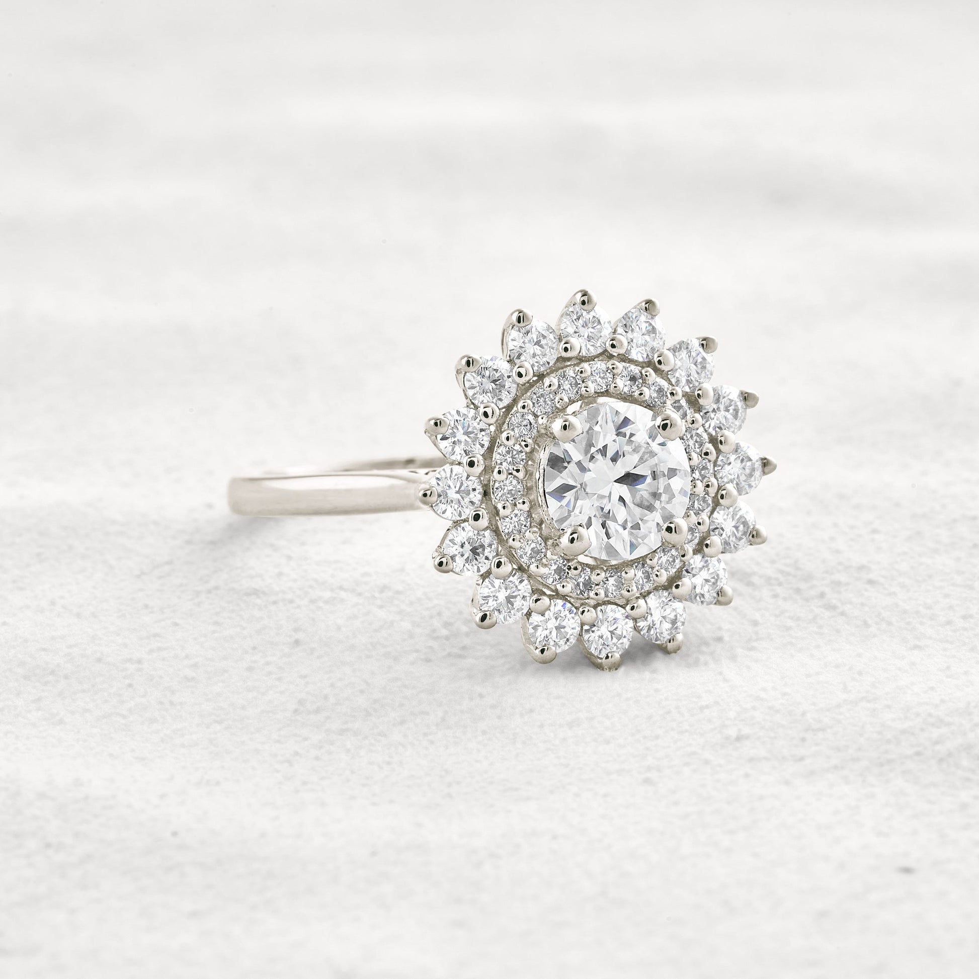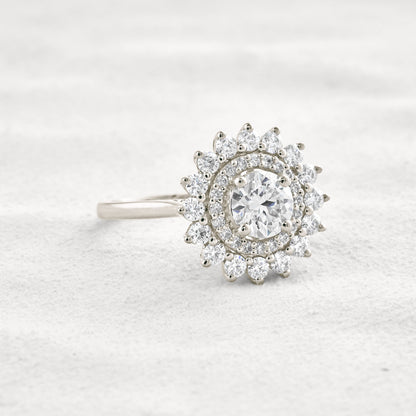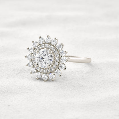 1 CT Round Cut Double Halo Moissanite Diamond Engagement Ring In White Gold