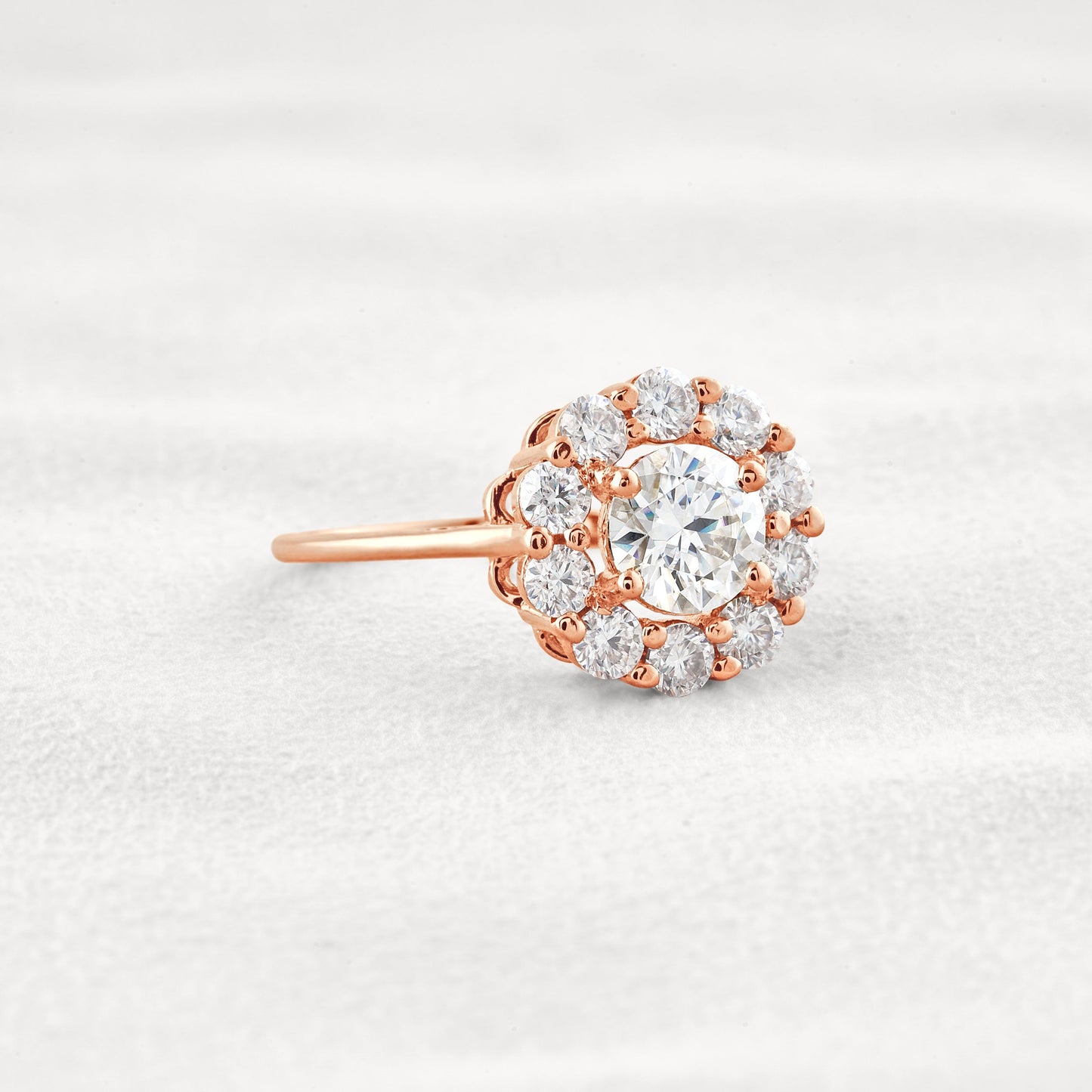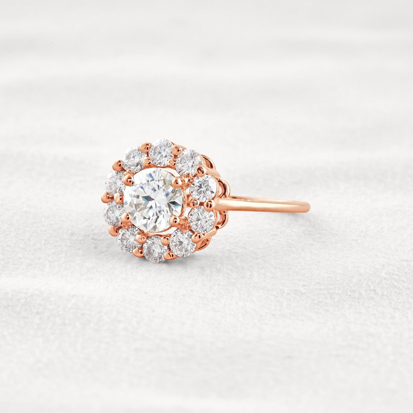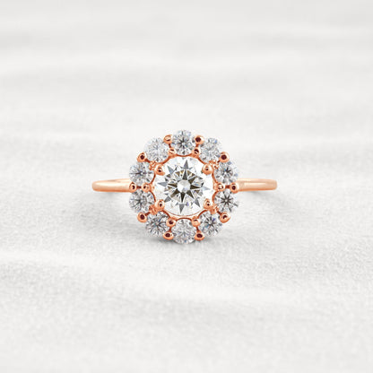 1 CT Round Cut Halo Moissanite Diamond Engagement Ring In Rose Gold