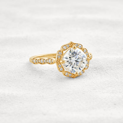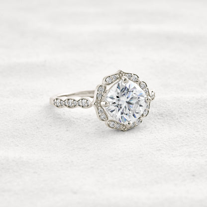 0.5 CT Round Cut Double Halo Moissanite Diamond Engagement Ring