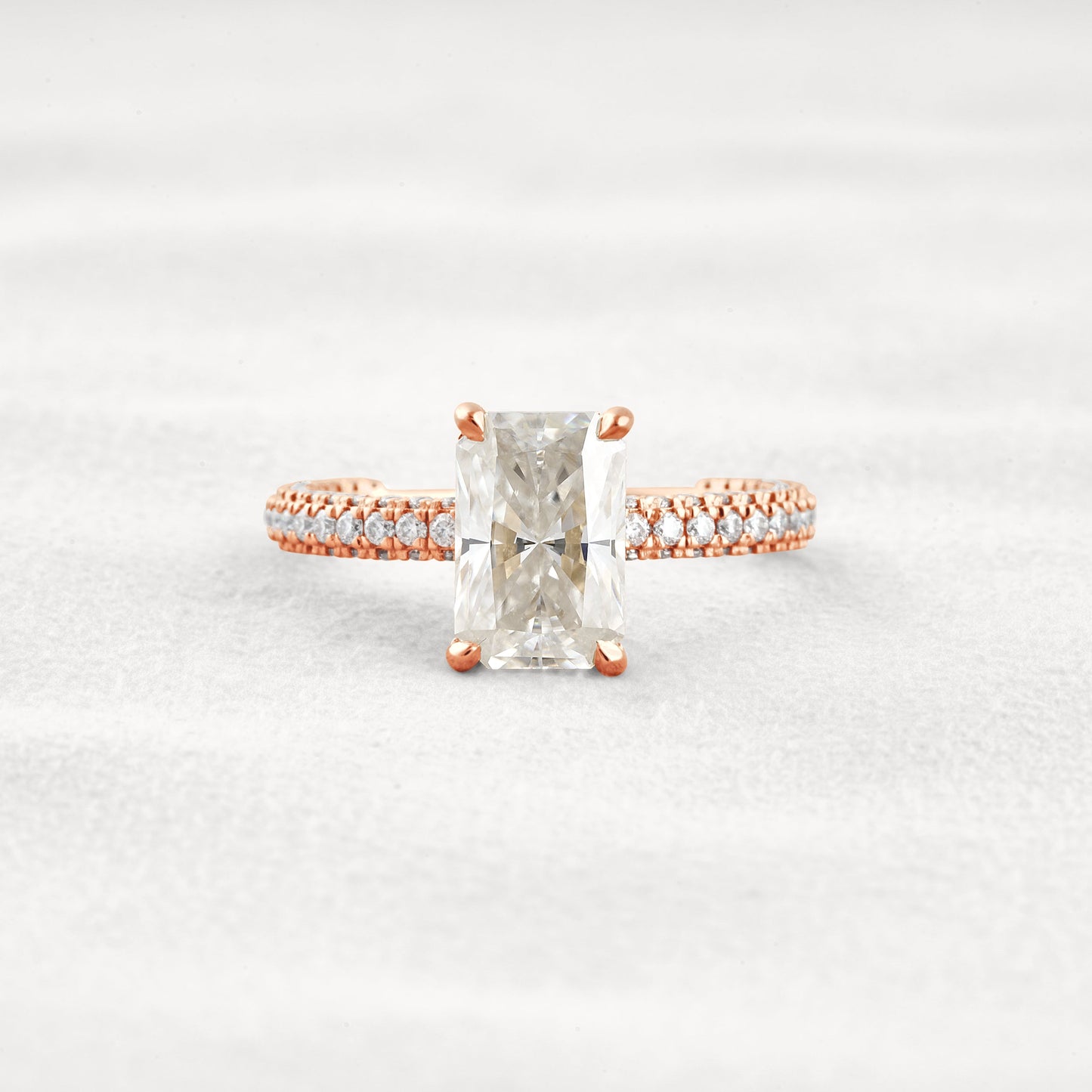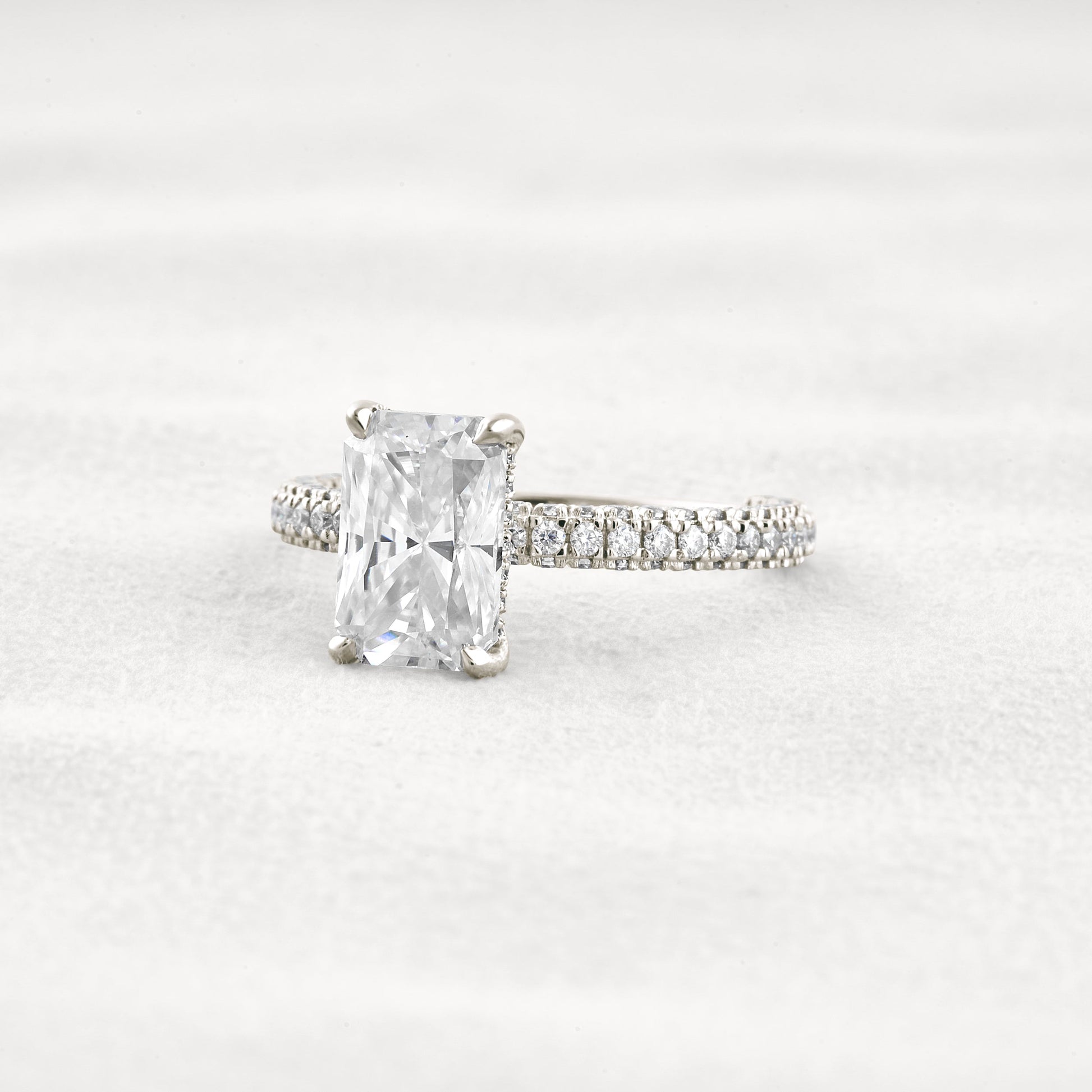 2.6 CT Radiant Cut Pave Moissanite Diamond Engagement Ring In White Gold