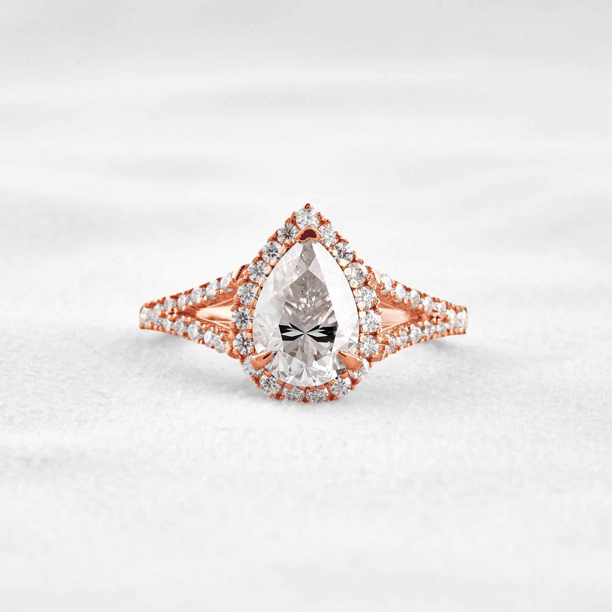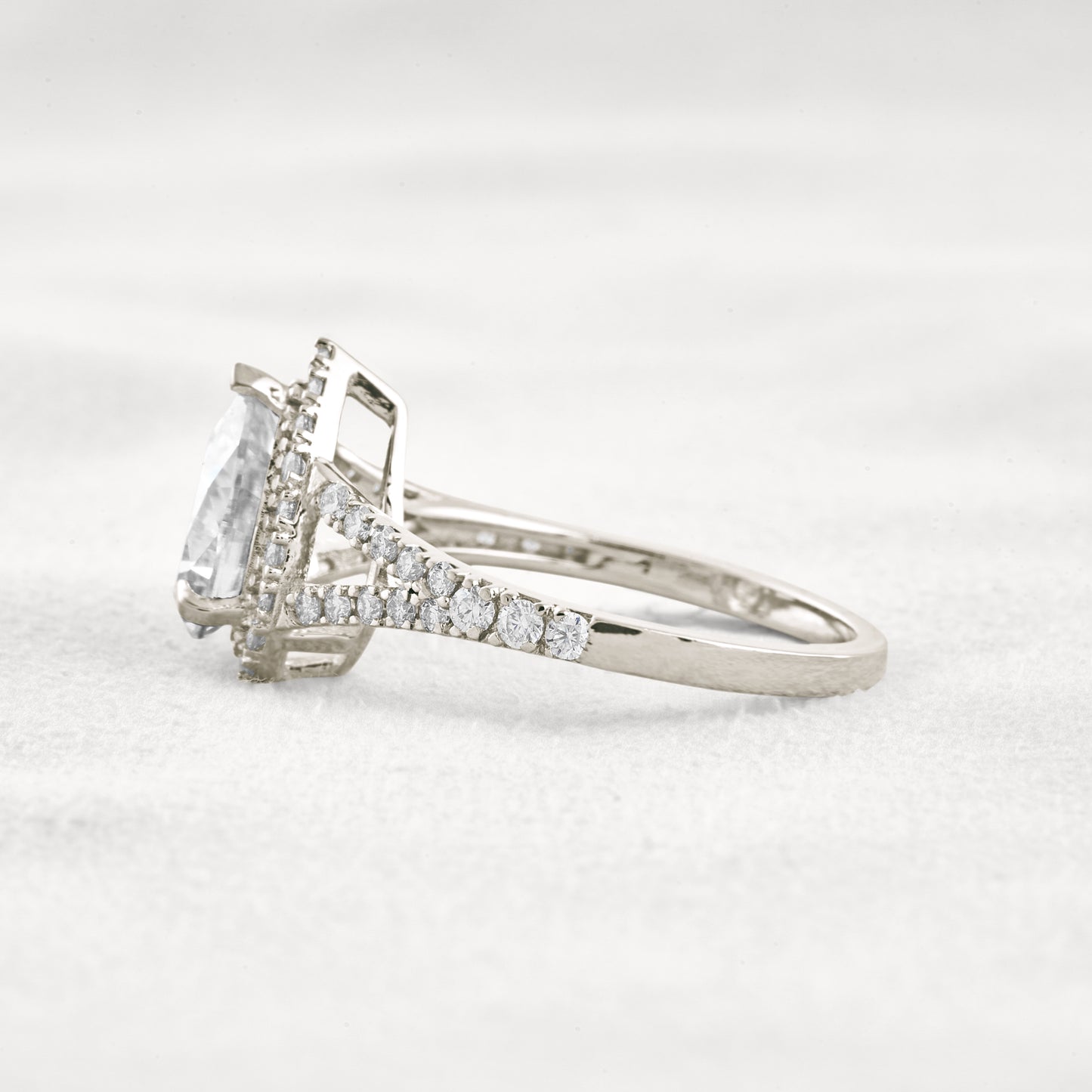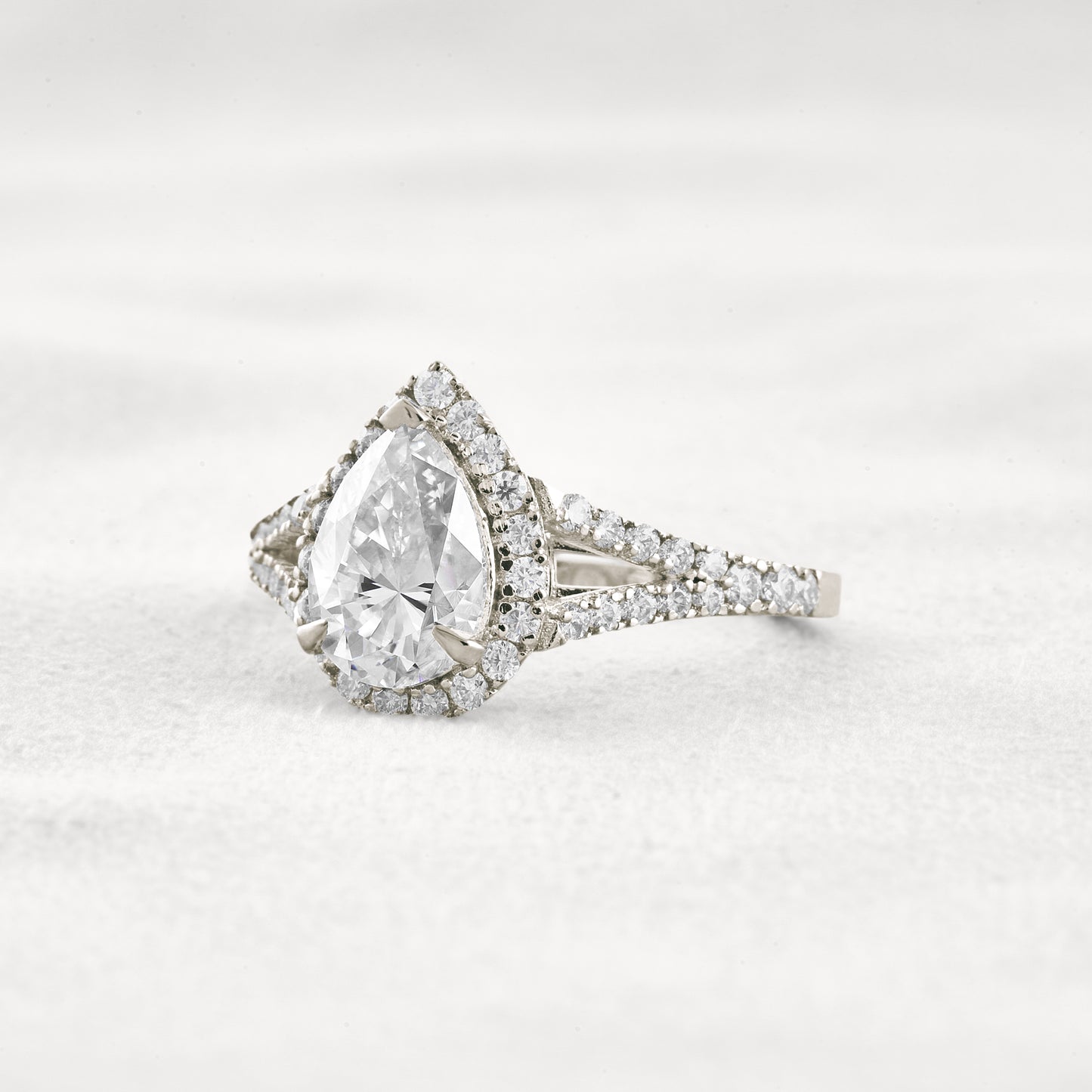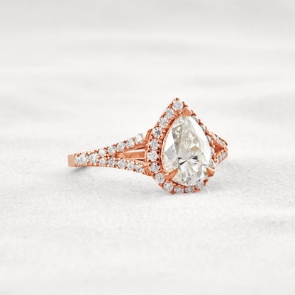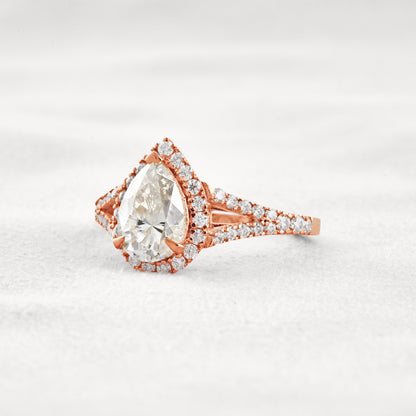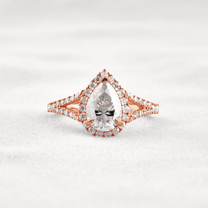 3.1 CT Pear Cut Halo & Pave Moissanite Diamond Engagement Ring