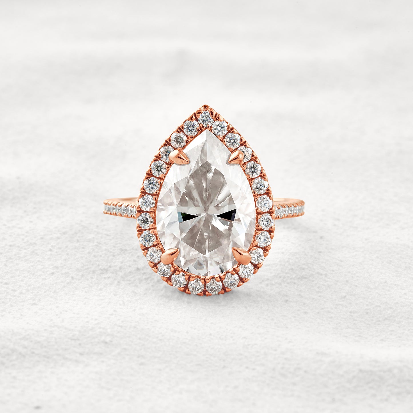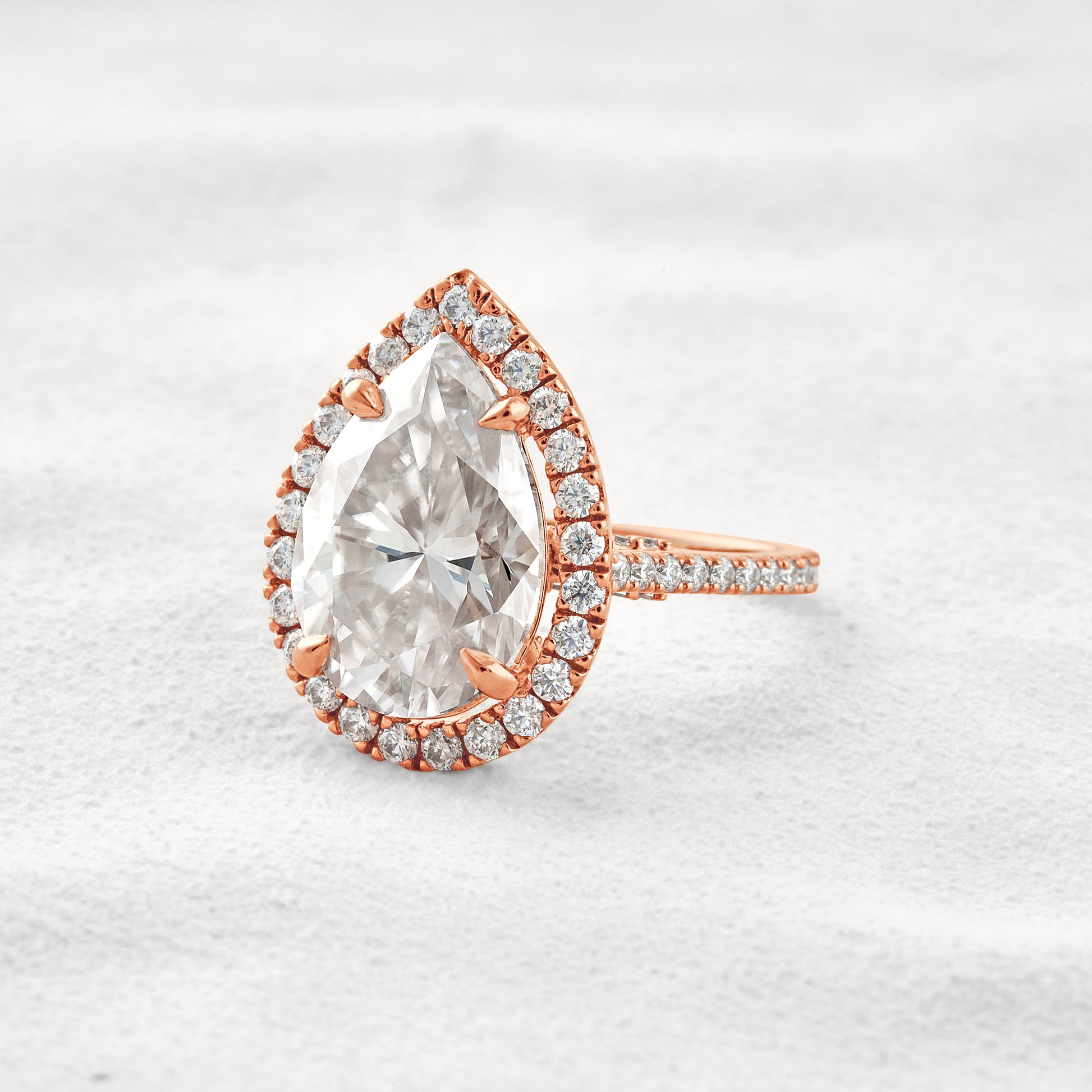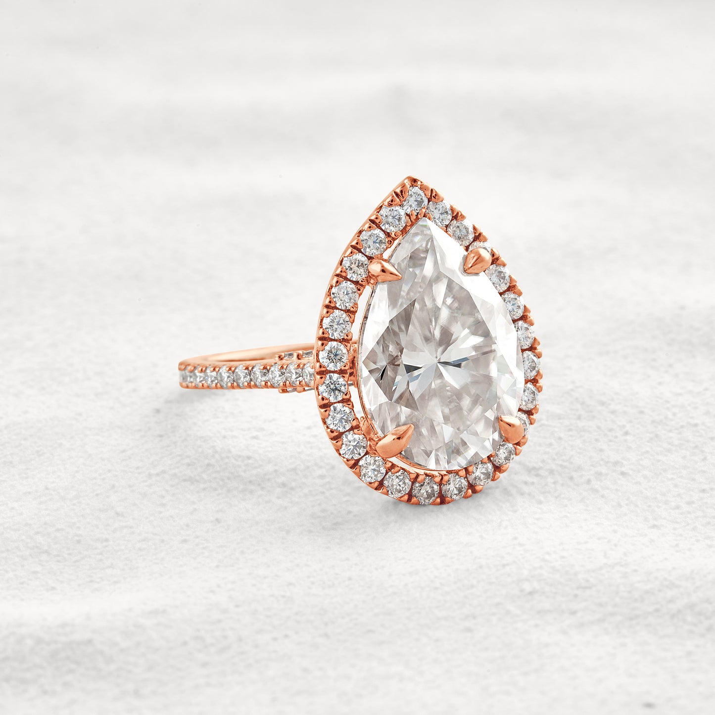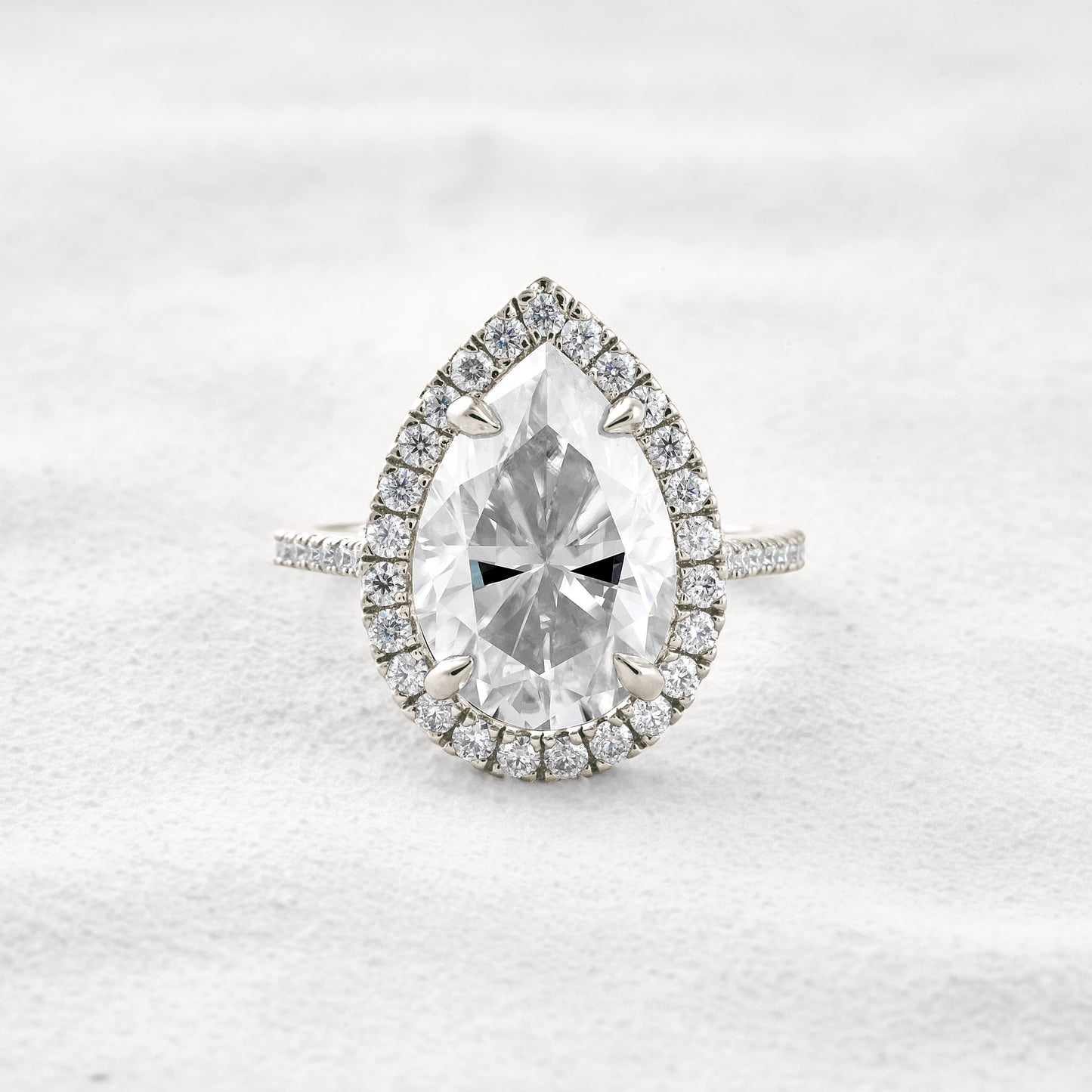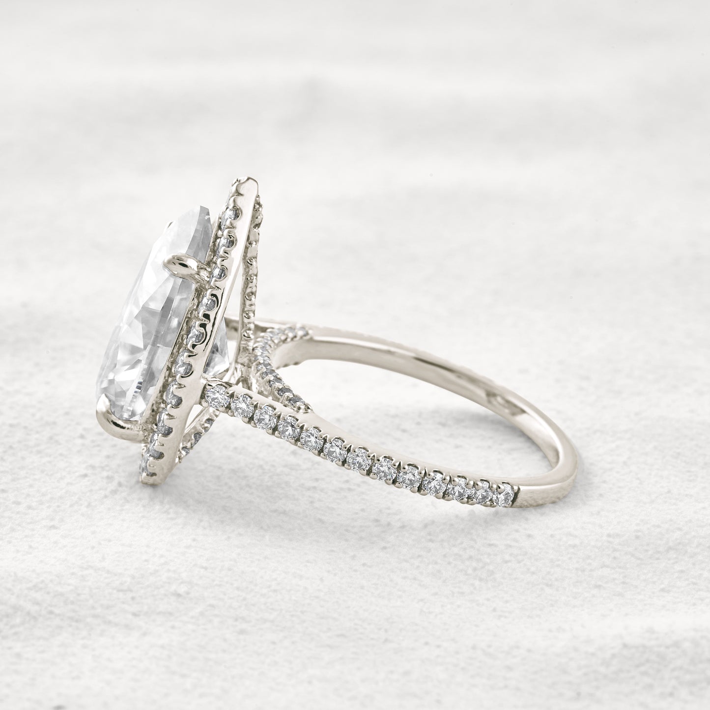 6.15 CT Pear Cut Halo & Pave Moissanite Diamond Engagement Ring