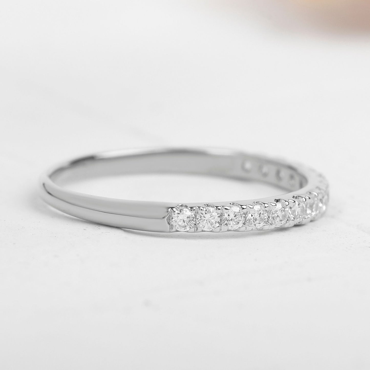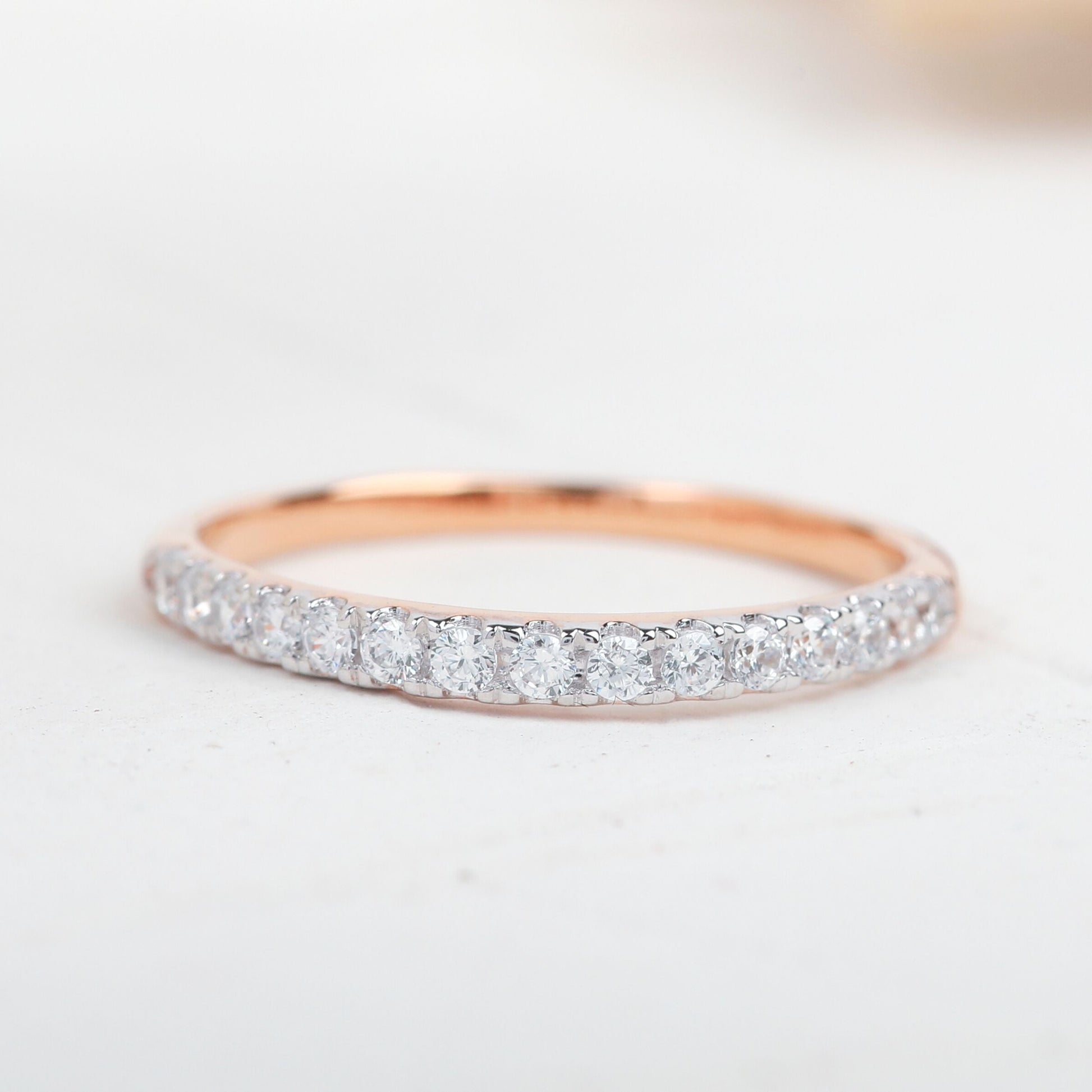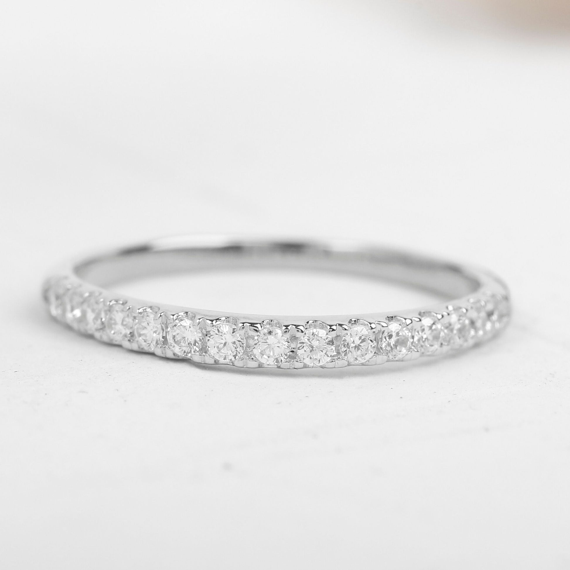 Round Moissanite Half Eternity Stacking Wedding Band