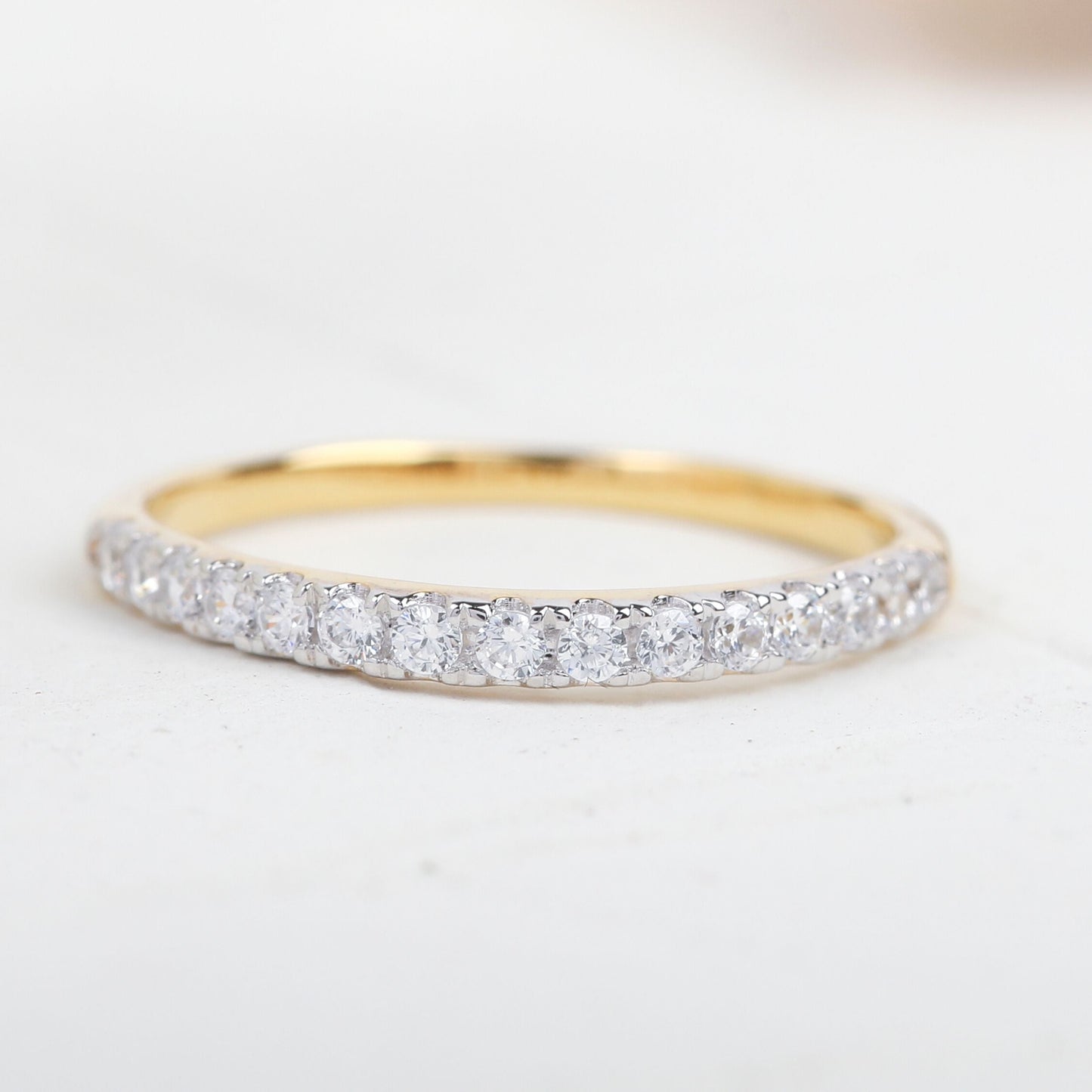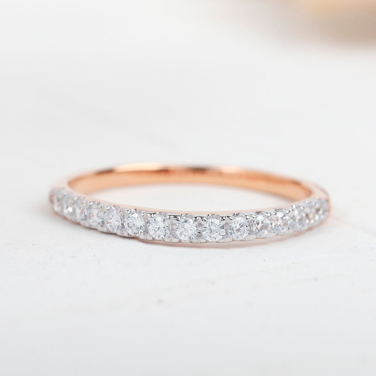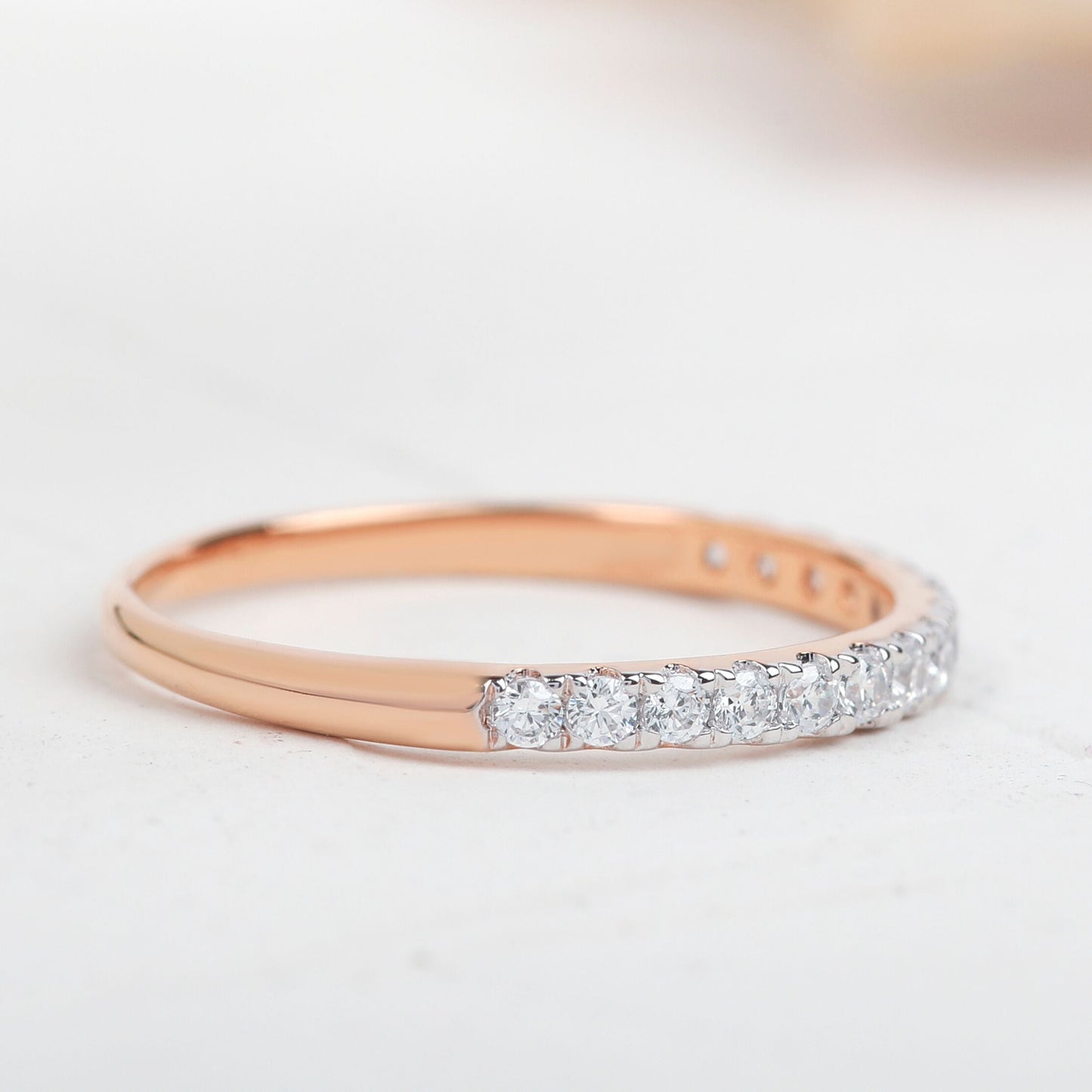 Round Moissanite Half Eternity Stacking Wedding Band