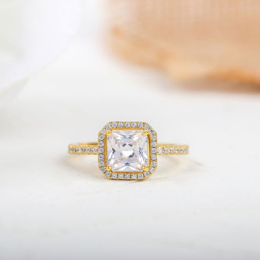2.08 CT Princess Cut Halo Pave Moissanite Diamond Engagement Ring