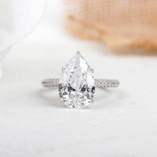 3.09 CT Pear Cut Pave Moissanite Diamond Engagement Ring