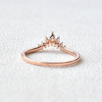 0.36 CT Marquise & Round Moissanite Diamond Curved Wedding Band