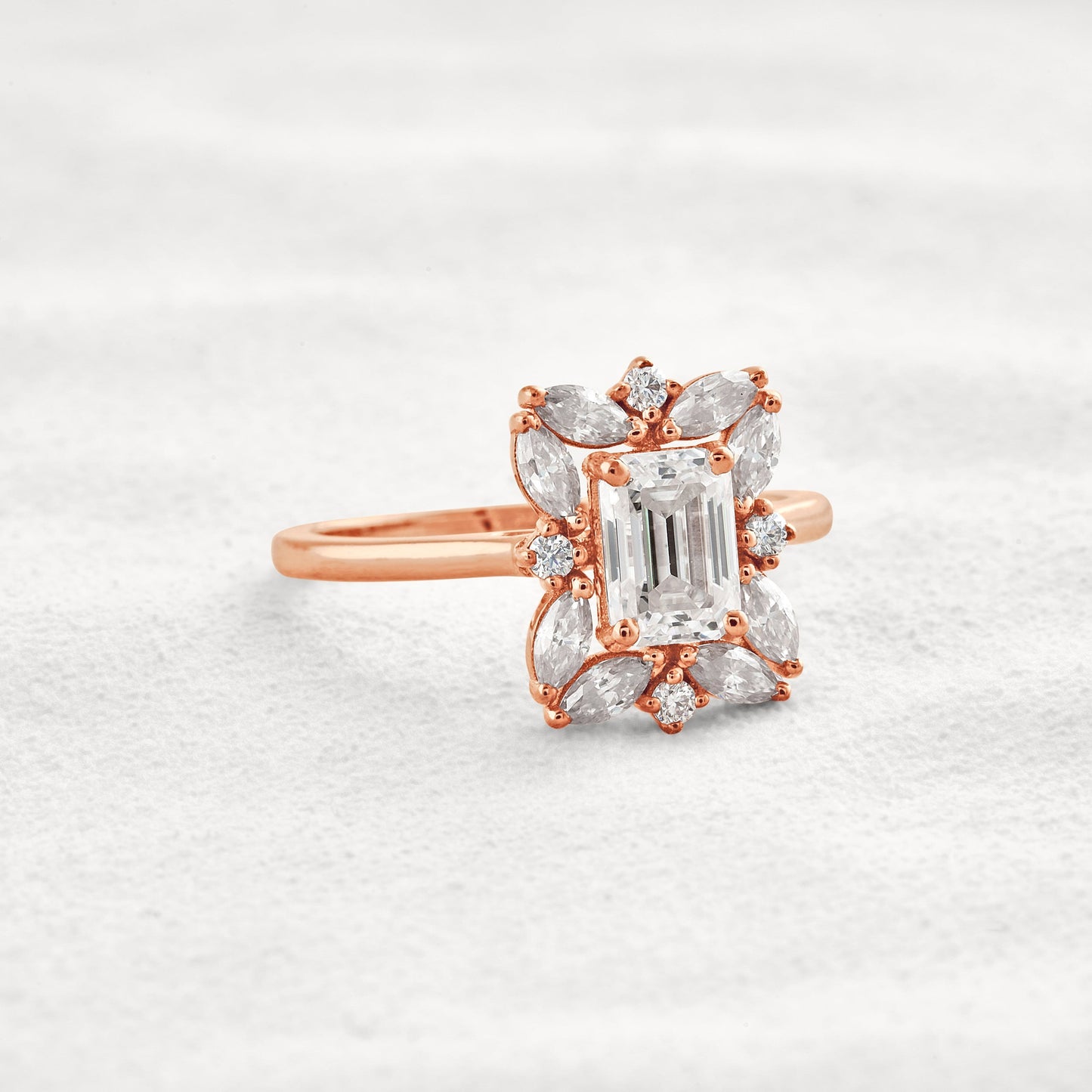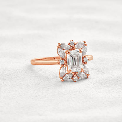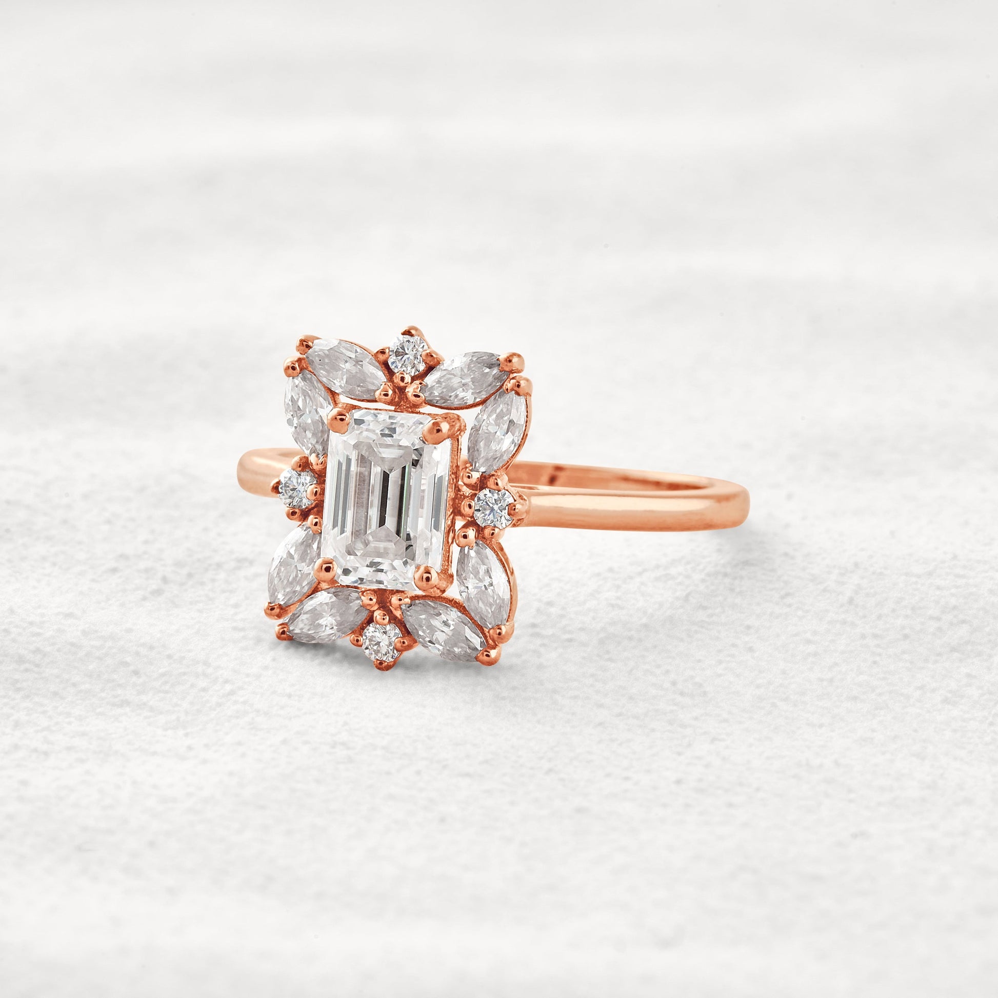 0.92 CT Emerald Cut Halo Moissanite Diamond Engagement Ring In Rose Gold