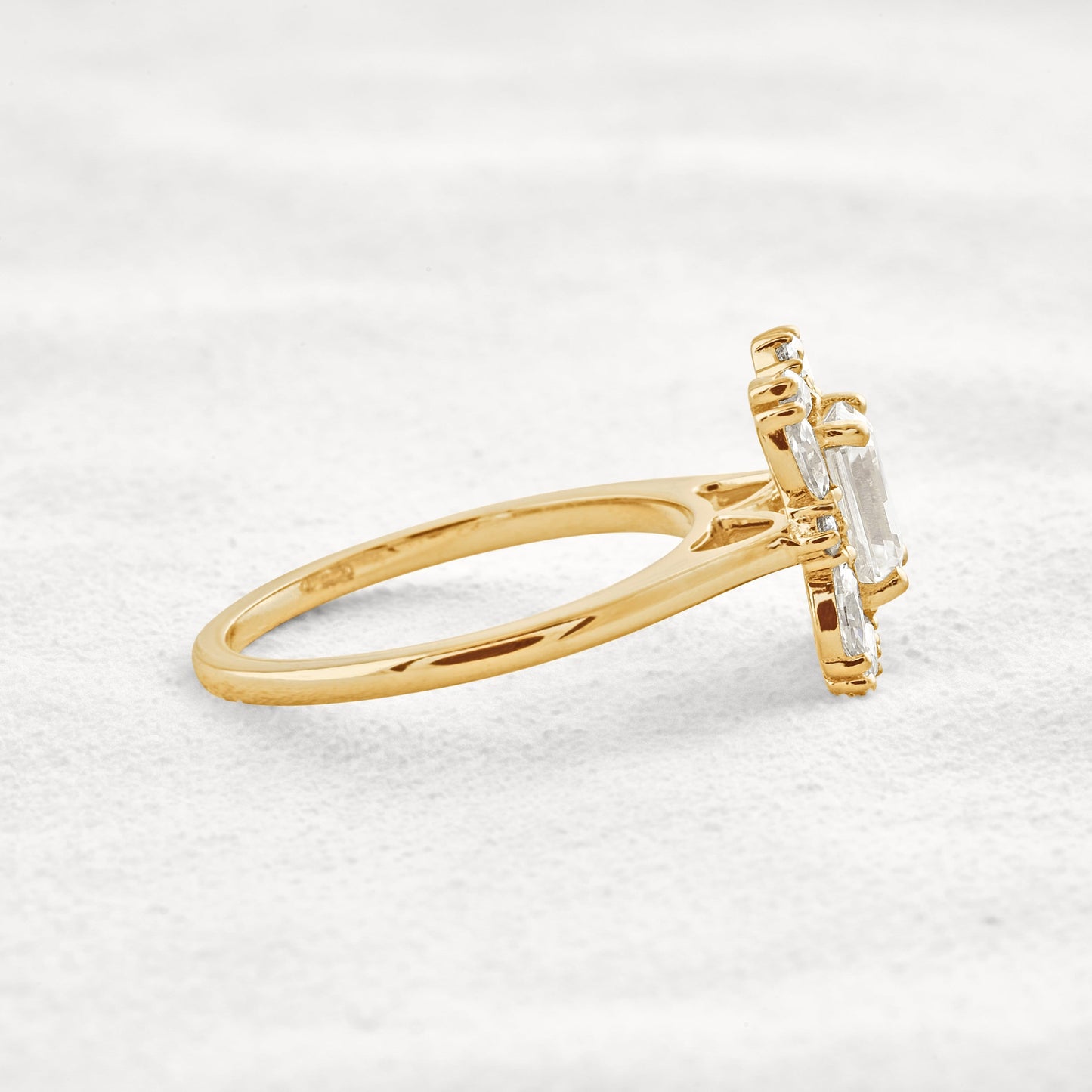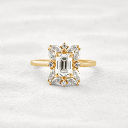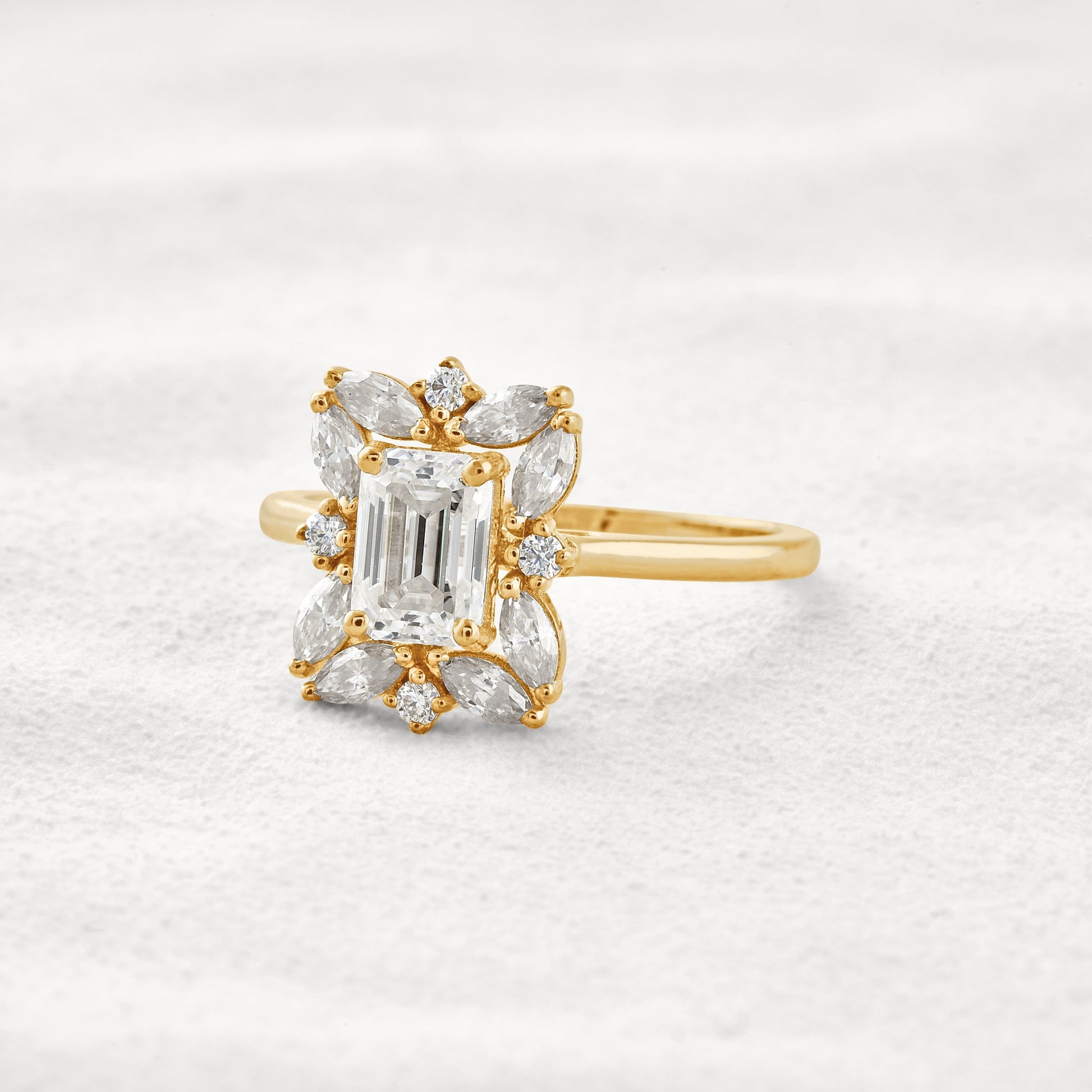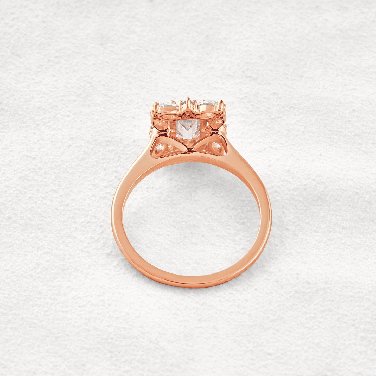 0.92 CT Emerald Cut Halo Moissanite Diamond Engagement Ring In Rose Gold