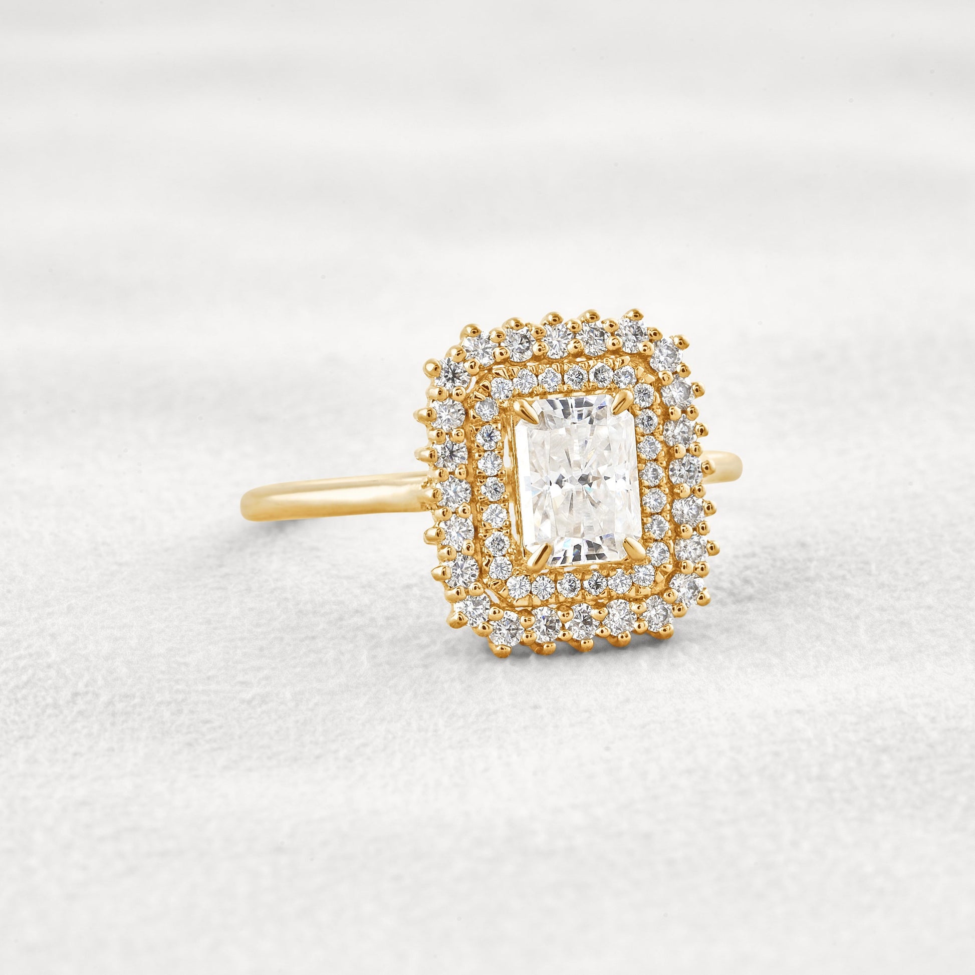 1.05 CT Radiant Cut Double Halo Moissanite Diamond Engagement Ring In Rose Gold