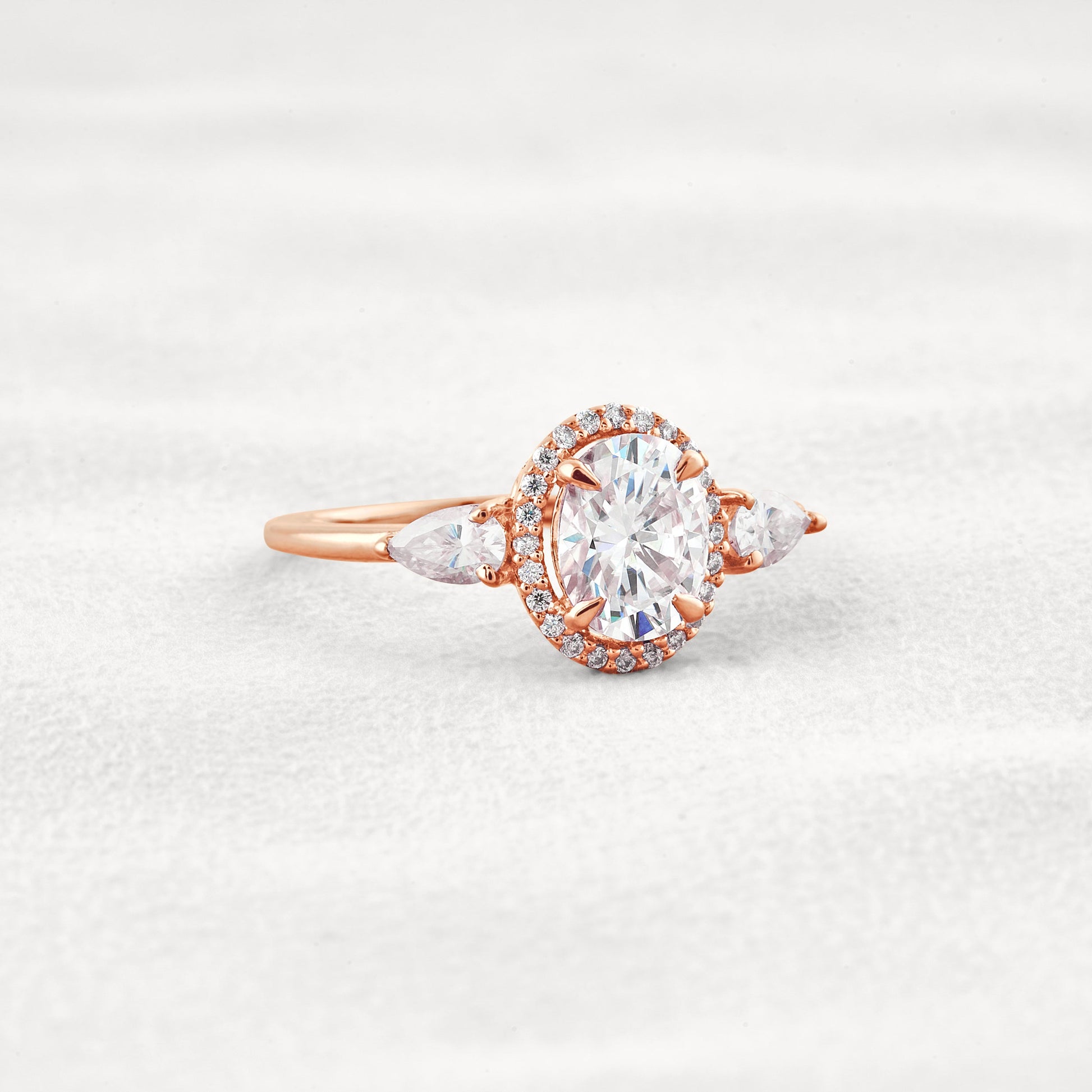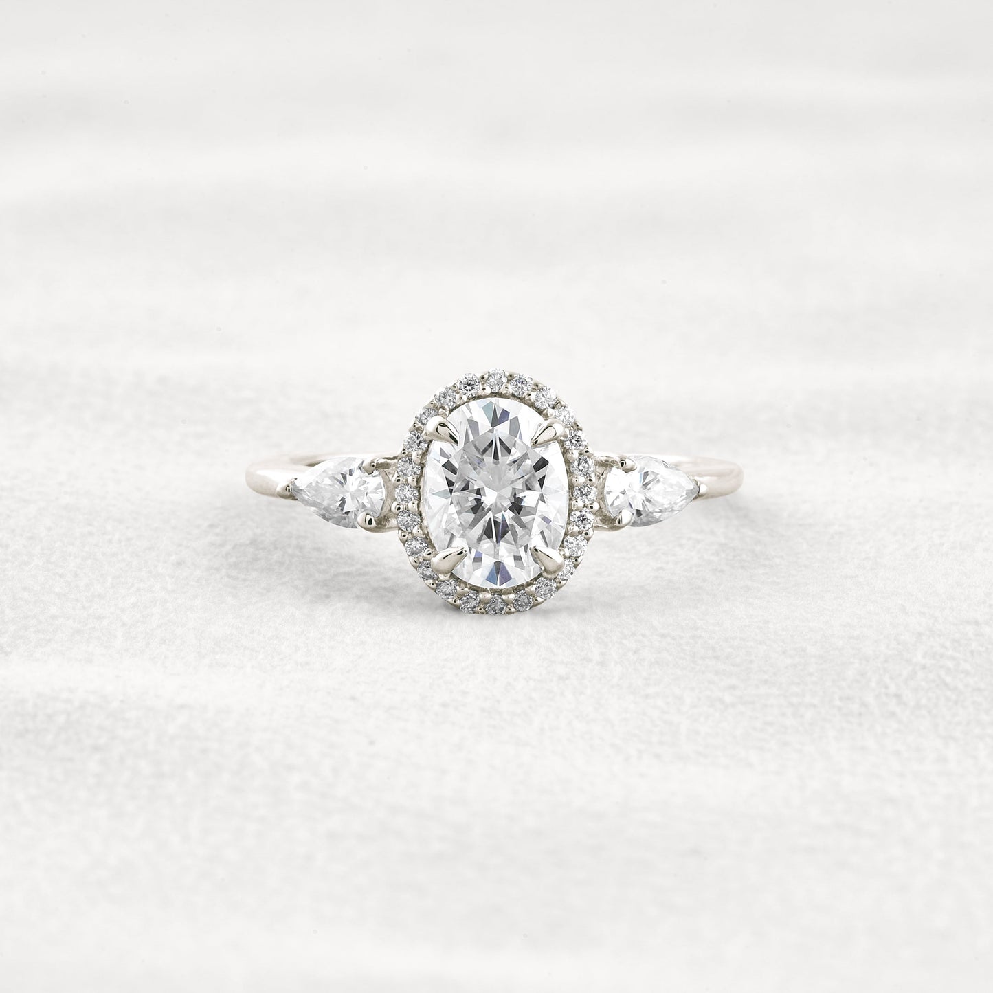 1.33 CT Oval Cut Halo Moissanite Diamond Engagement Ring In White Gold