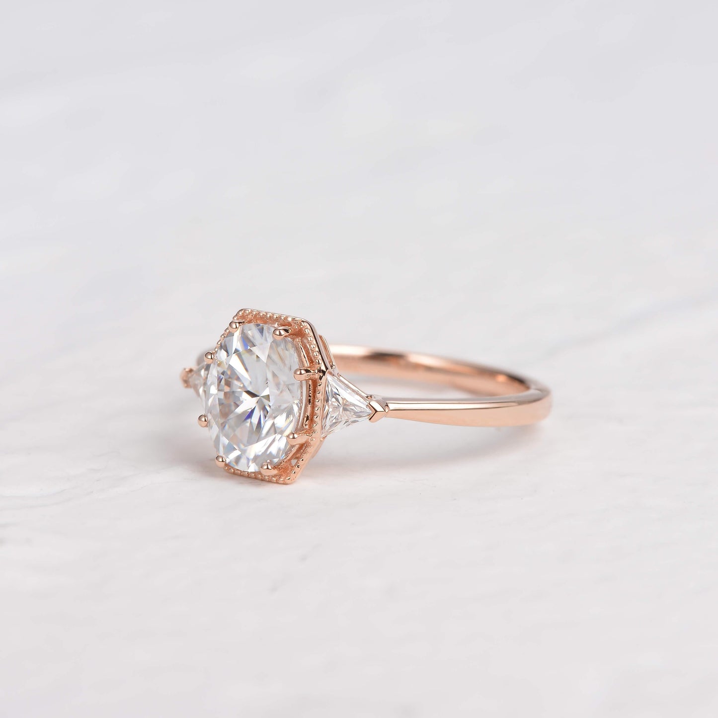 1.33 CT Oval Moissanite Diamond Three Stones Engagement Ring
