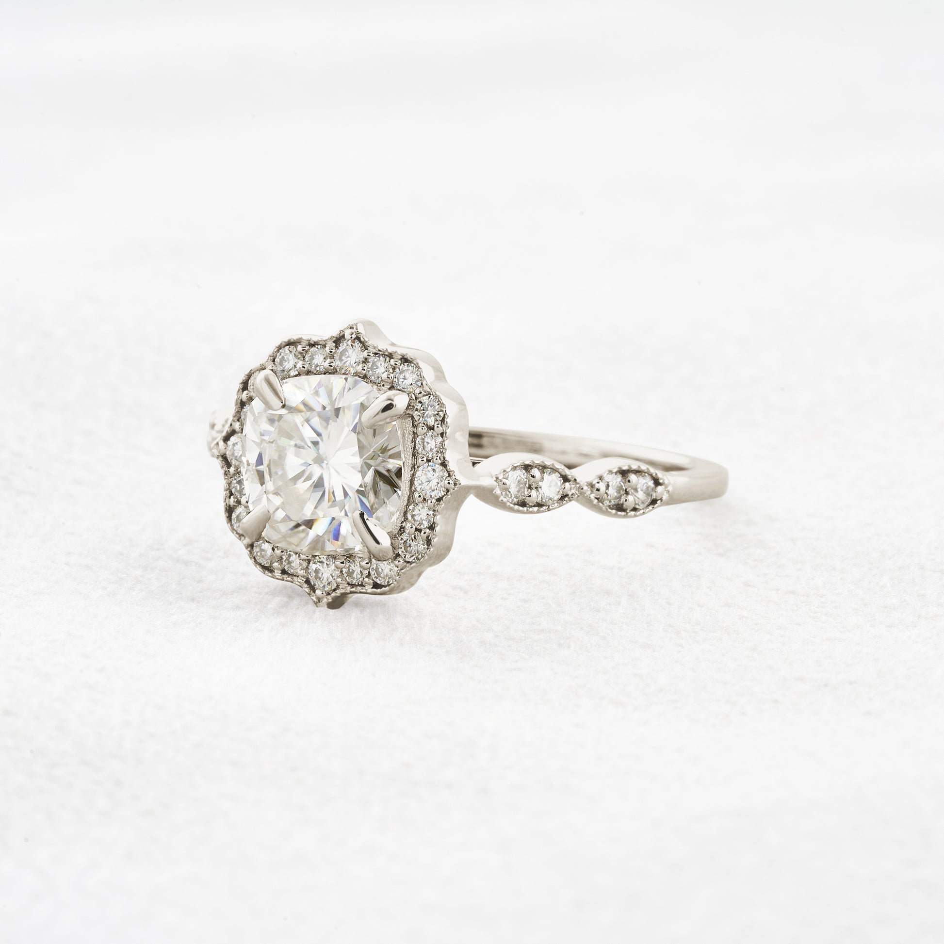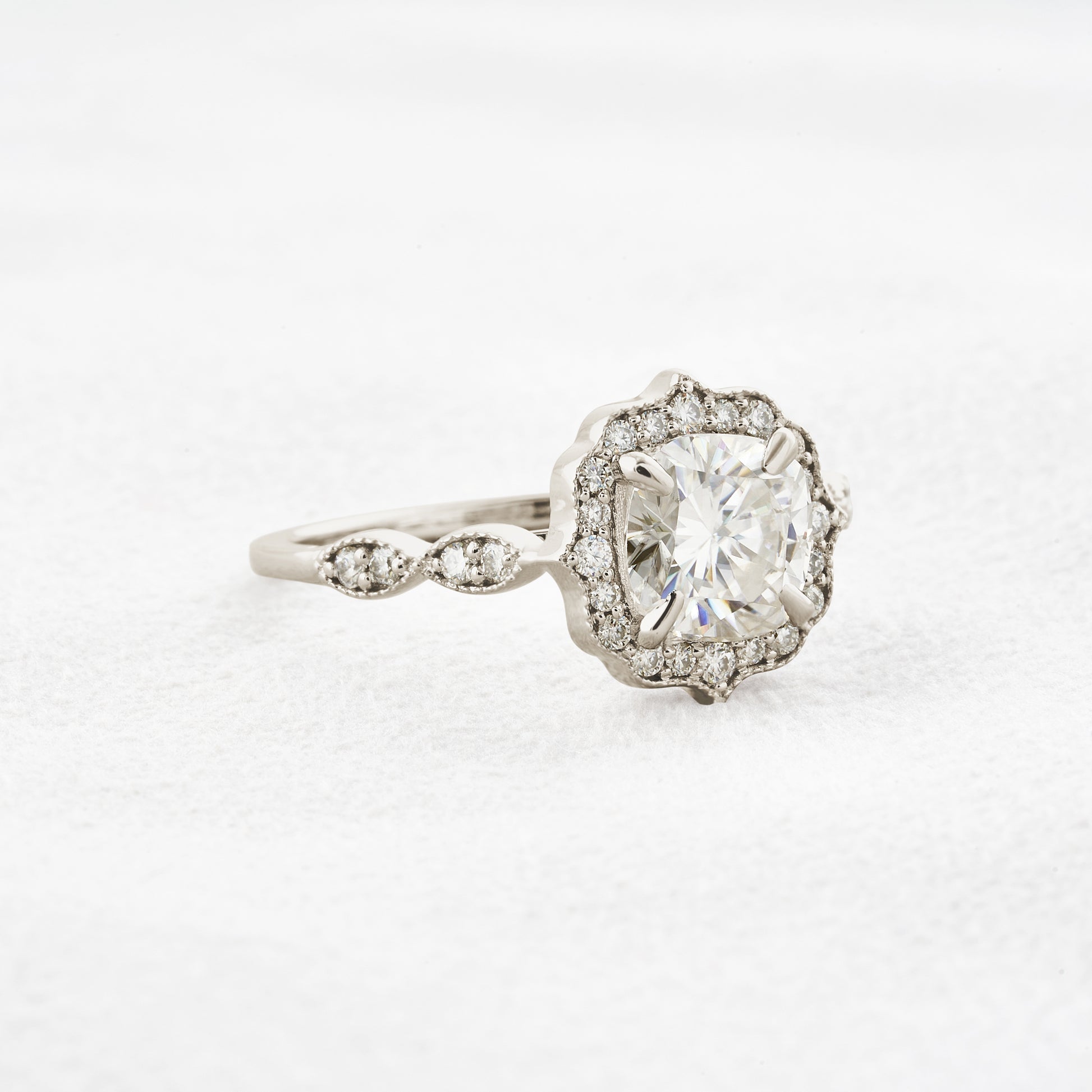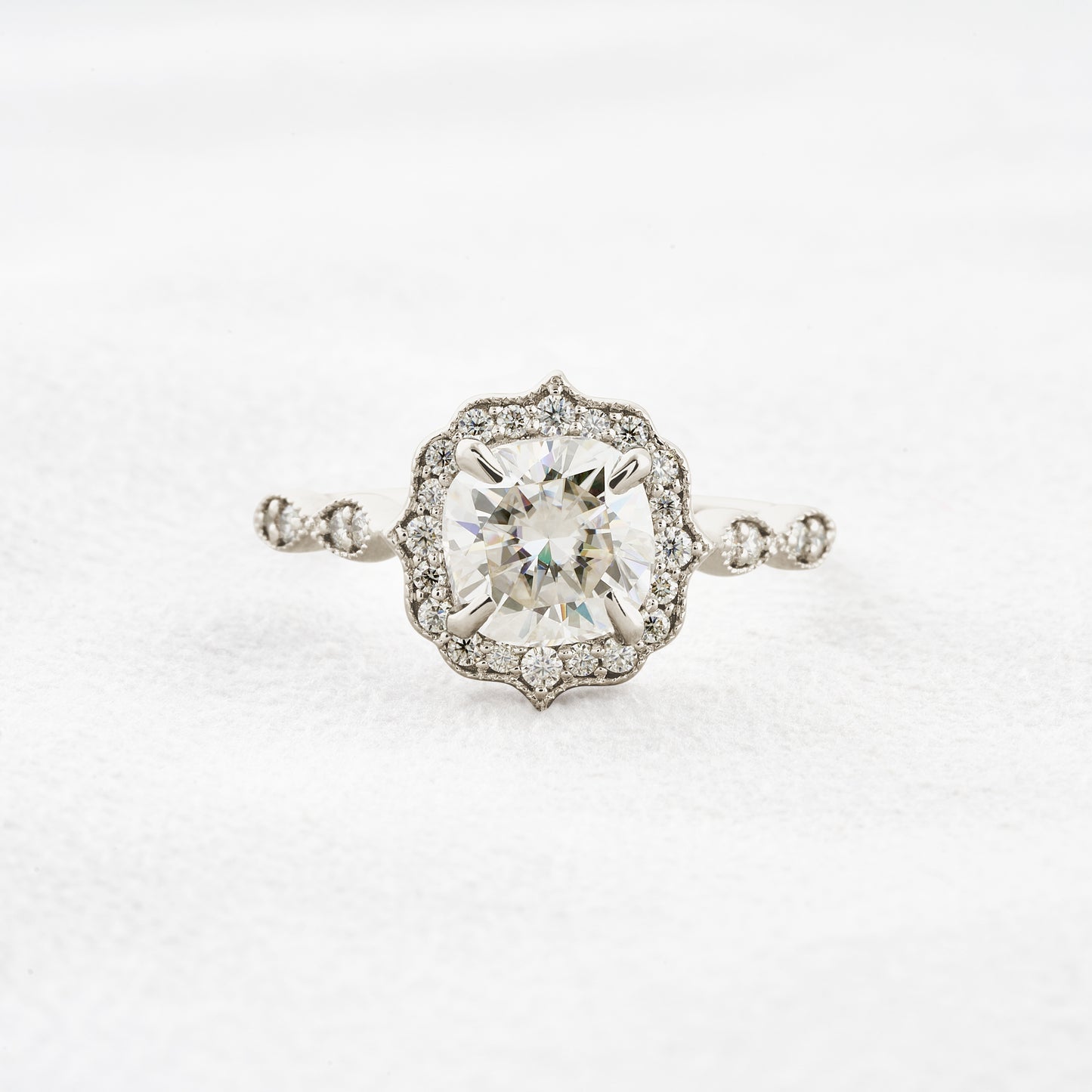 1.5 CT Cushion Cut Halo & Pave Moissanite Engagement Ring