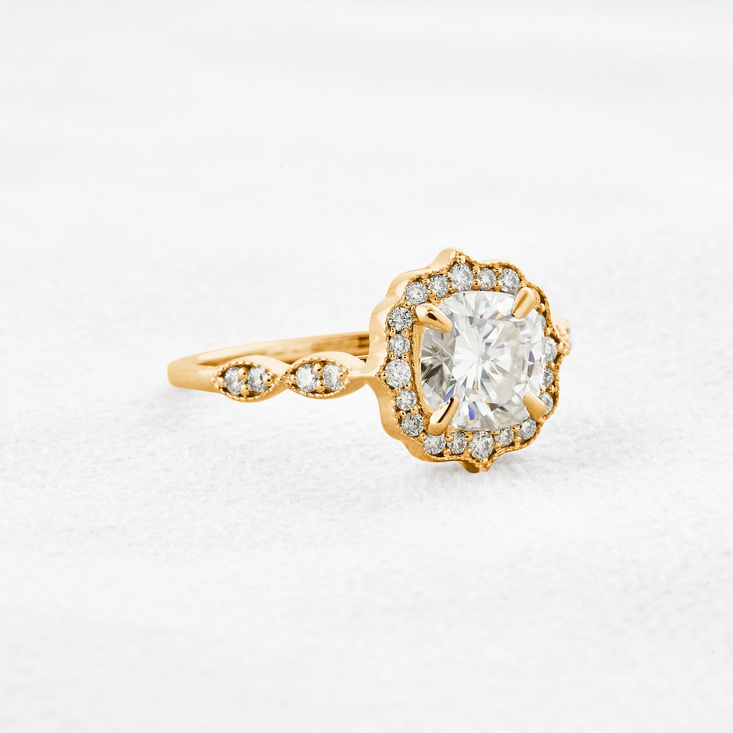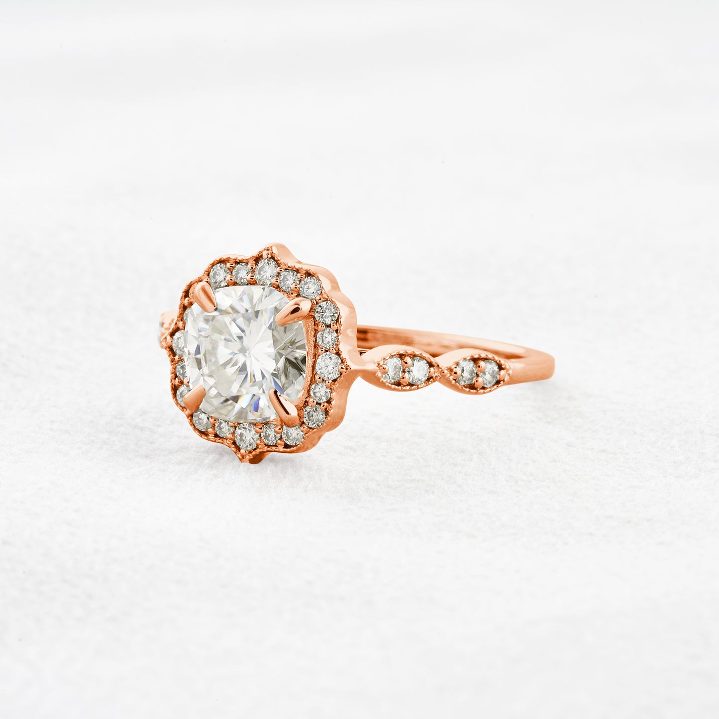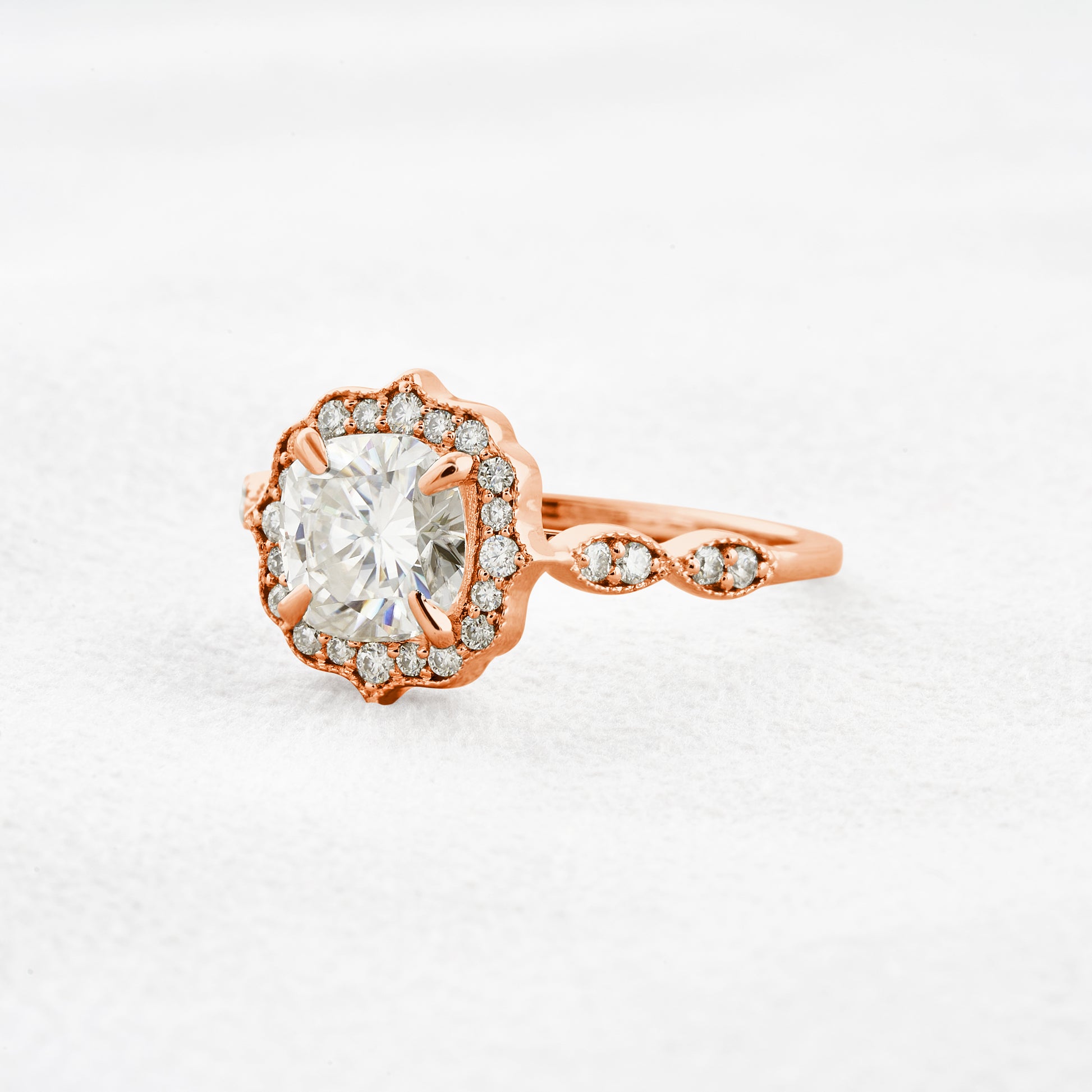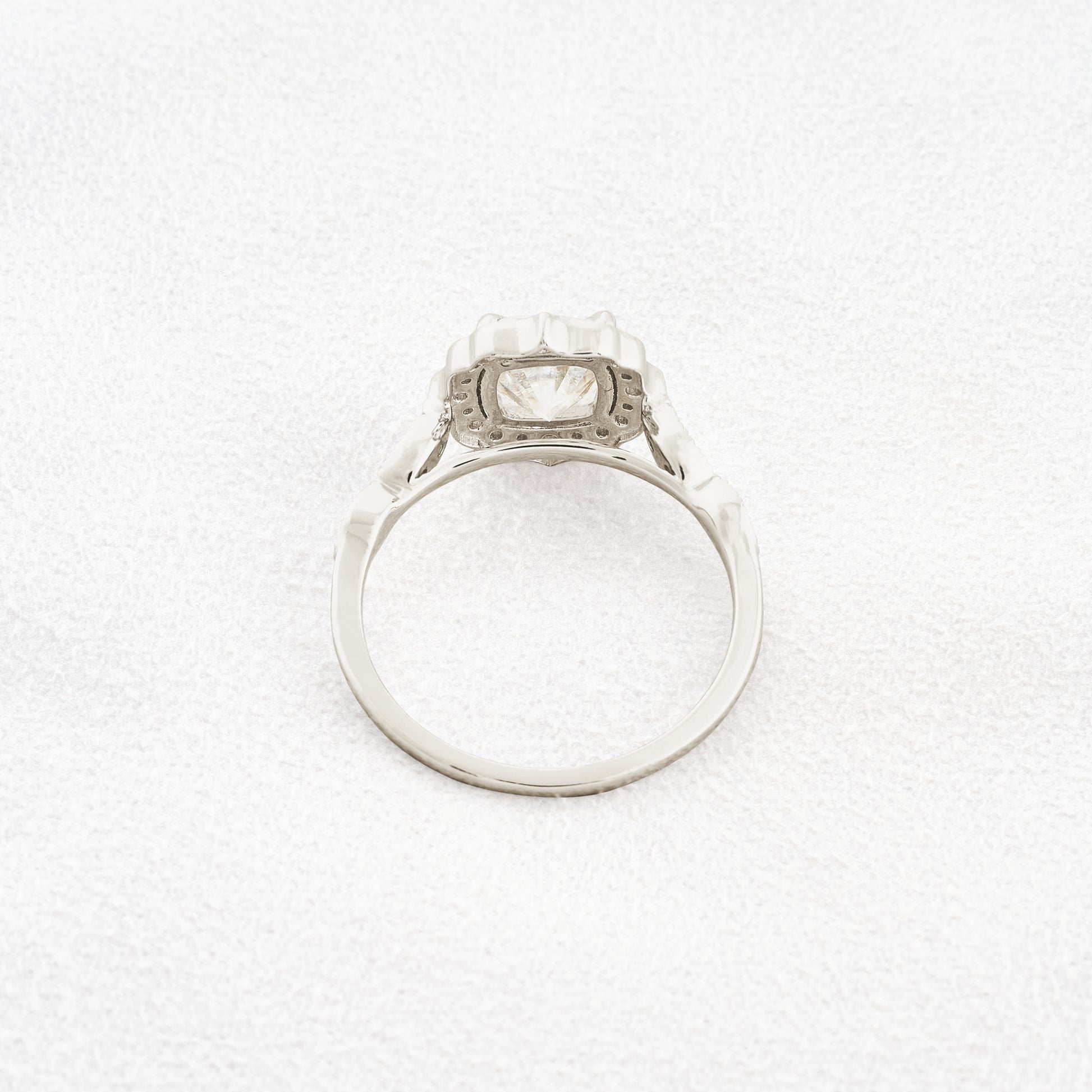 1.5 CT Cushion Cut Halo & Pave Moissanite Engagement Ring