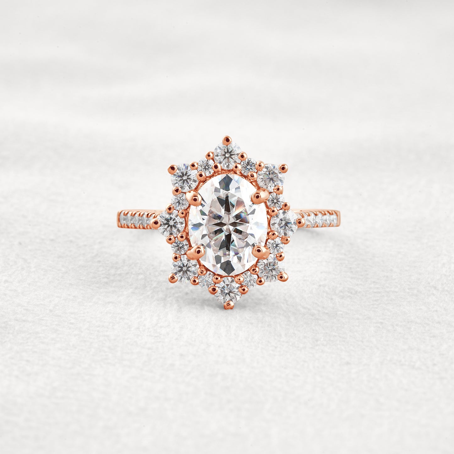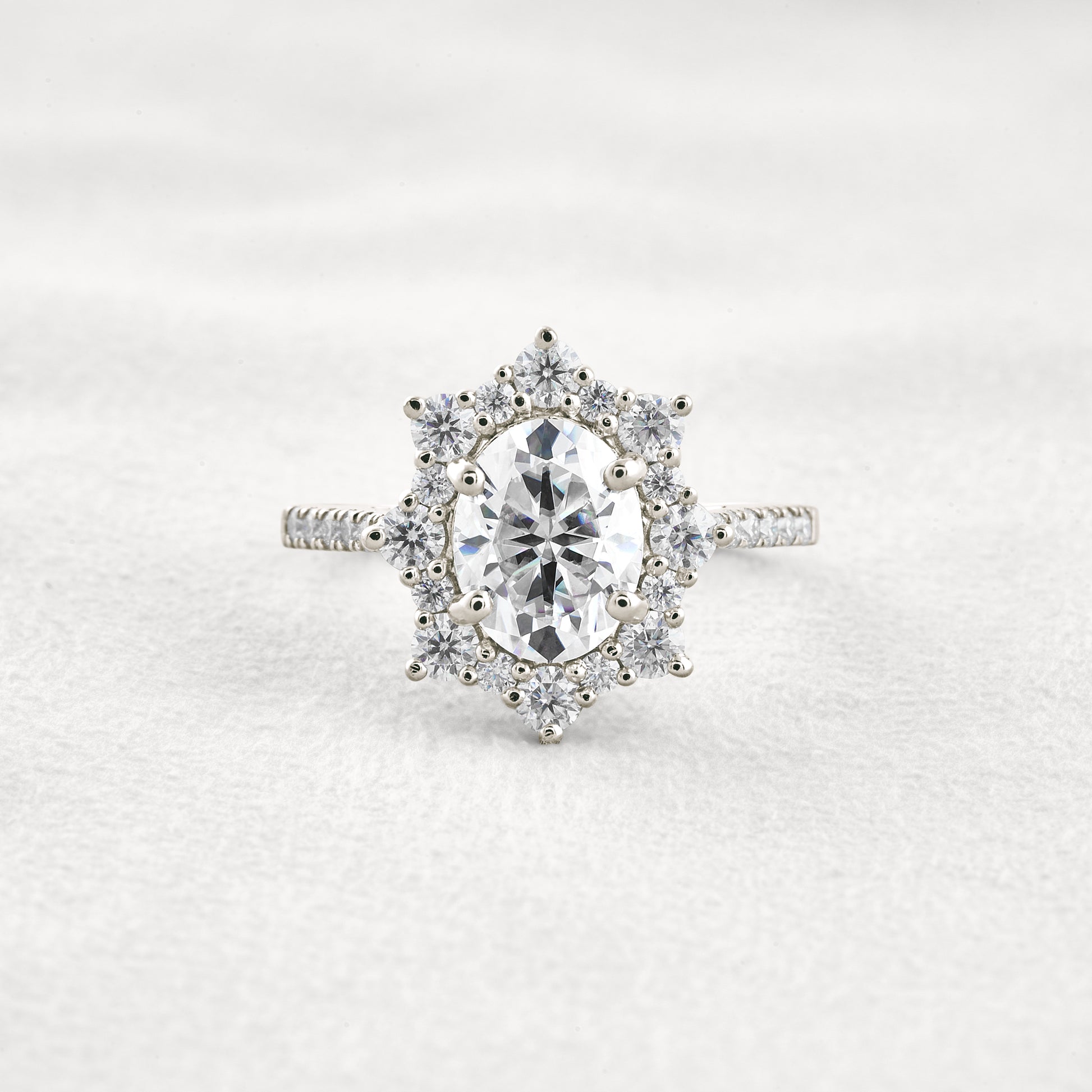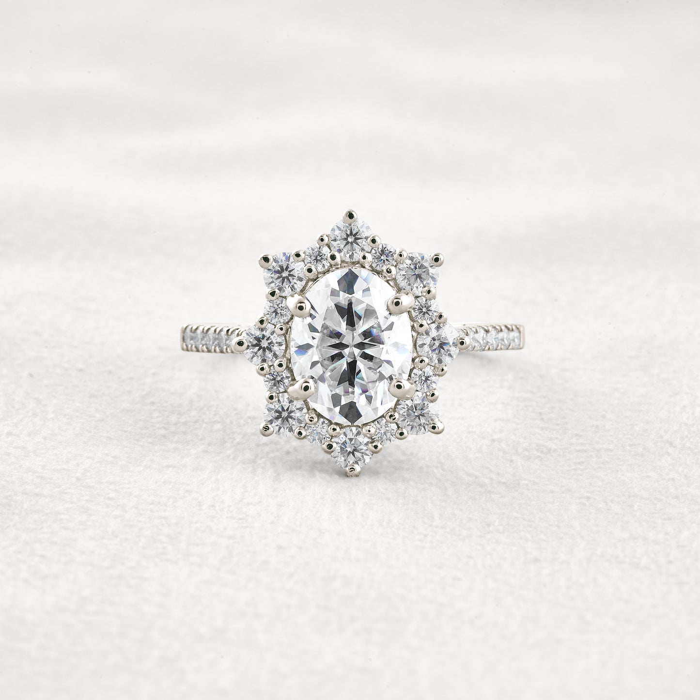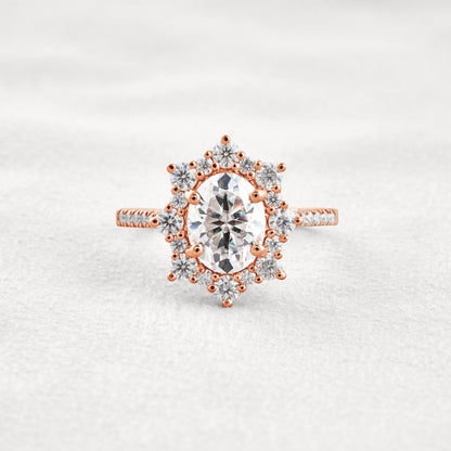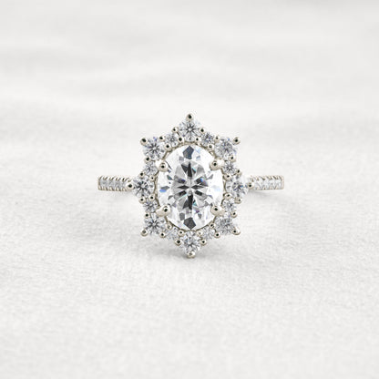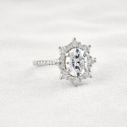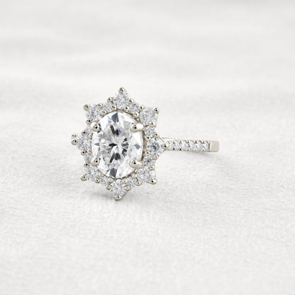 1.91 CT Oval Cut Halo & Pave Moissanite Diamond Engagement Ring