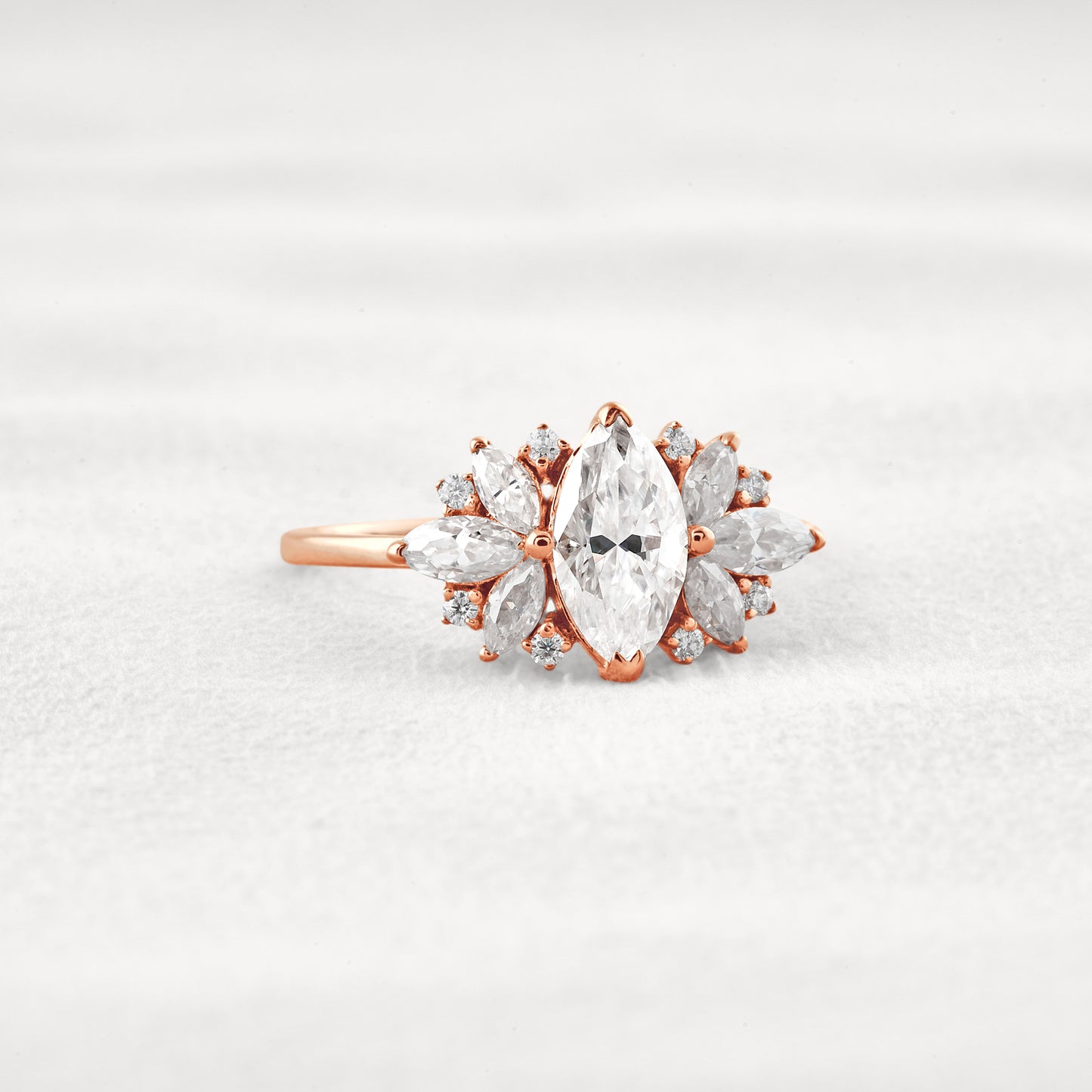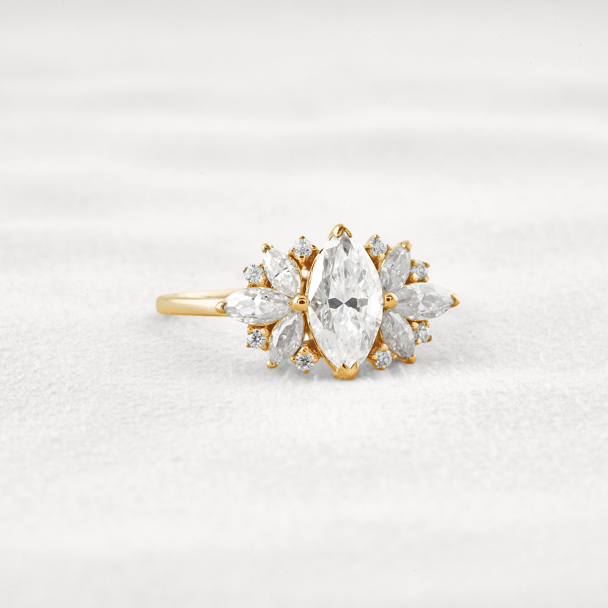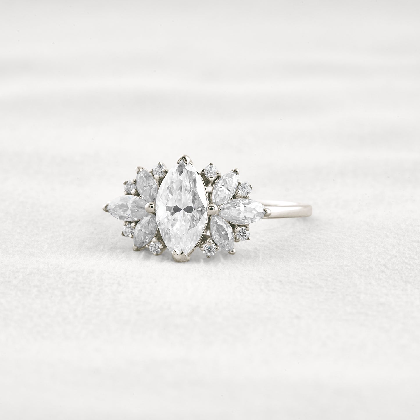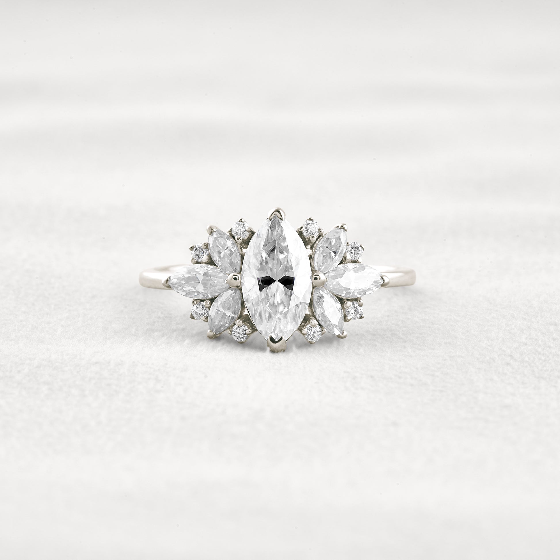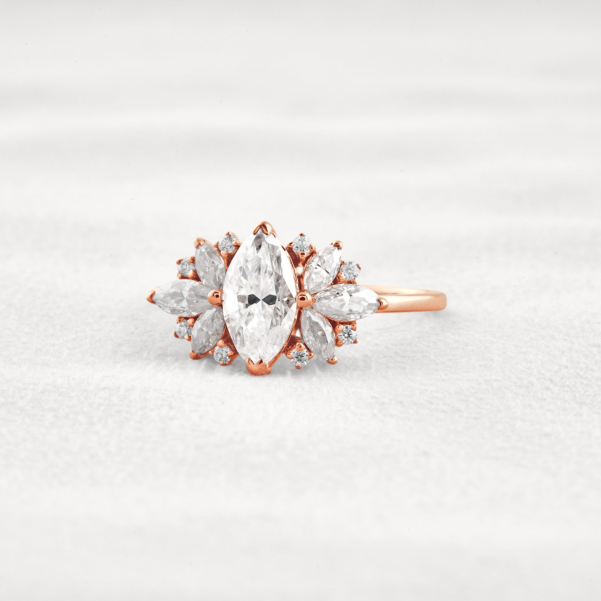 1 CT Marquise Cut Cluster Moissanite Diamond Engagement Ring
