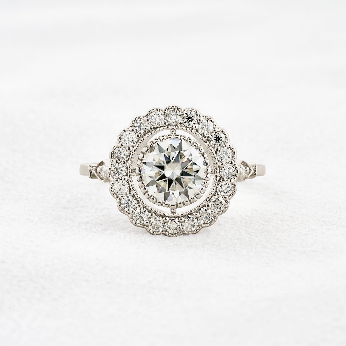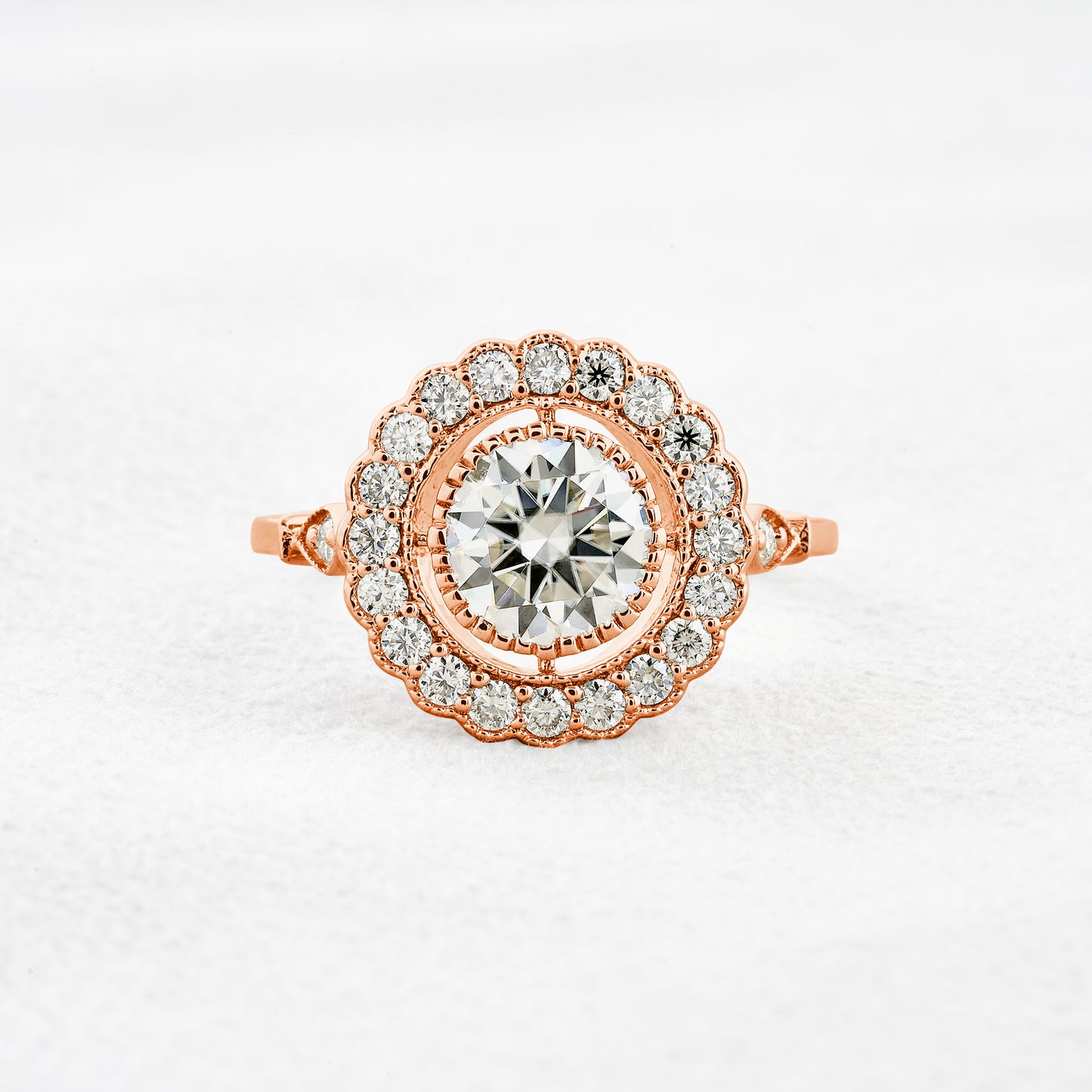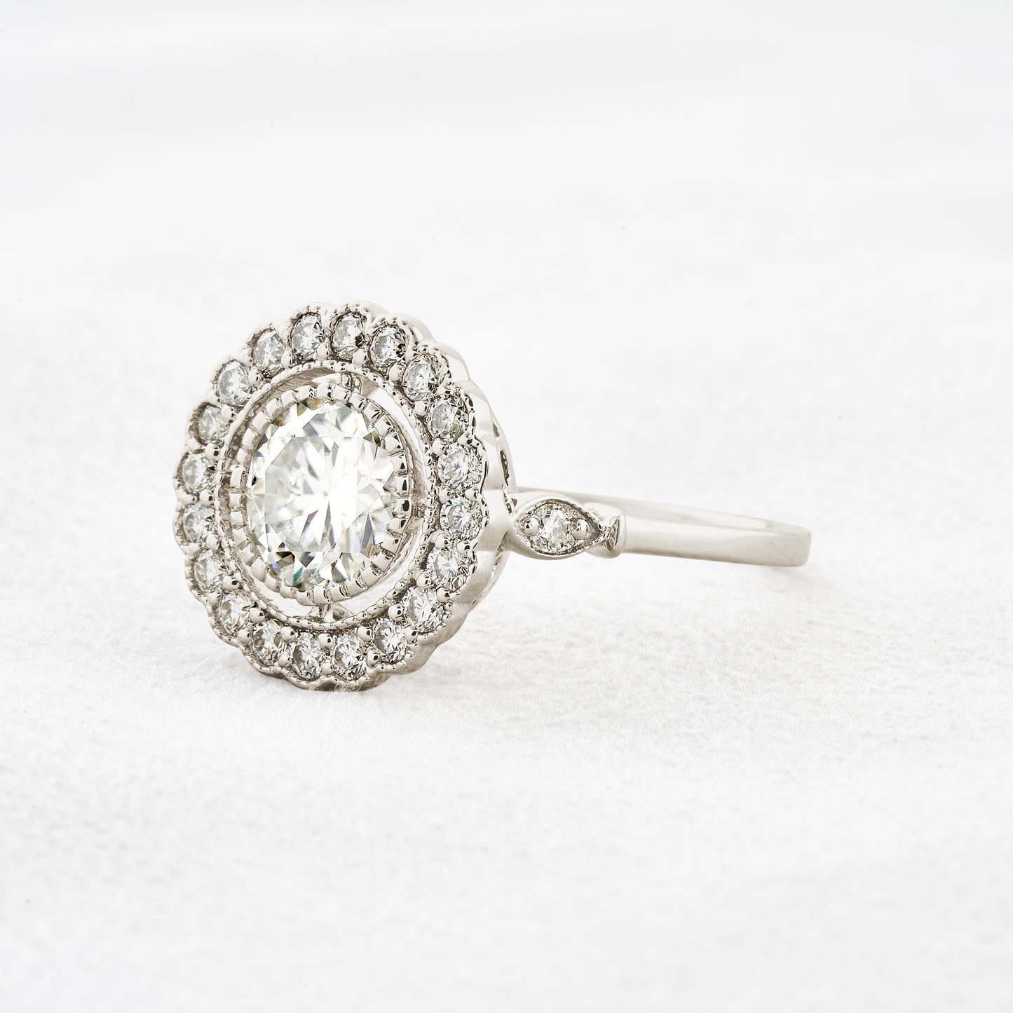 1 CT Round Cut Halo Moissanite Engagement Ring