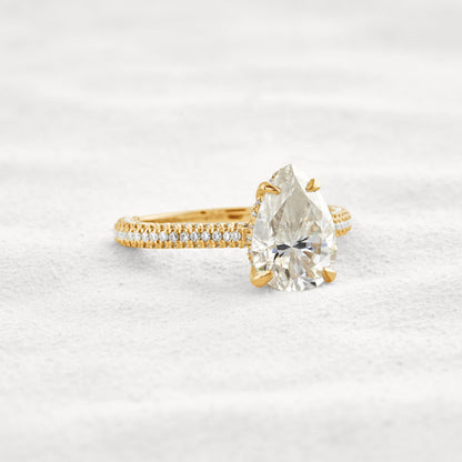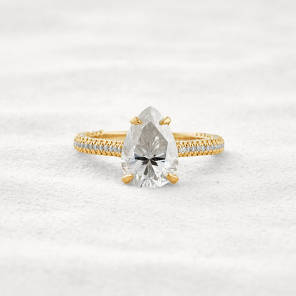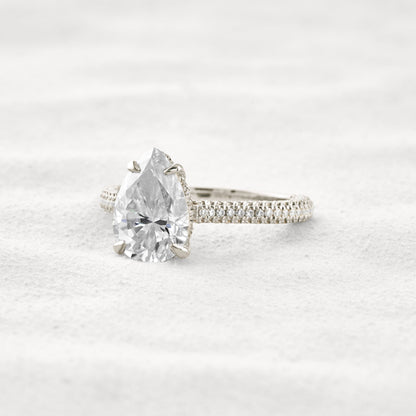 3.1 CT Pear Cut Pave Moissanite Diamond Engagement Ring In White Gold