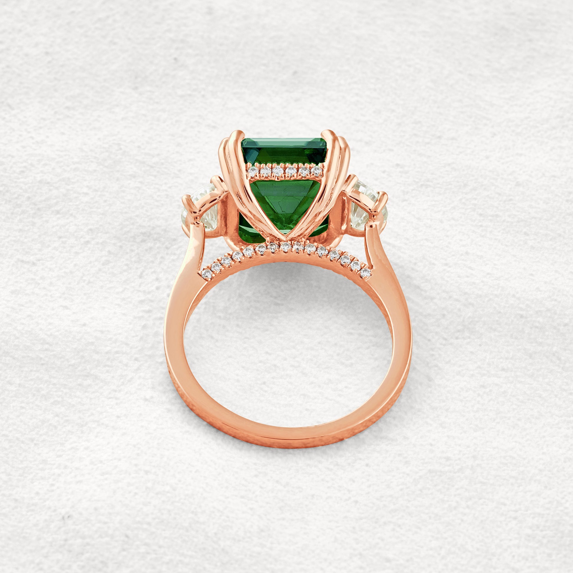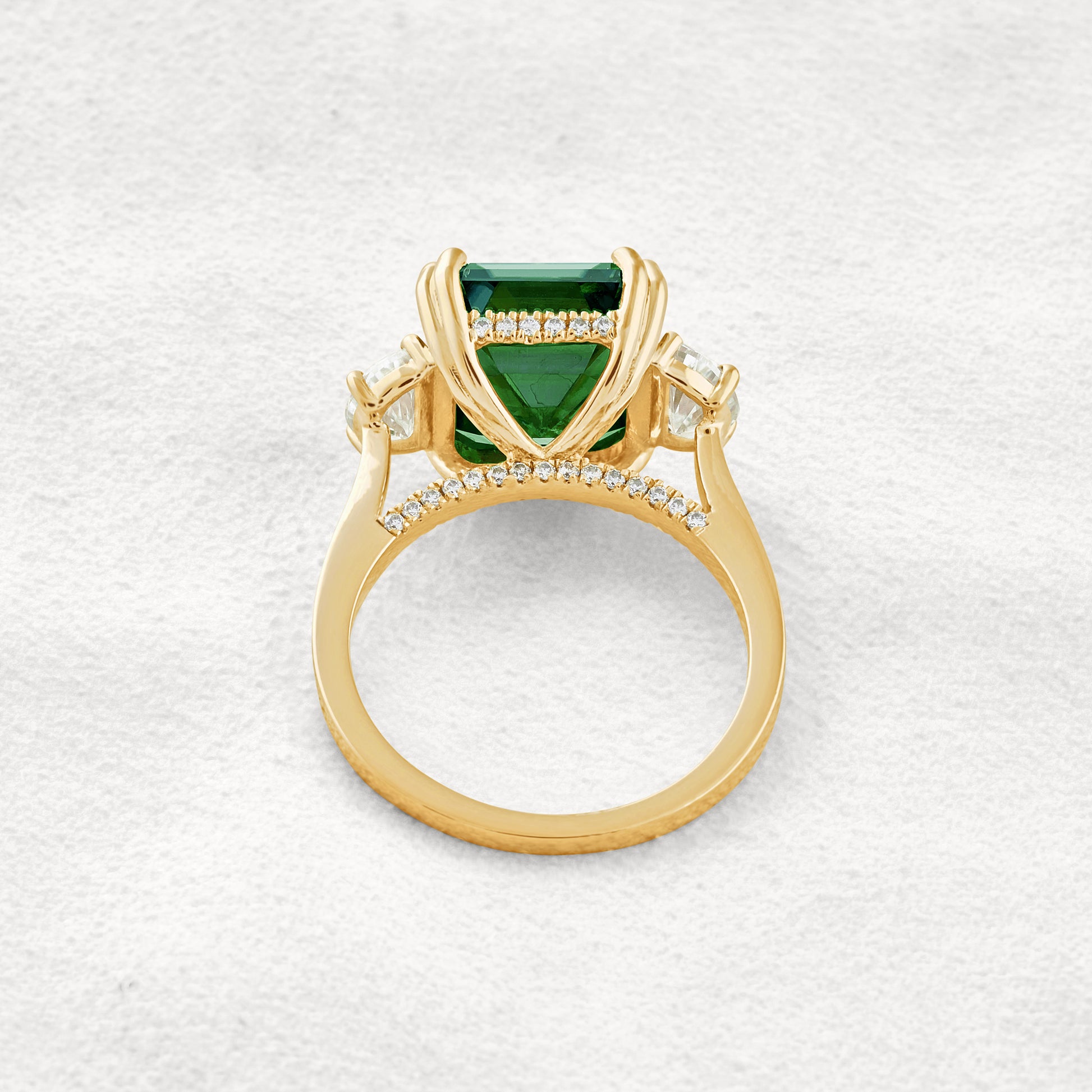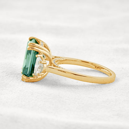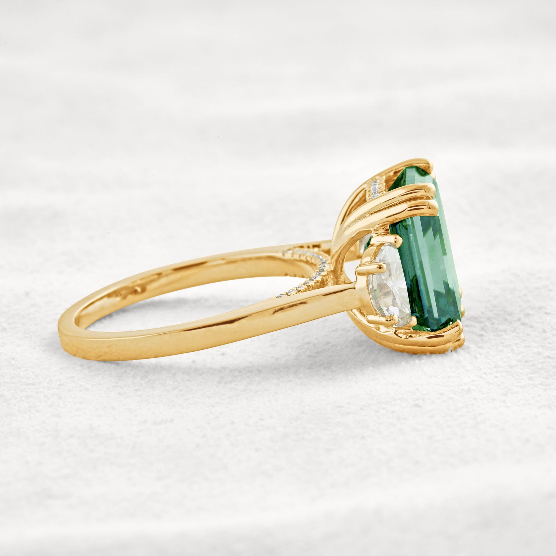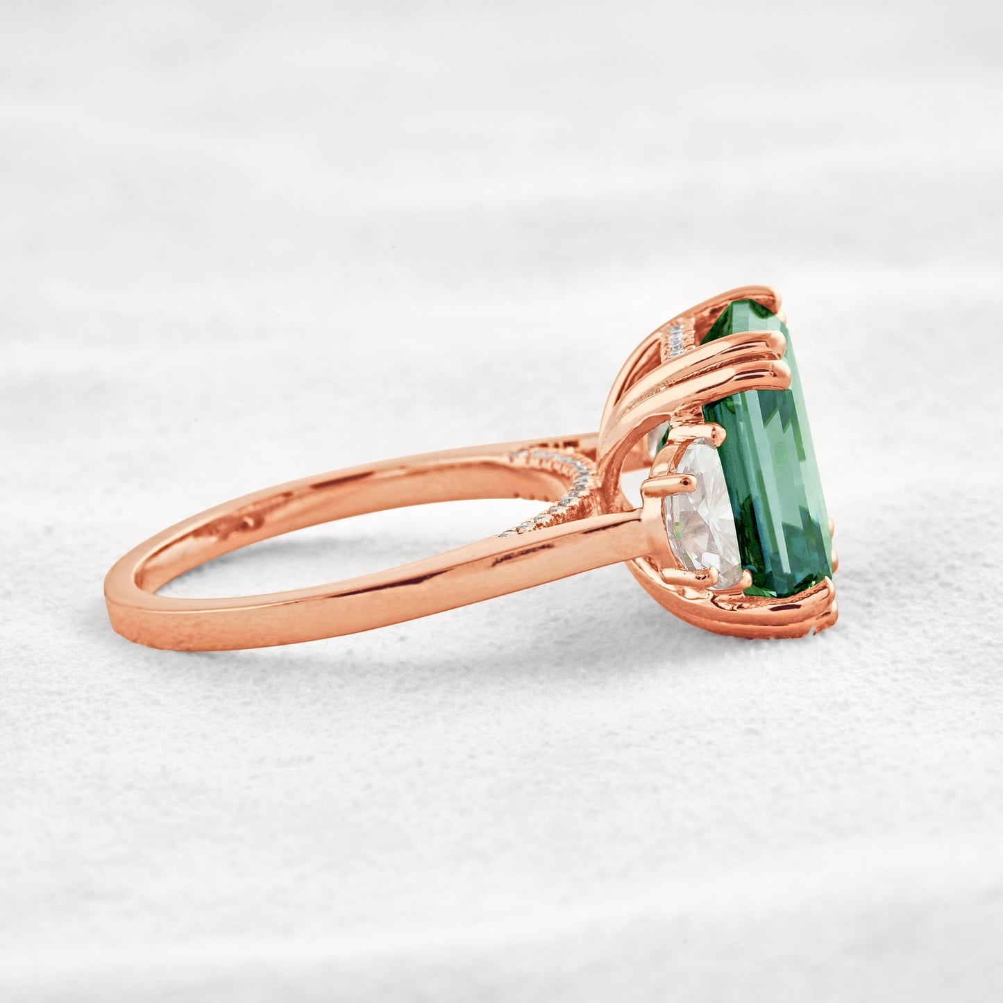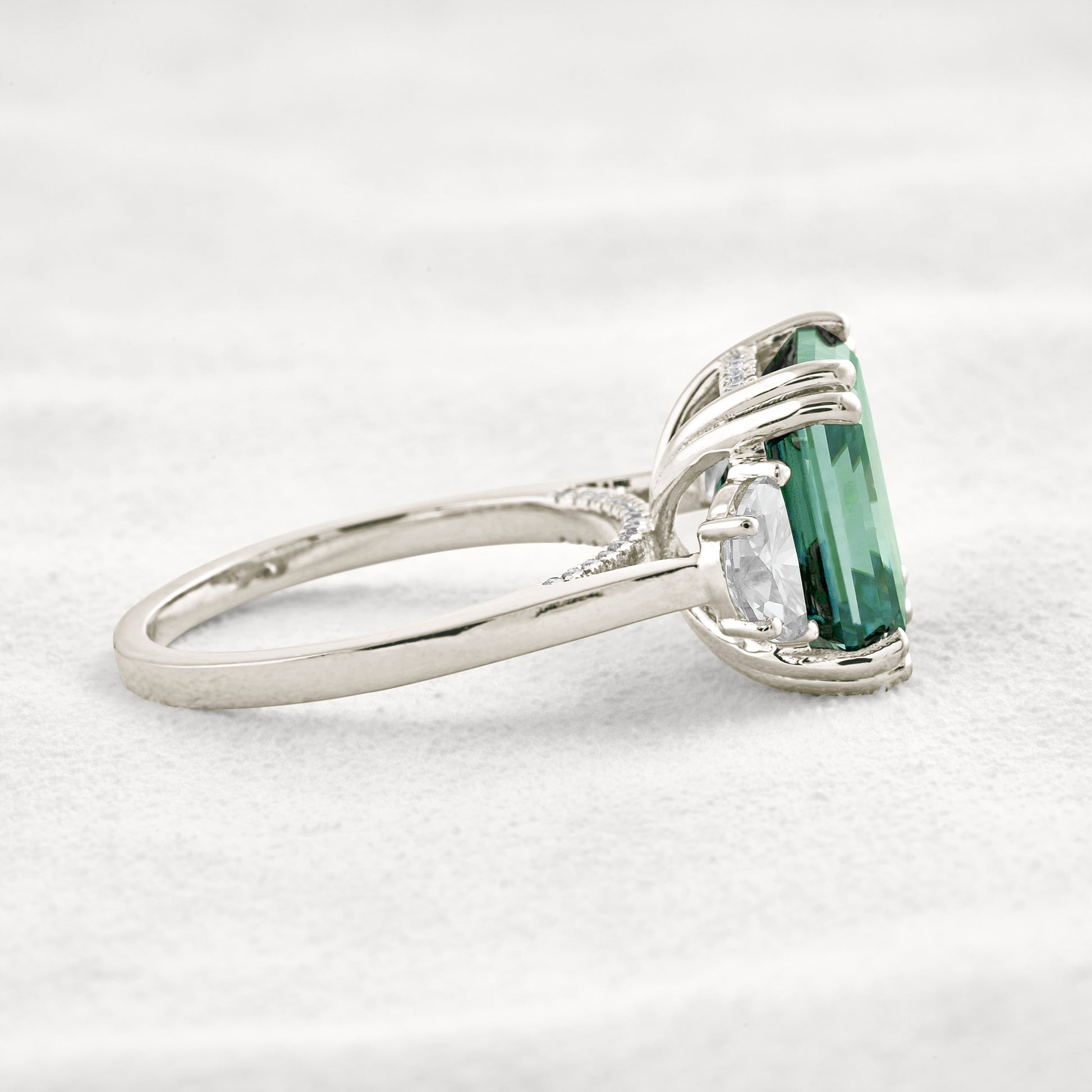 7.6 CT Blue Green Asscher 3 Stones Cut Moissanite Diamond Engagement Ring