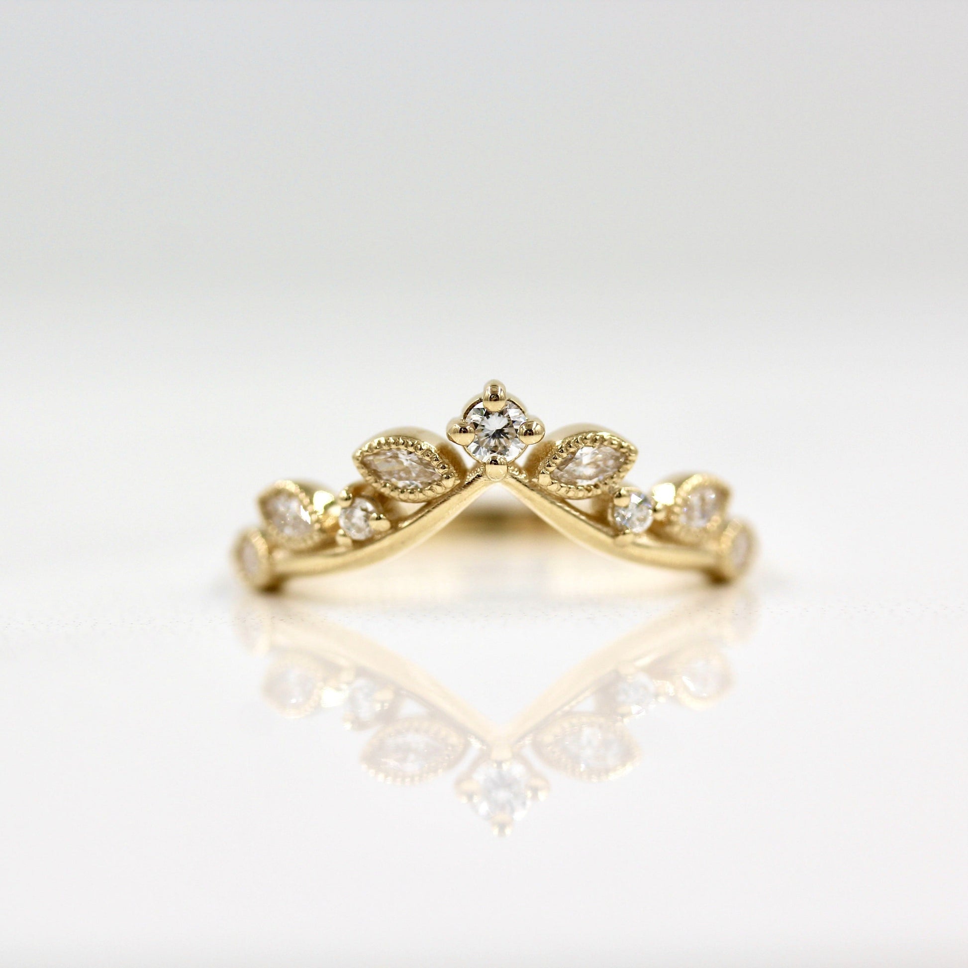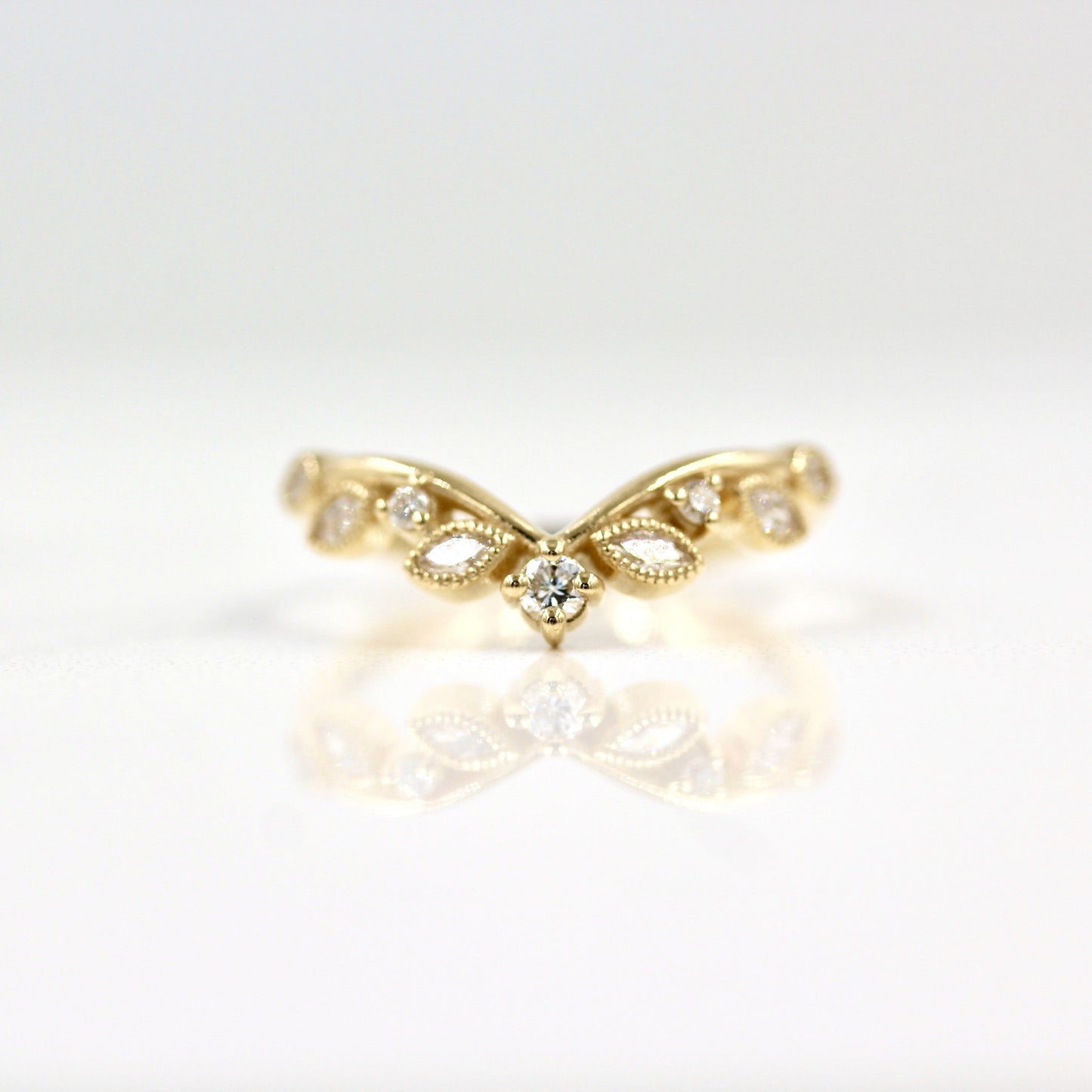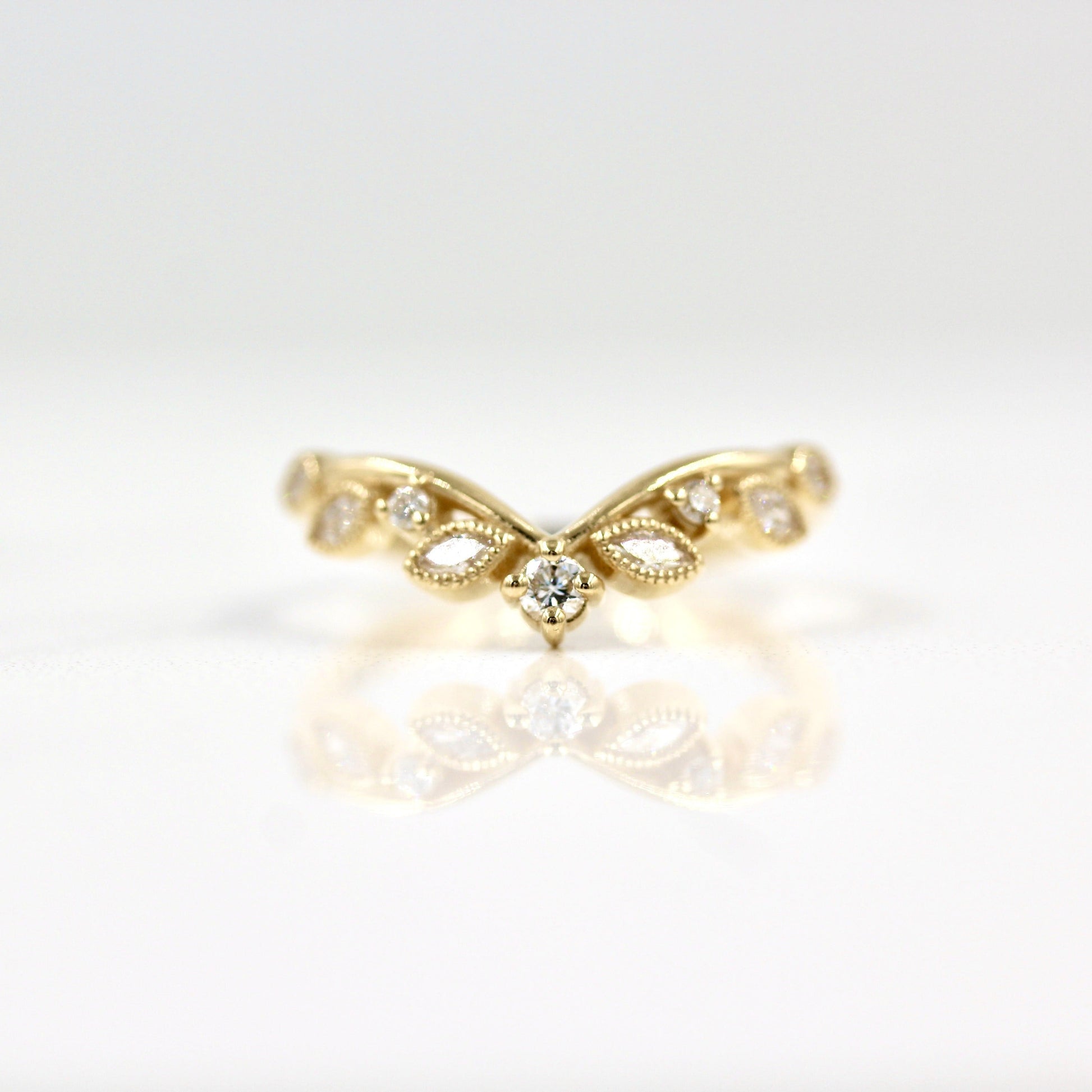 0.21 CT Round Moissanite Diamond Milgrain Curved Wedding Band