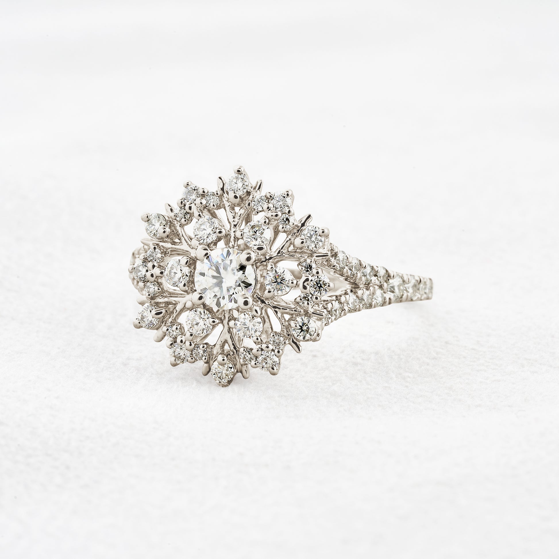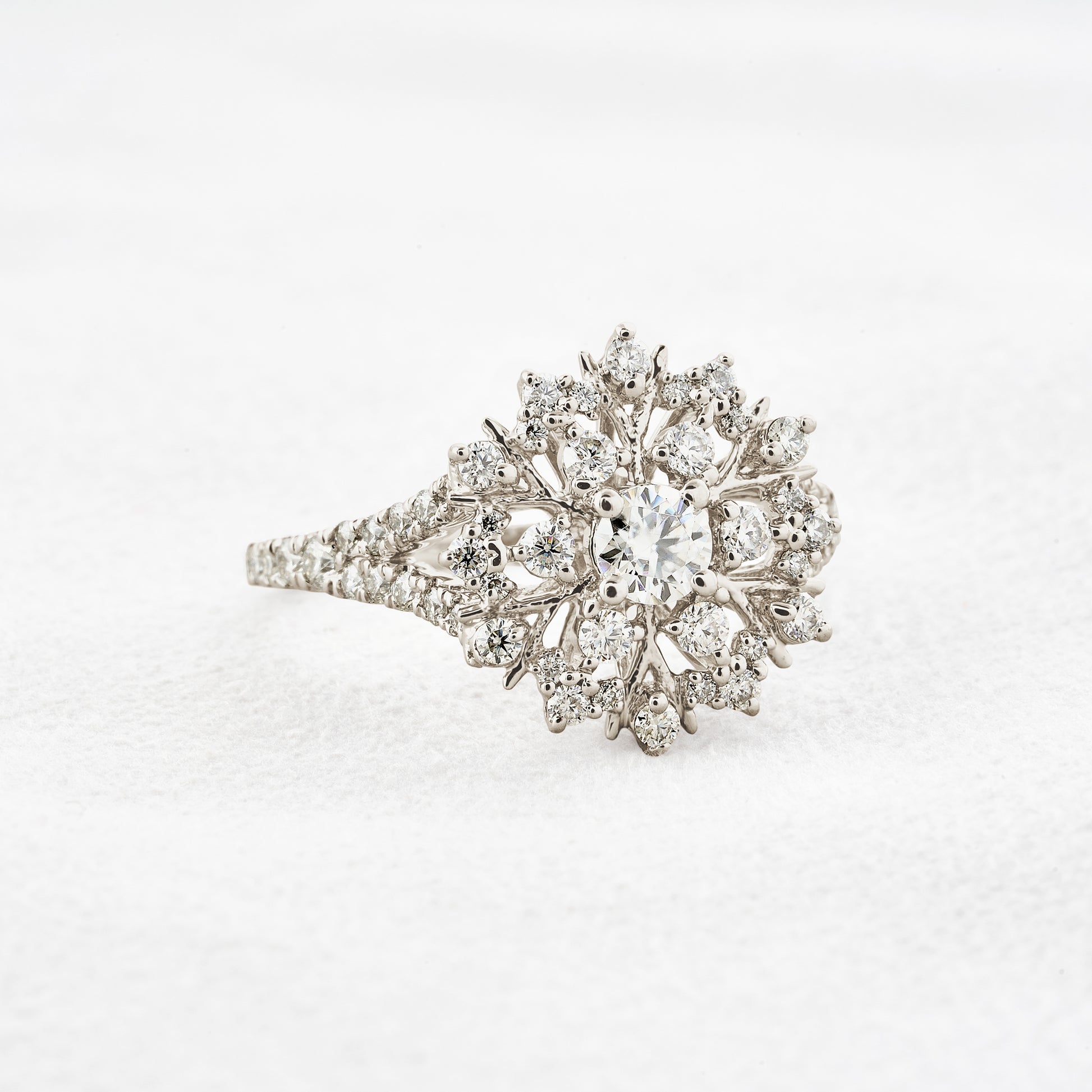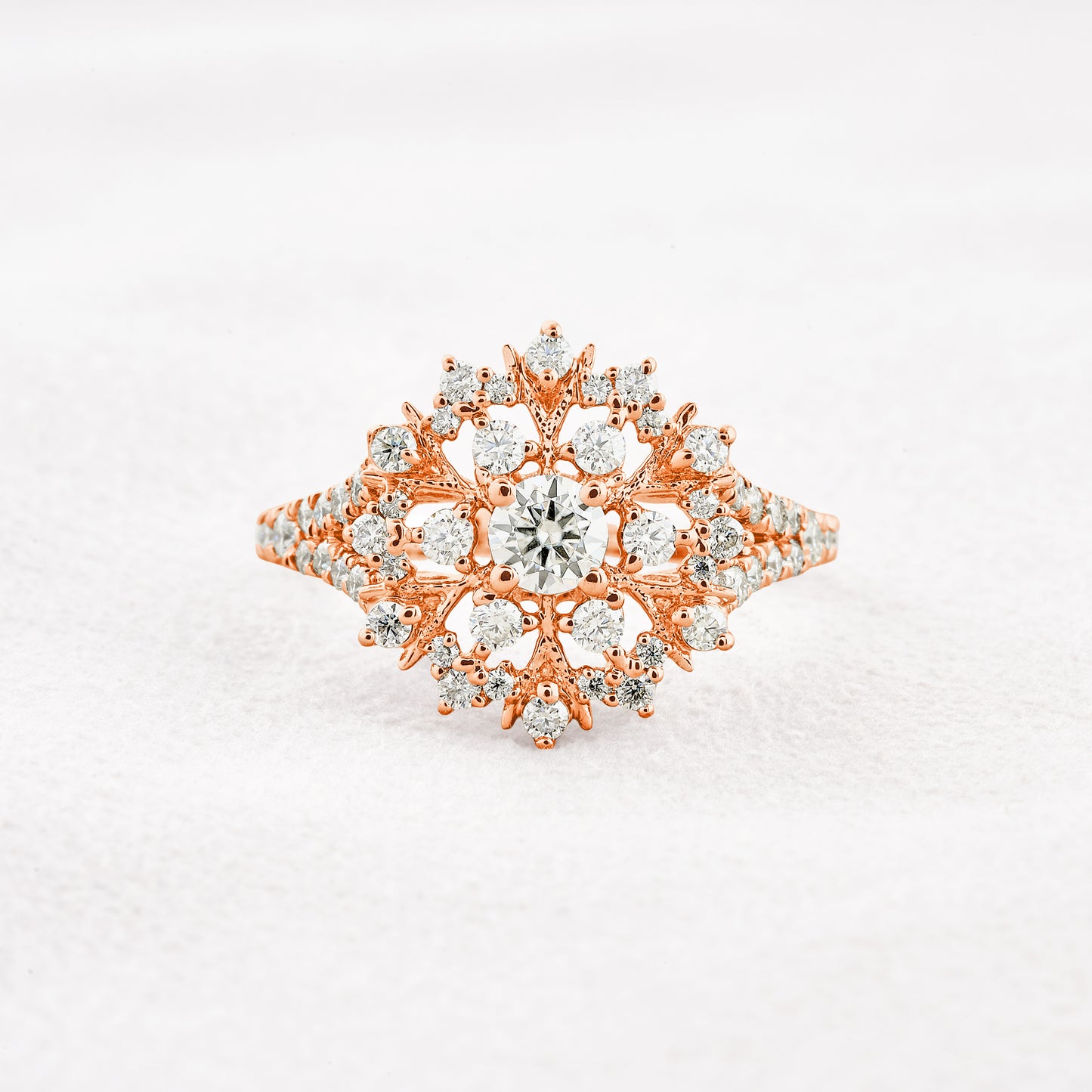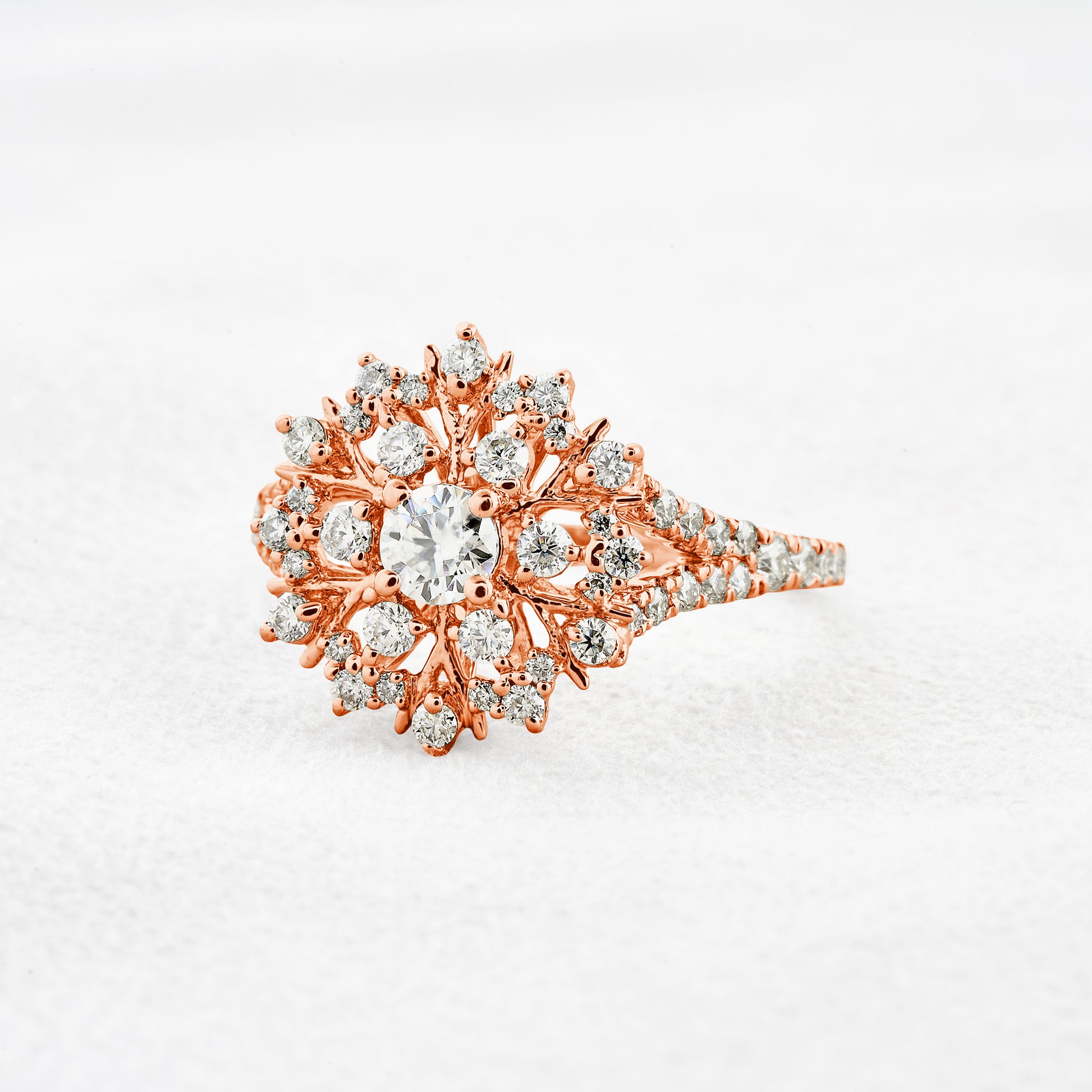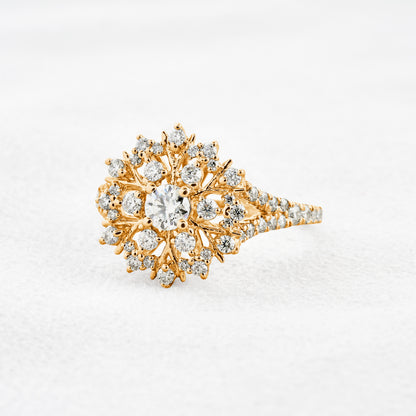 0.25 CT Round Cut Cluster & Pave Moissanite Engagement Ring