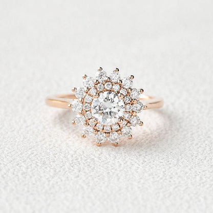 0.5 CT Round Cut Double Halo Moissanite Diamond Engagement Ring