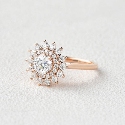 0.42 CT Round Moissanite Diamond Double Halo Engagement Ring