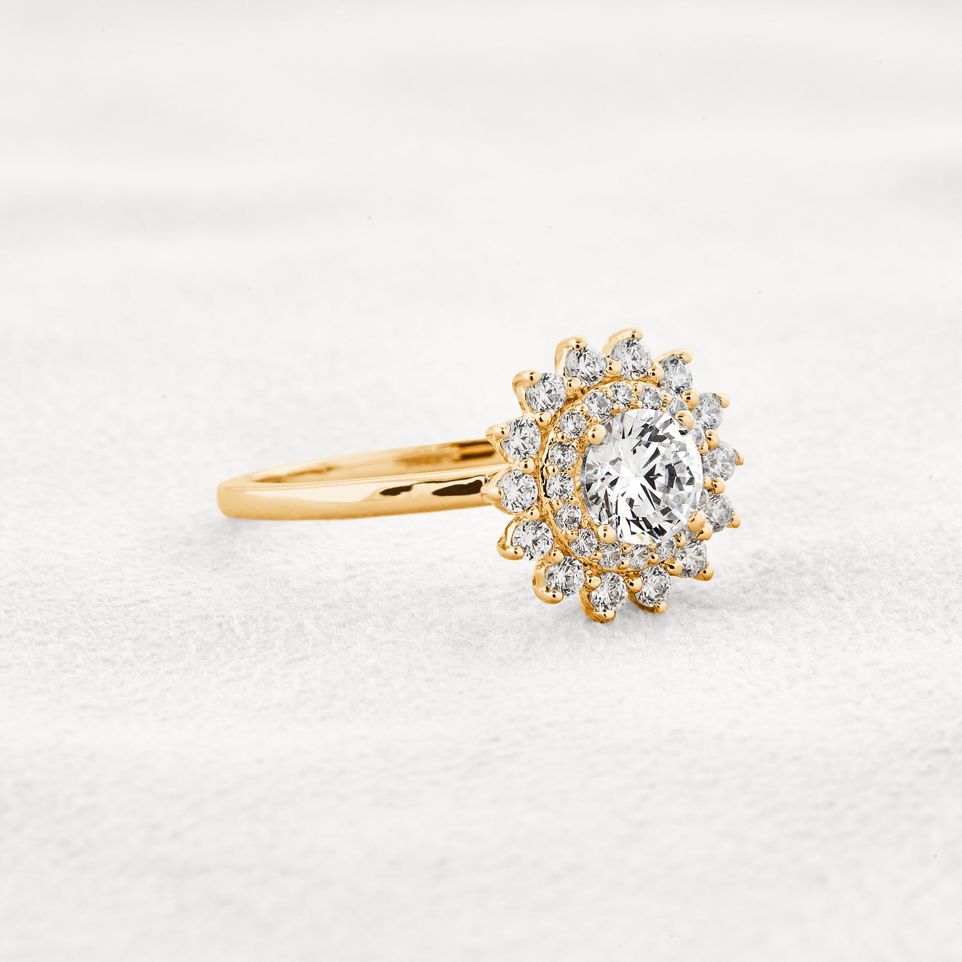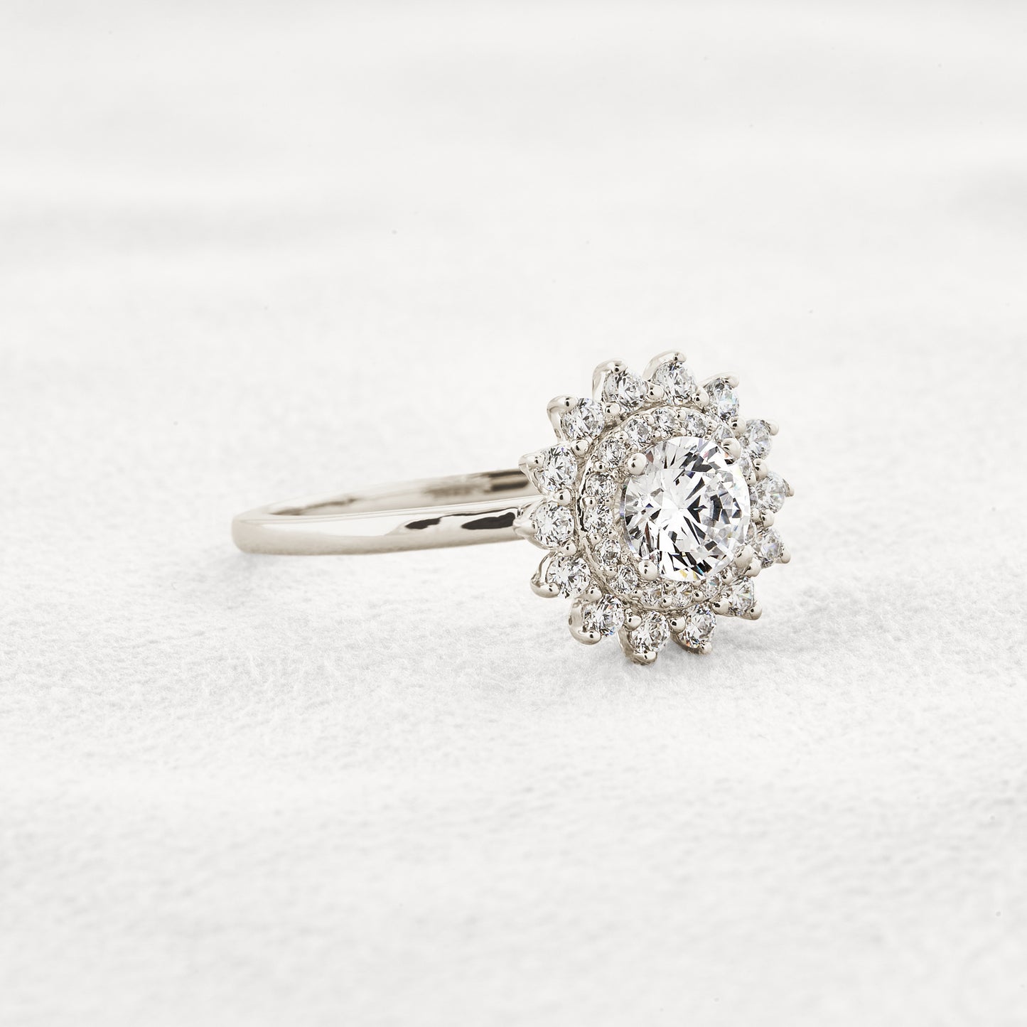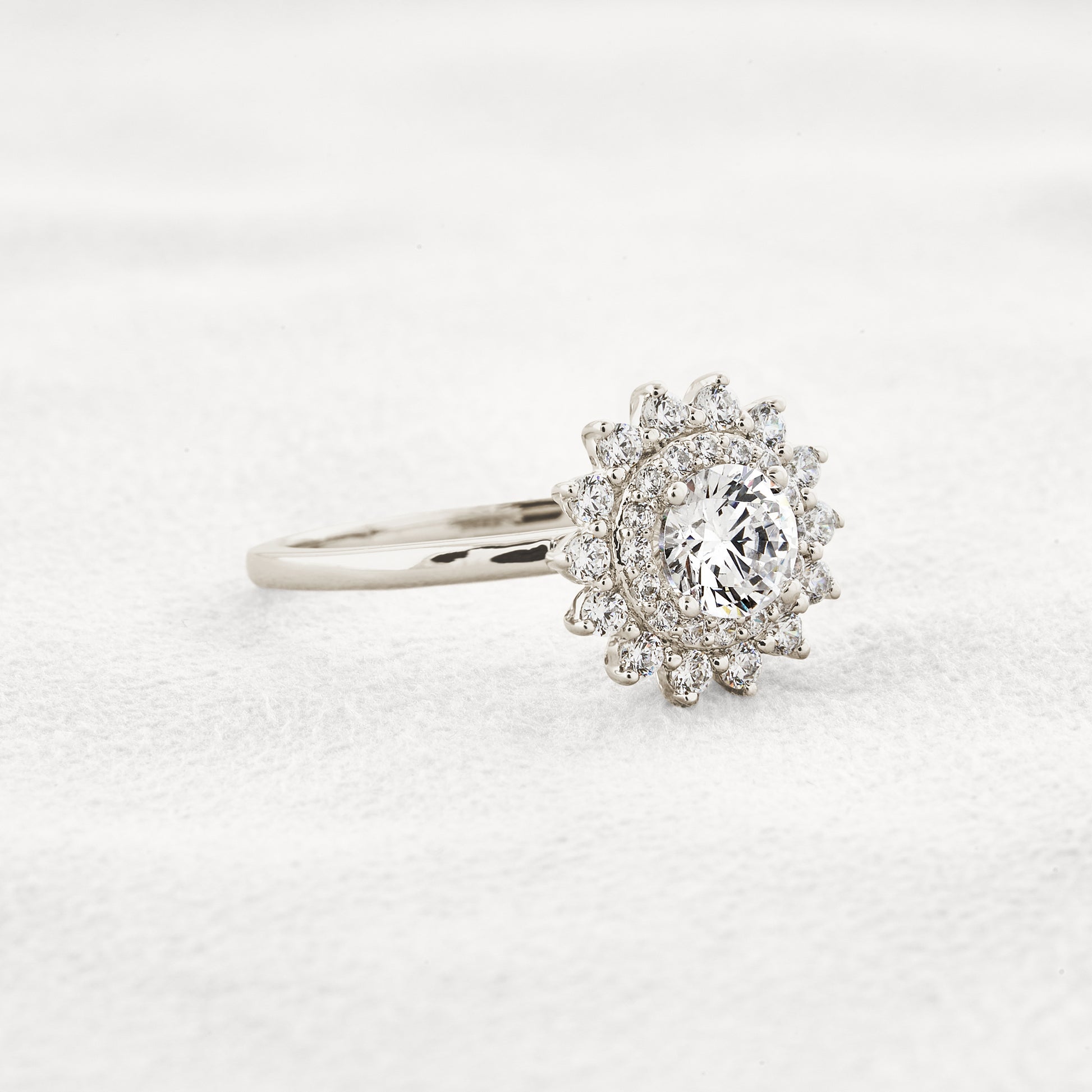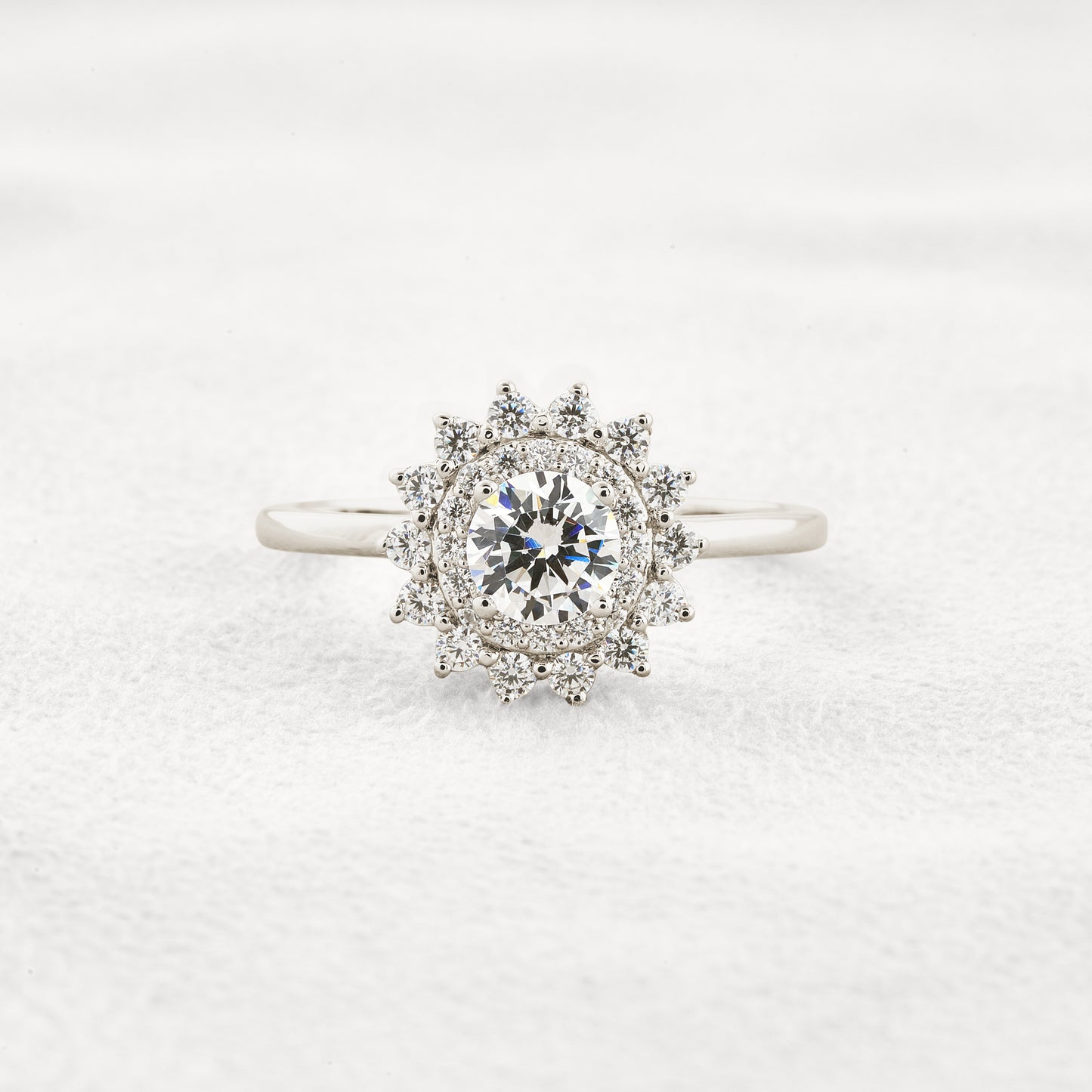 0.5 CT Round Cut Double Halo Moissanite Diamond Engagement Ring