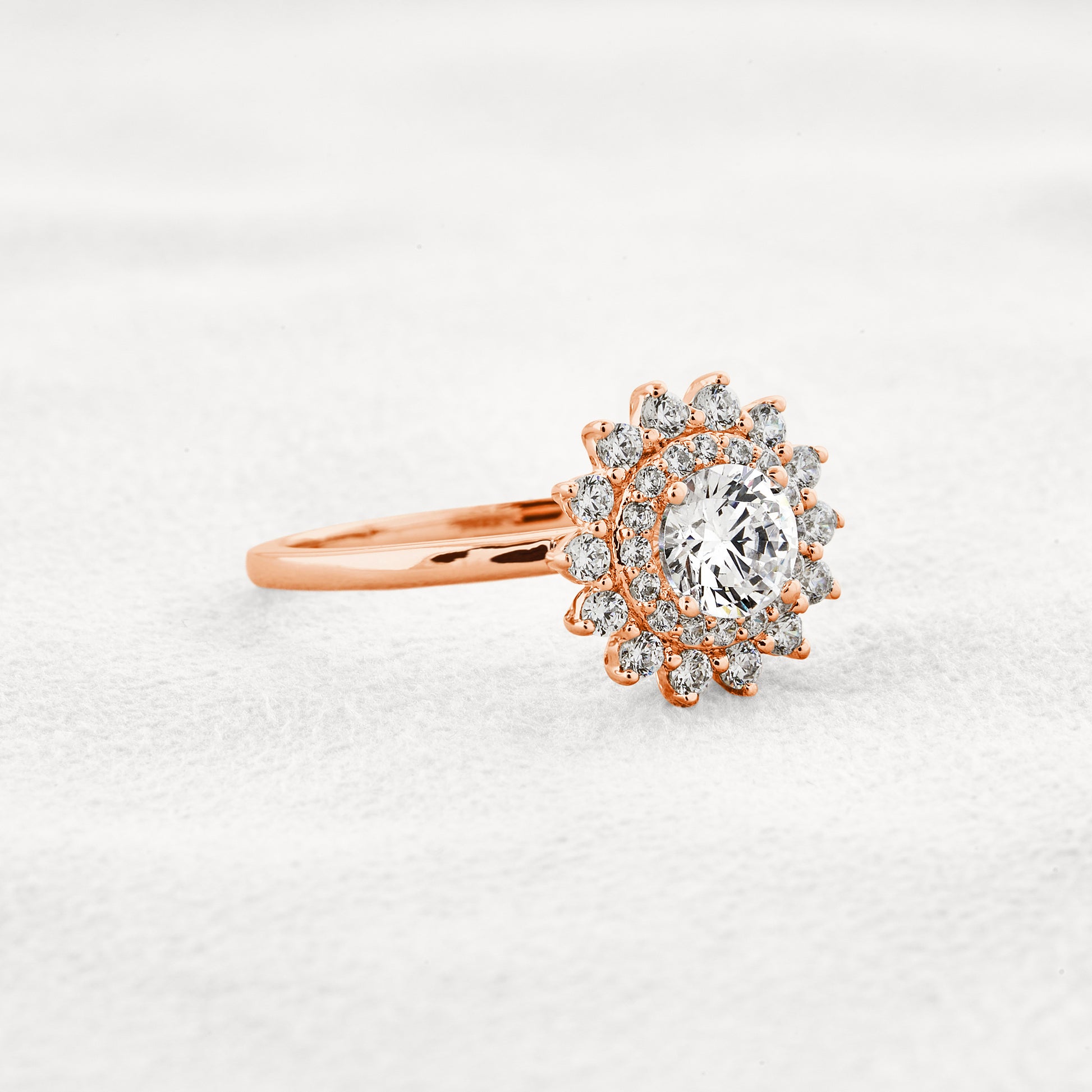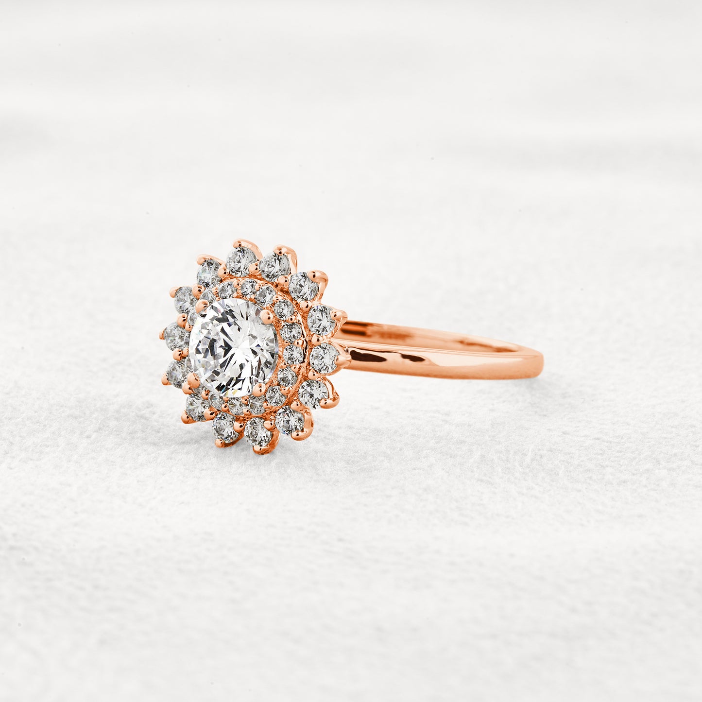 0.55 CT Round Cut Double Halo Moissanite Engagement Ring