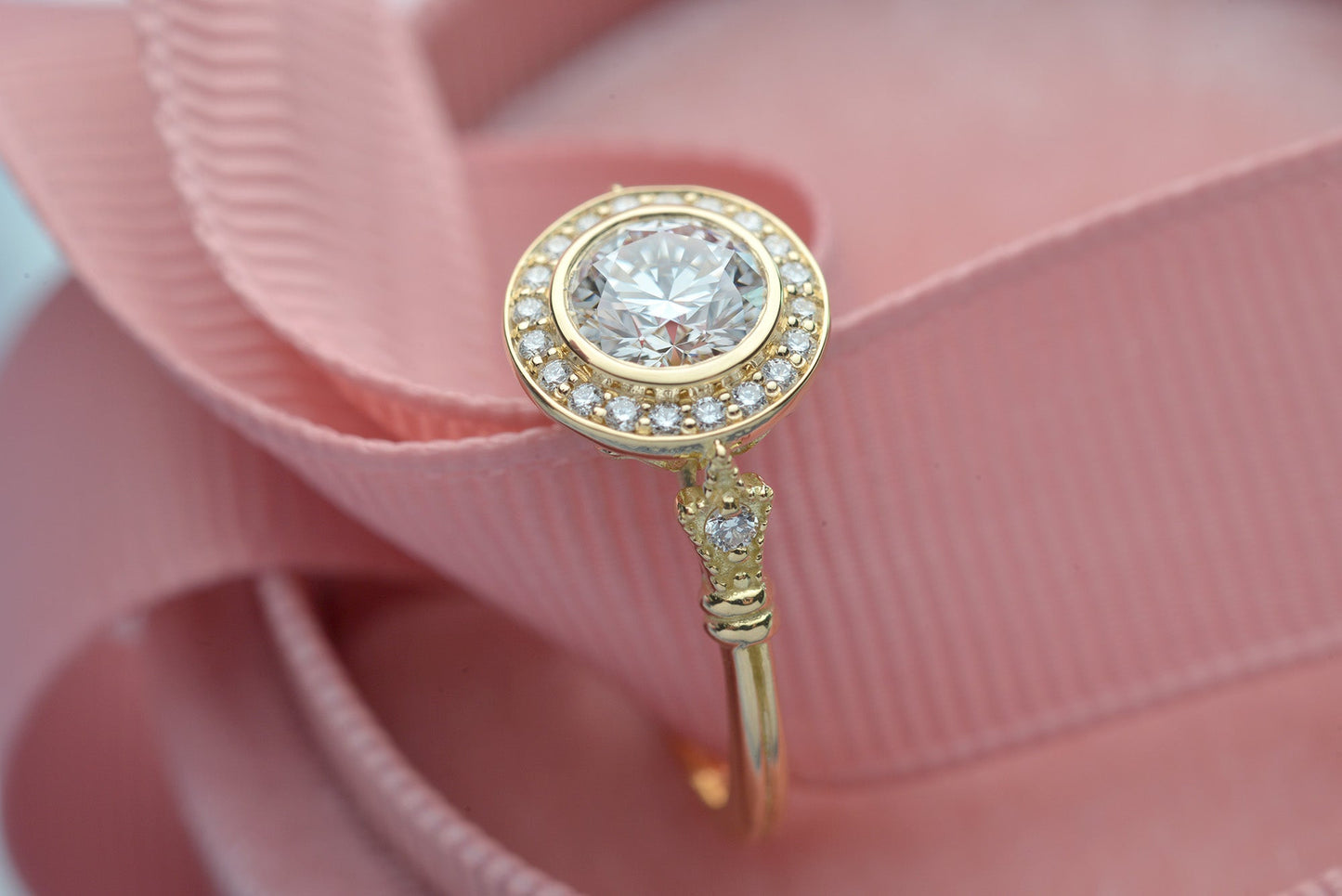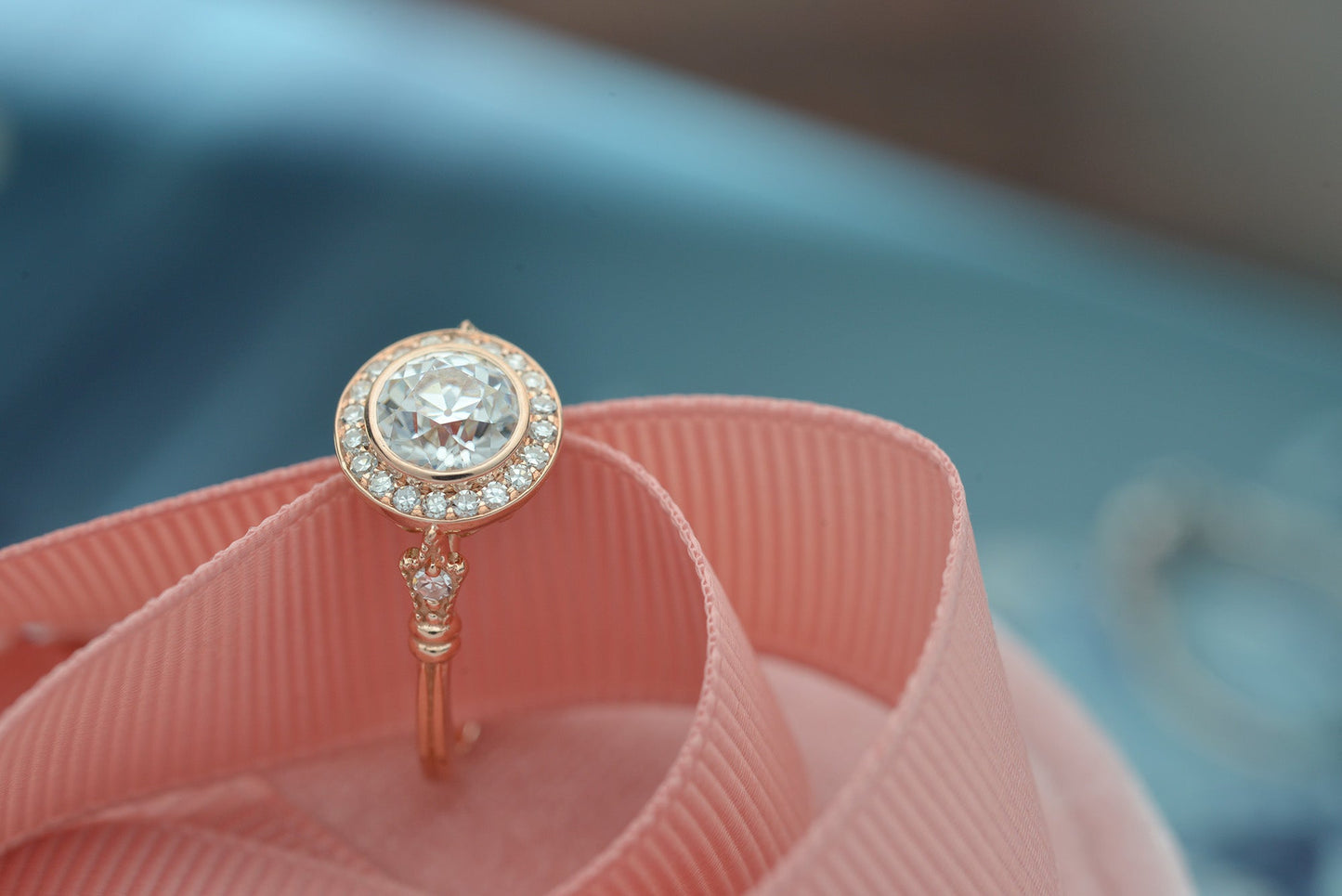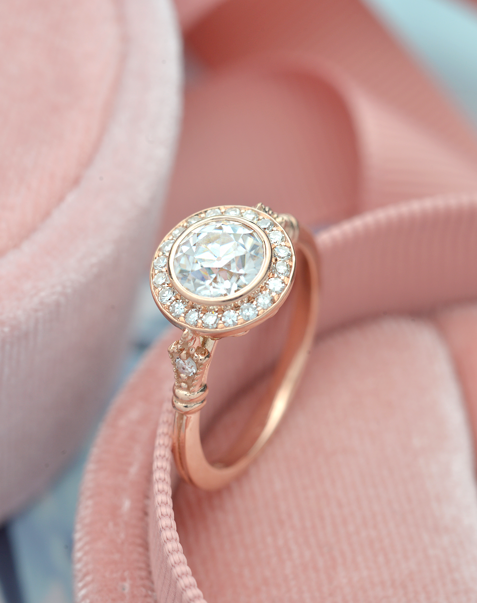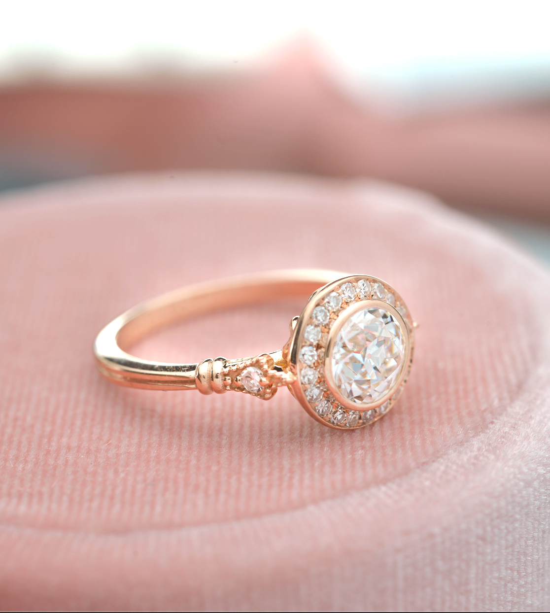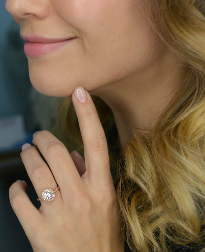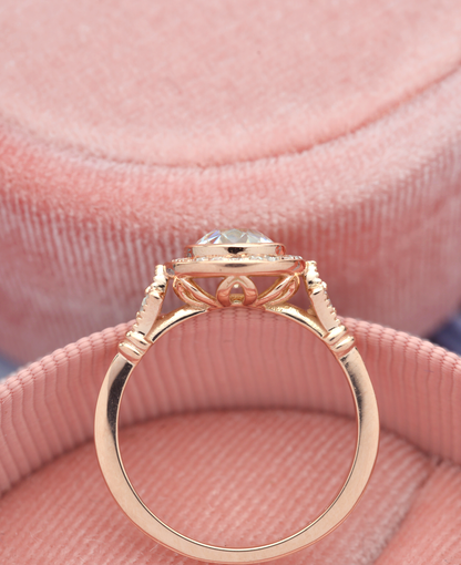 0.7 CT Round Moissanite Diamond Vintage Halo Engagement Ring