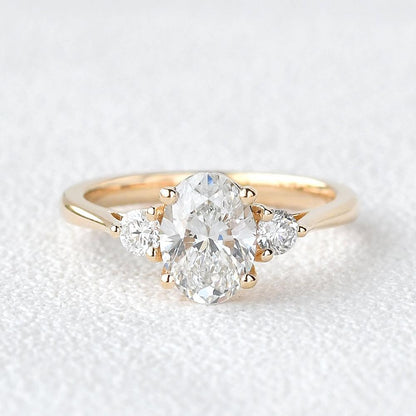 0.94 CT Oval Moissanite Diamond Three Stones Engagement Ring