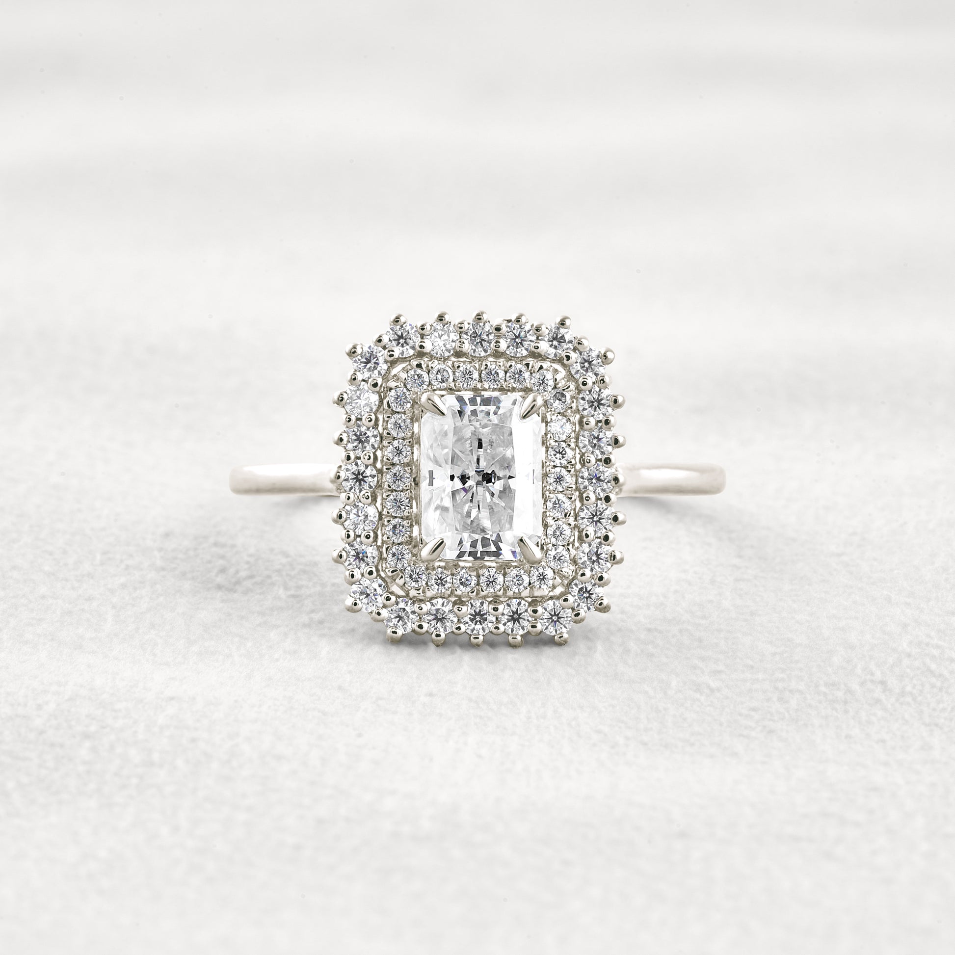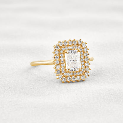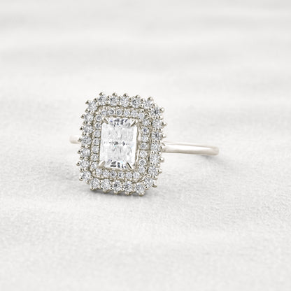 1.05 CT Radiant Cut Double Halo Moissanite Diamond Engagement Ring