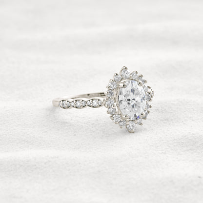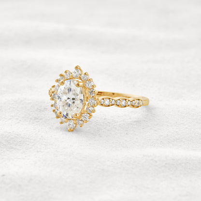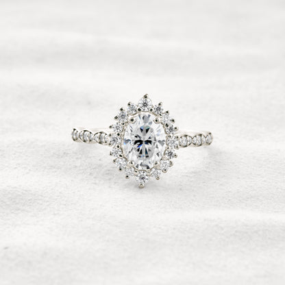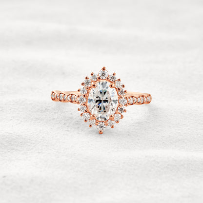 1.33 CT Oval Cut Halo & Pave Moissanite Diamond Engagement Ring