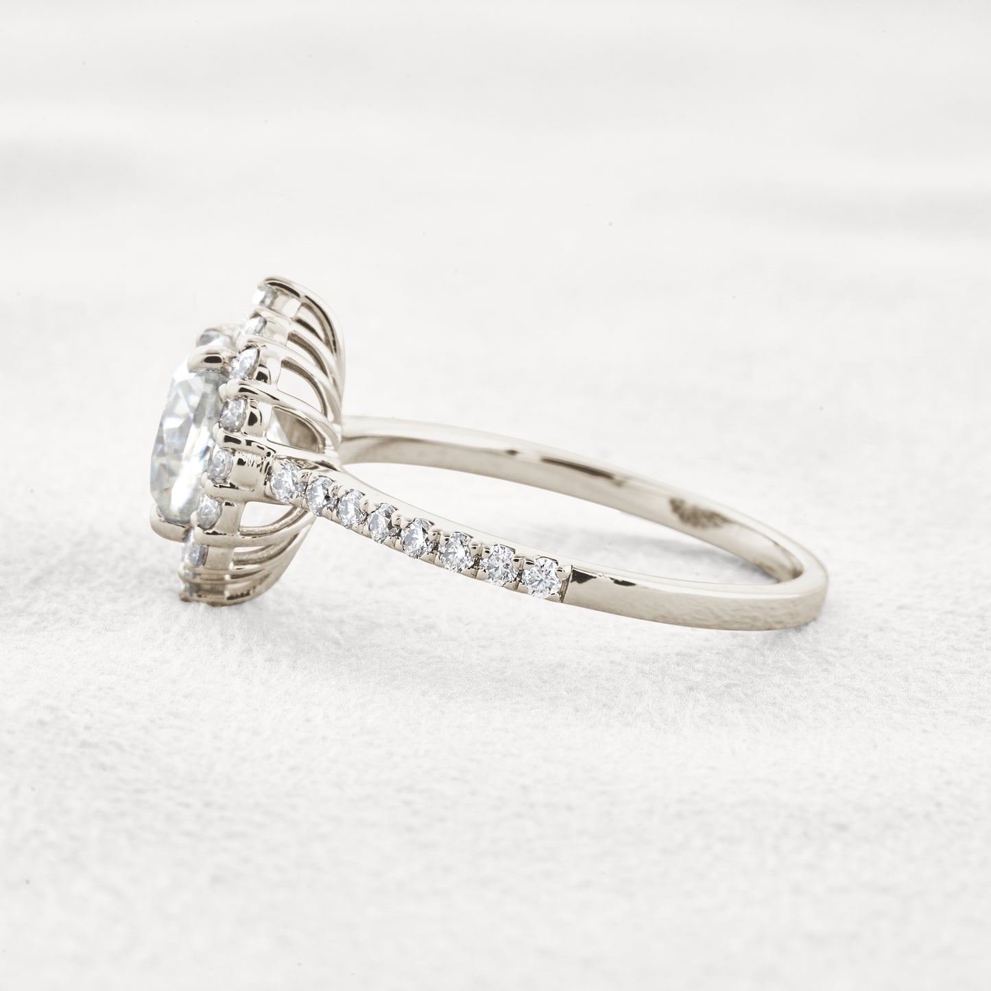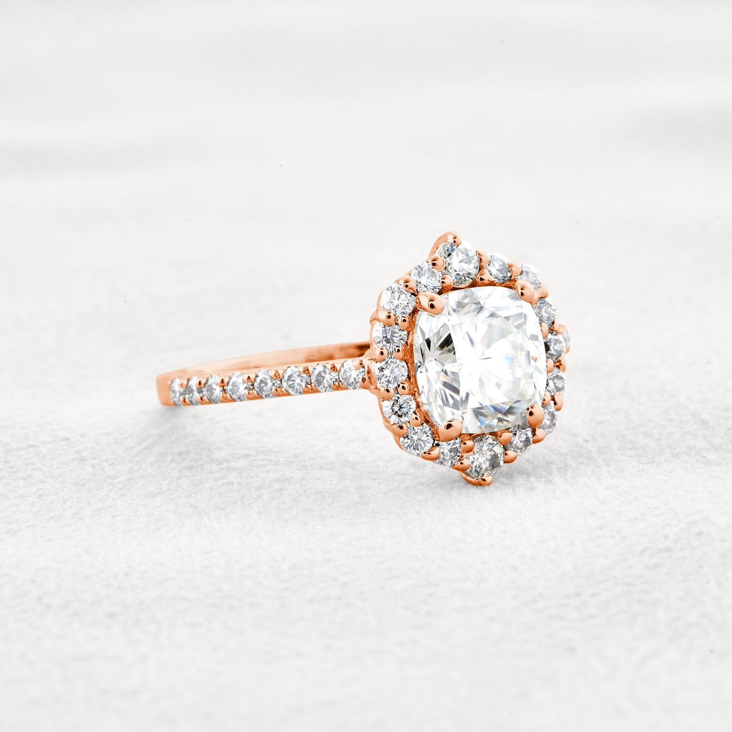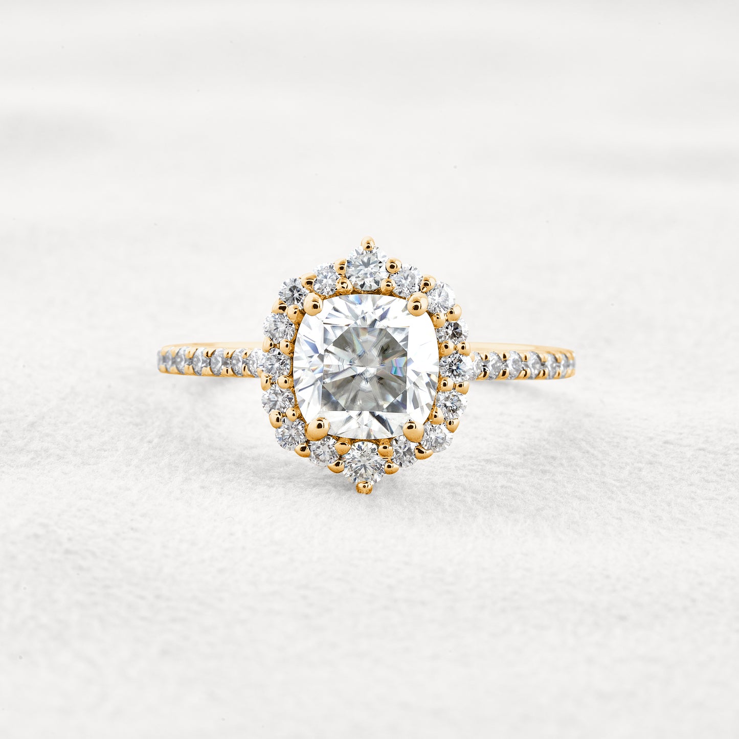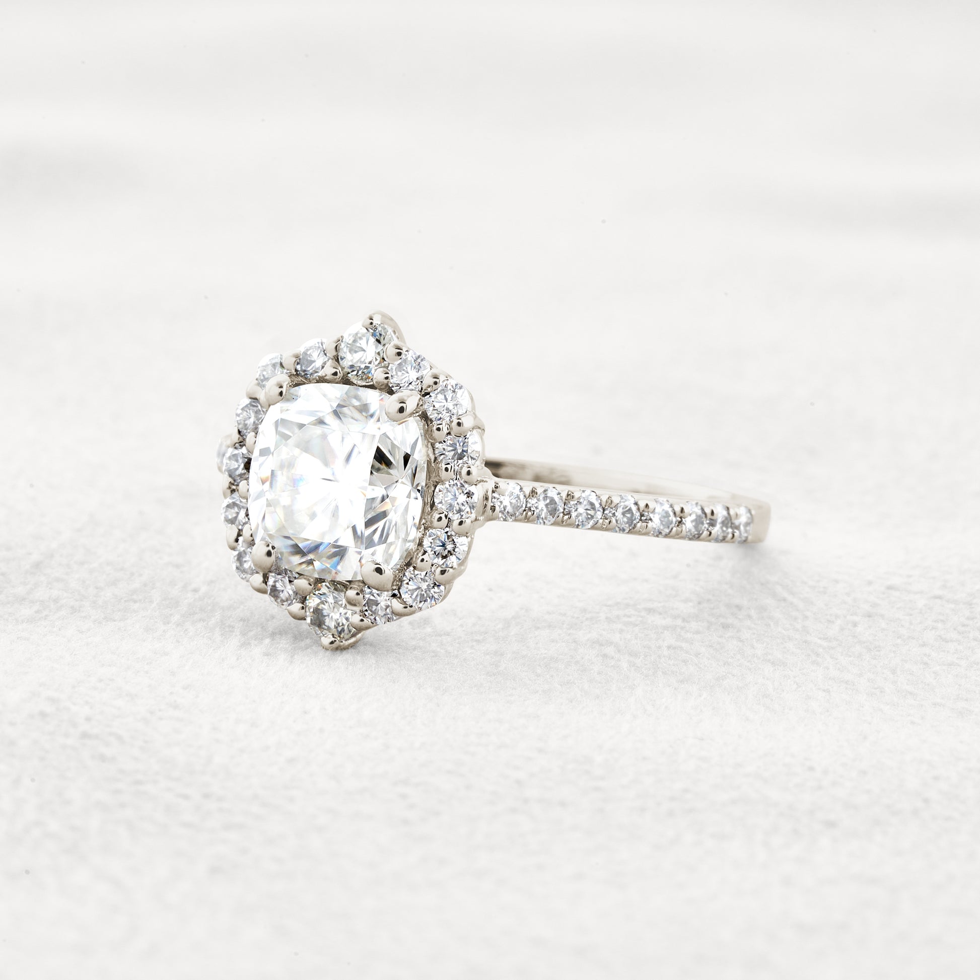 1.5 CT Cushion Cut Halo & Pave Moissanite Wedding Ring