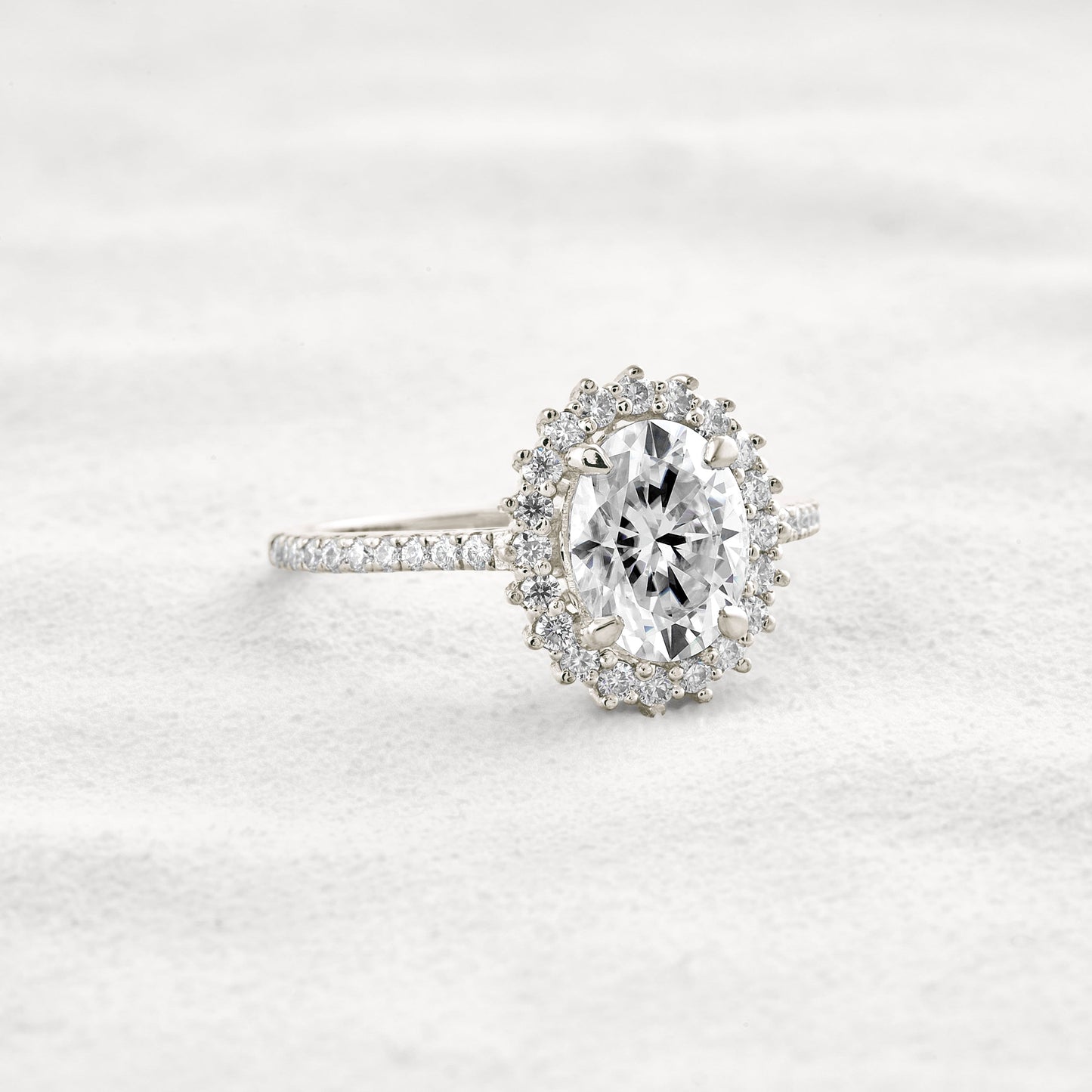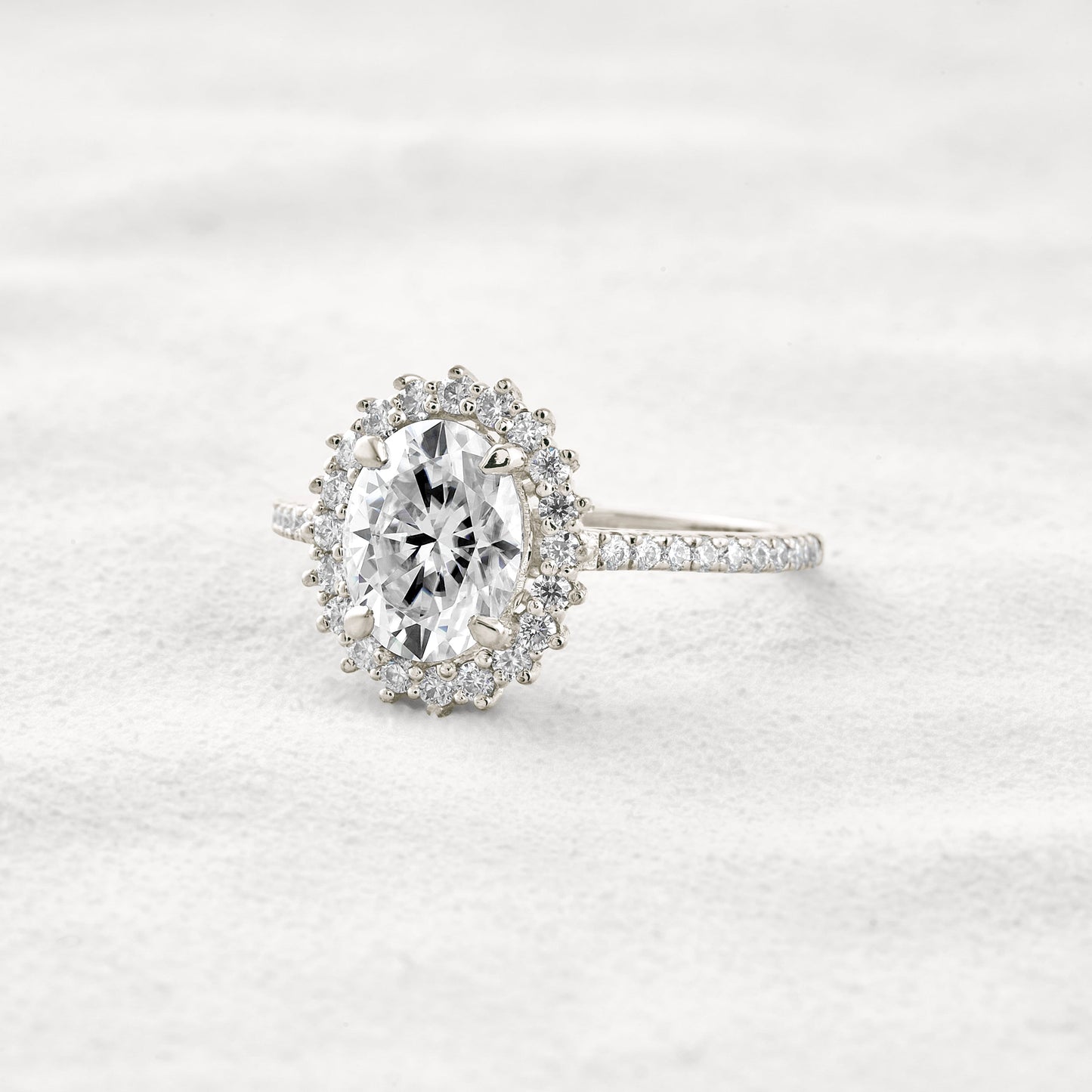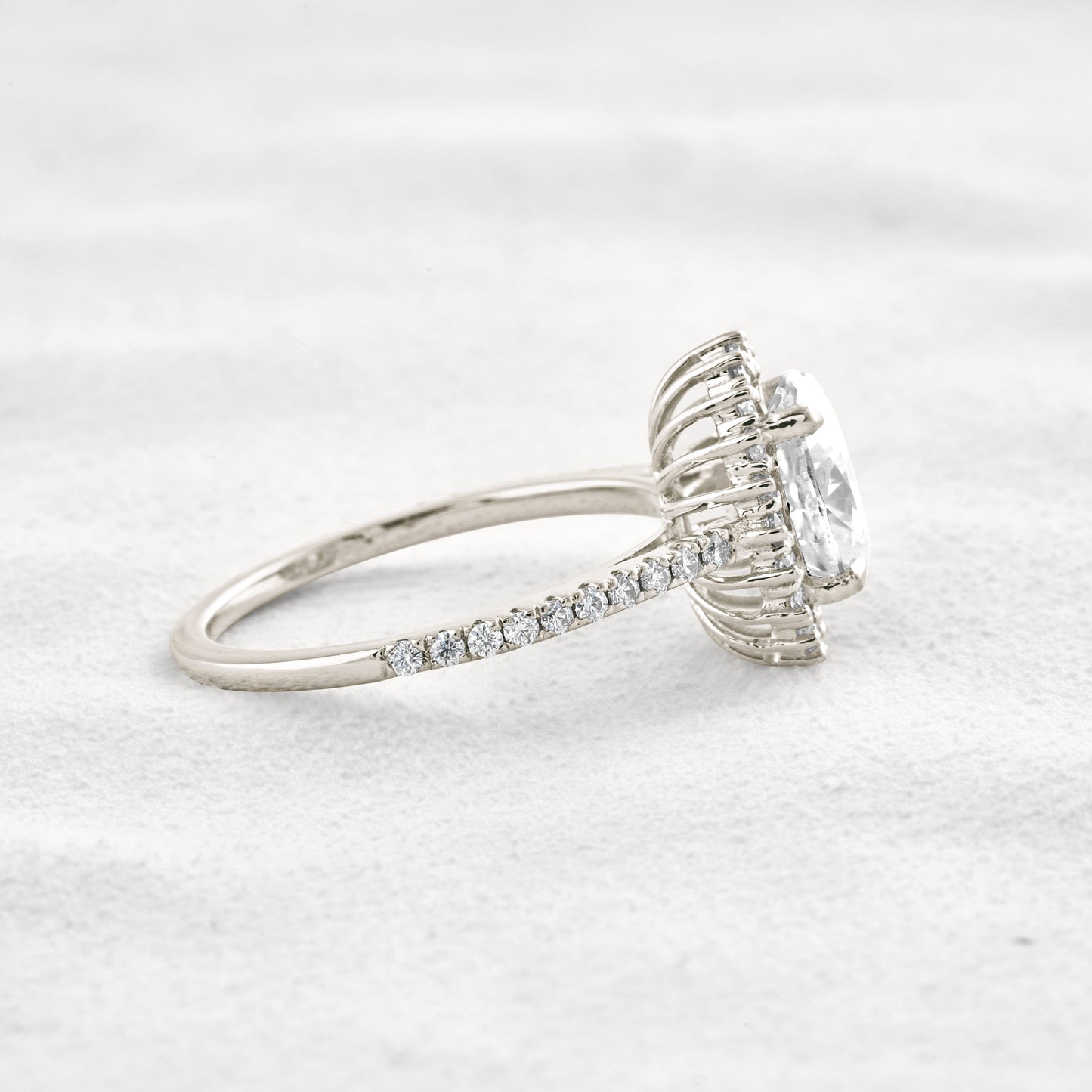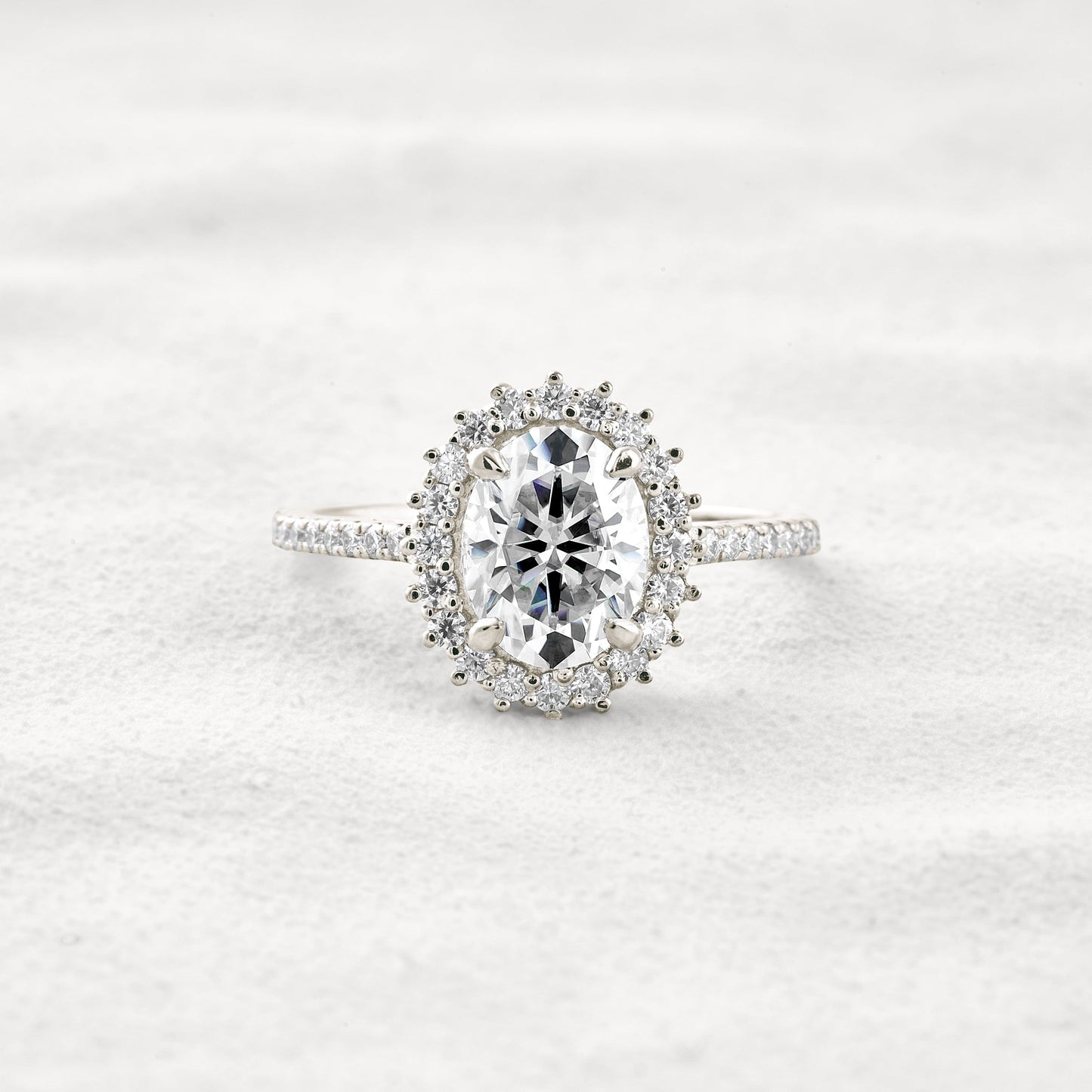 1.91 CT Oval Cut Halo & Pave Moissanite Diamond Engagement Ring In White Gold