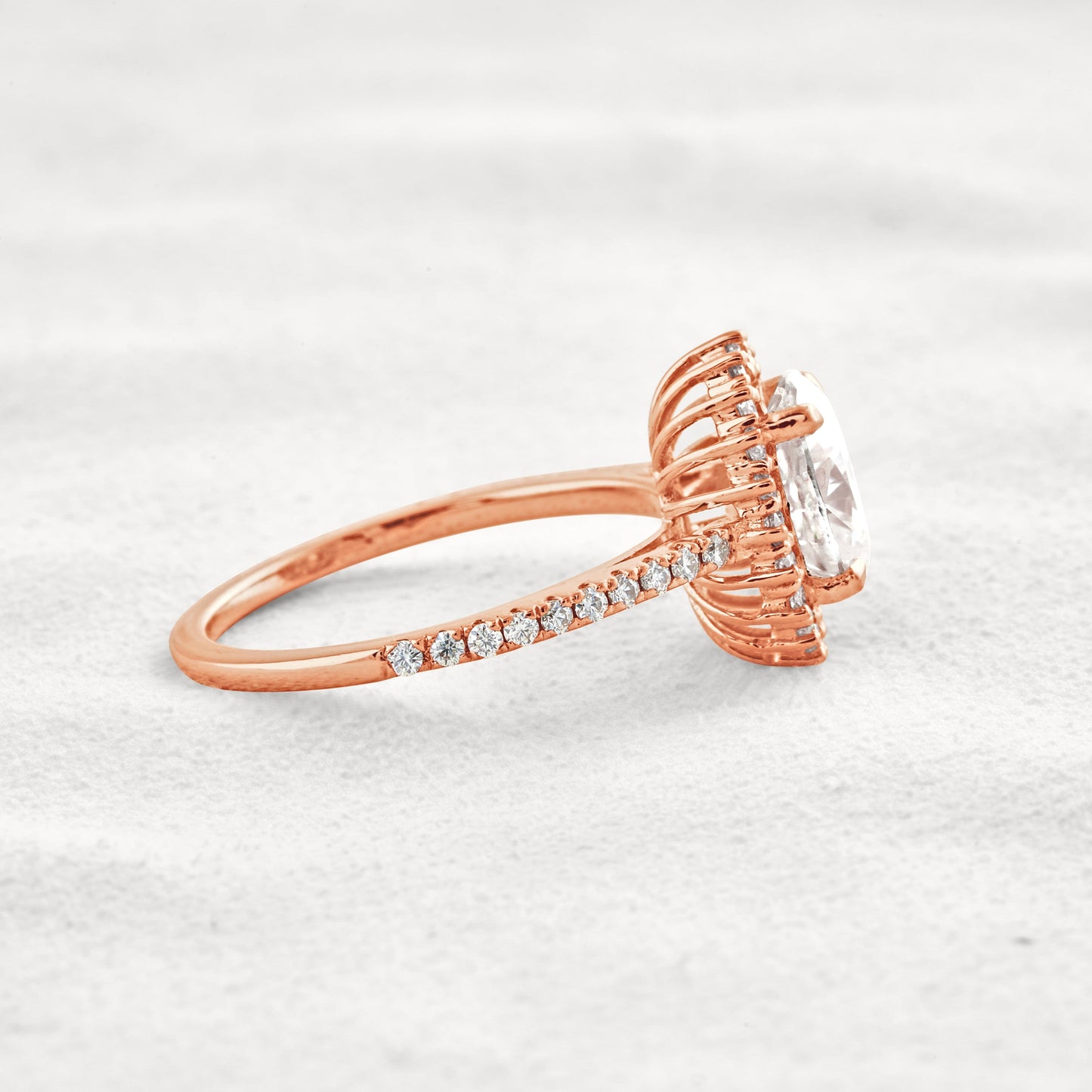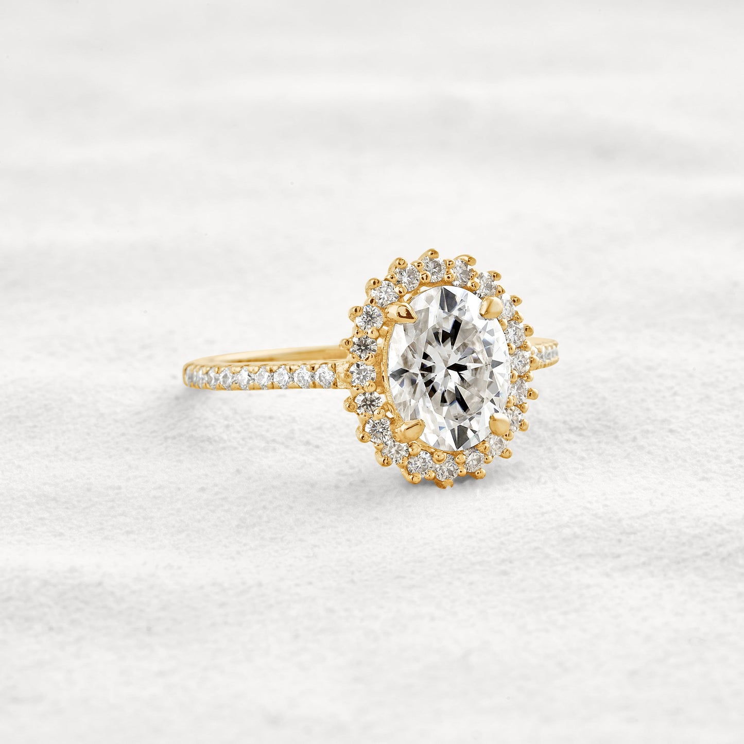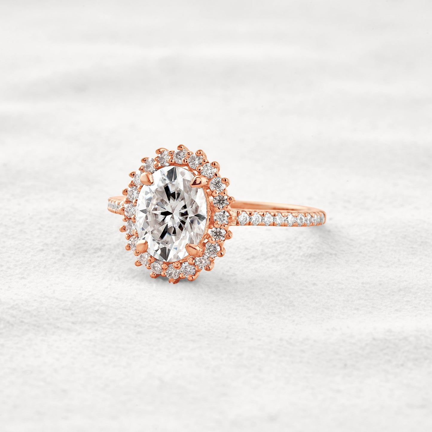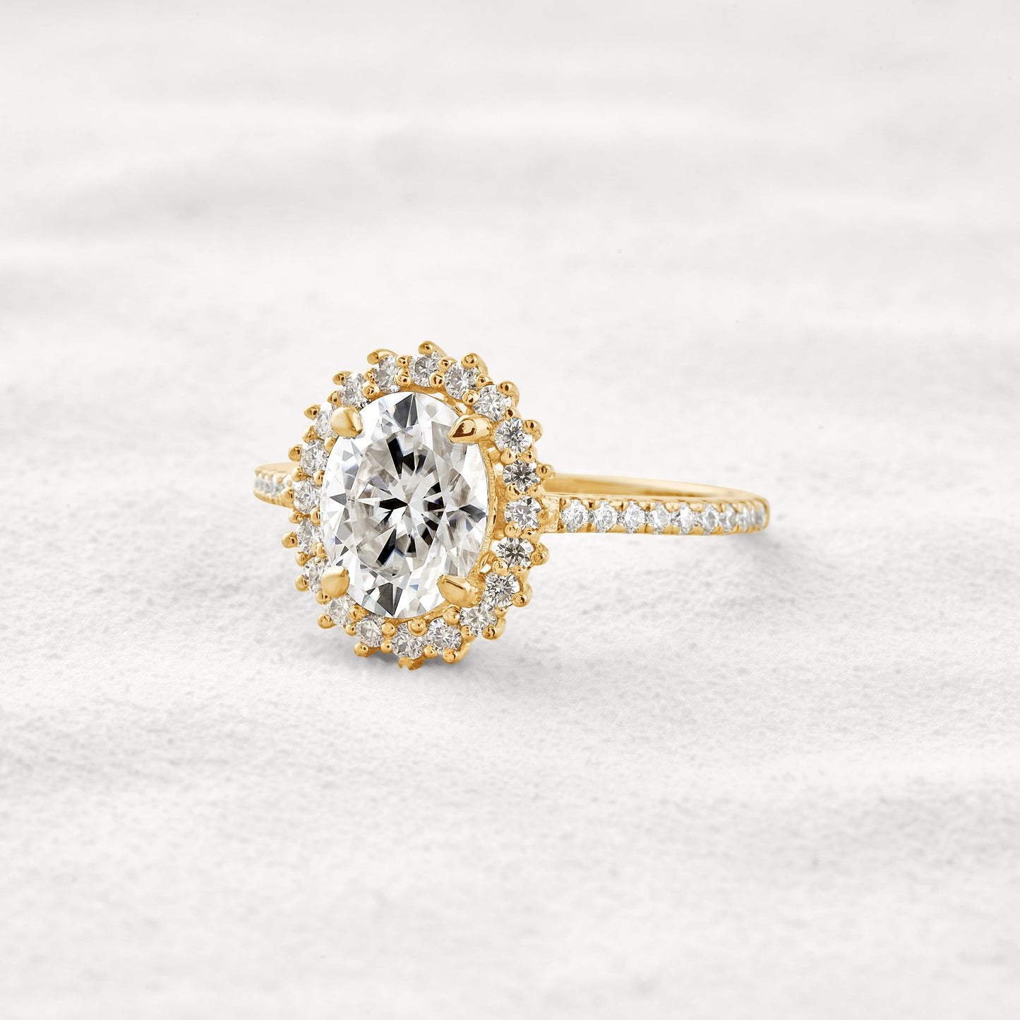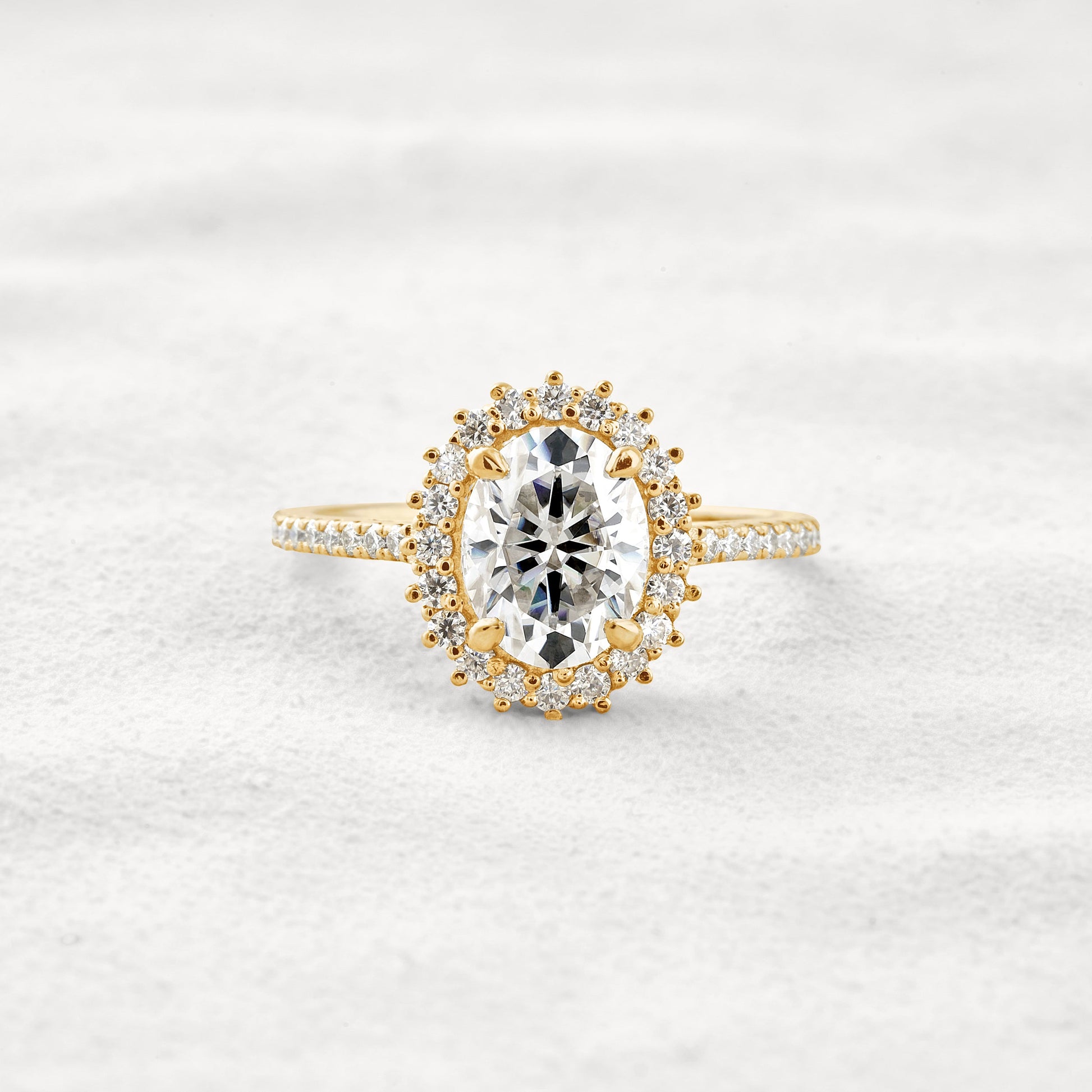 1.91 CT Oval Cut Halo & Pave Moissanite Diamond Engagement Ring In White Gold