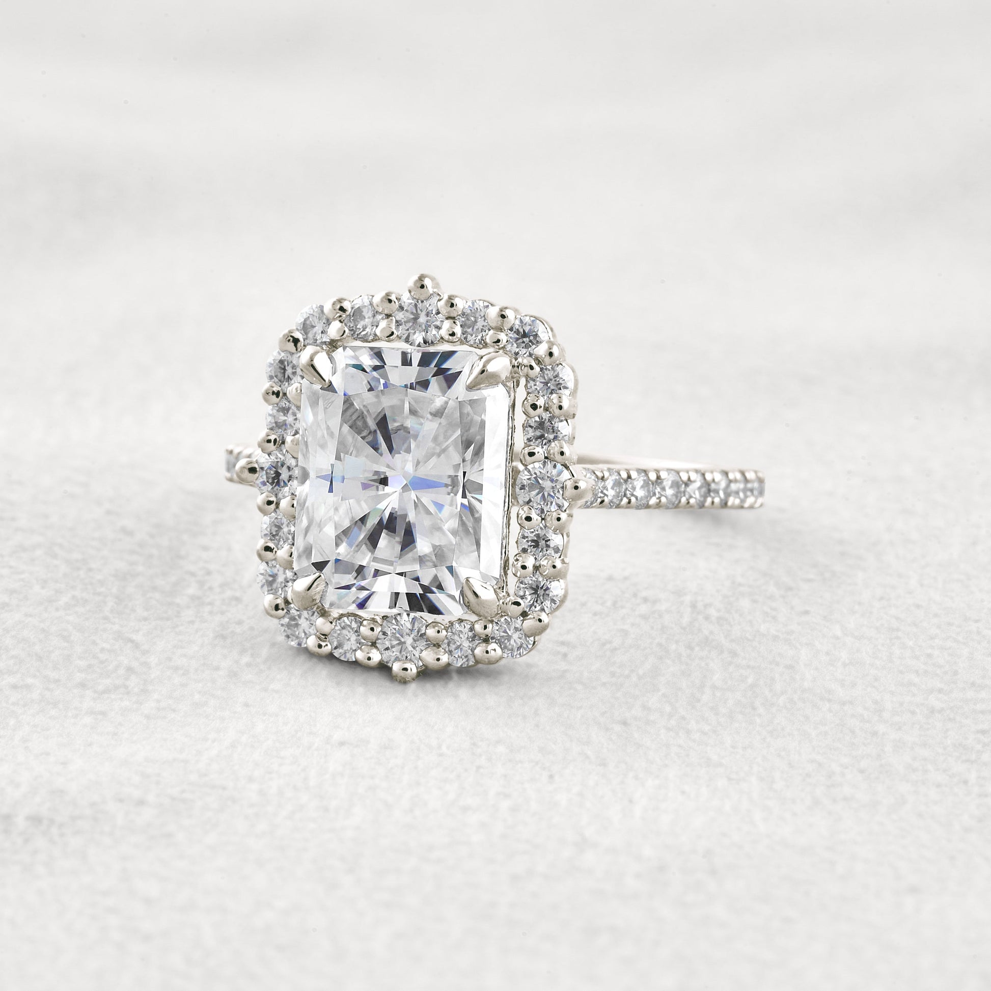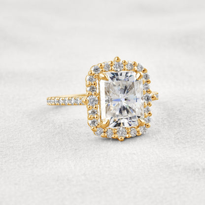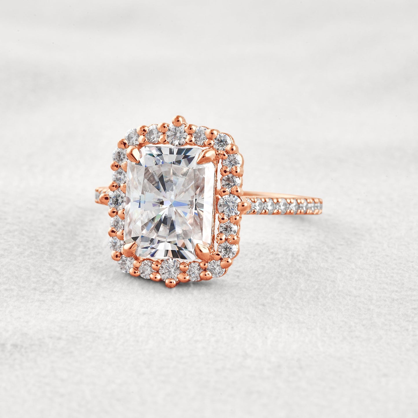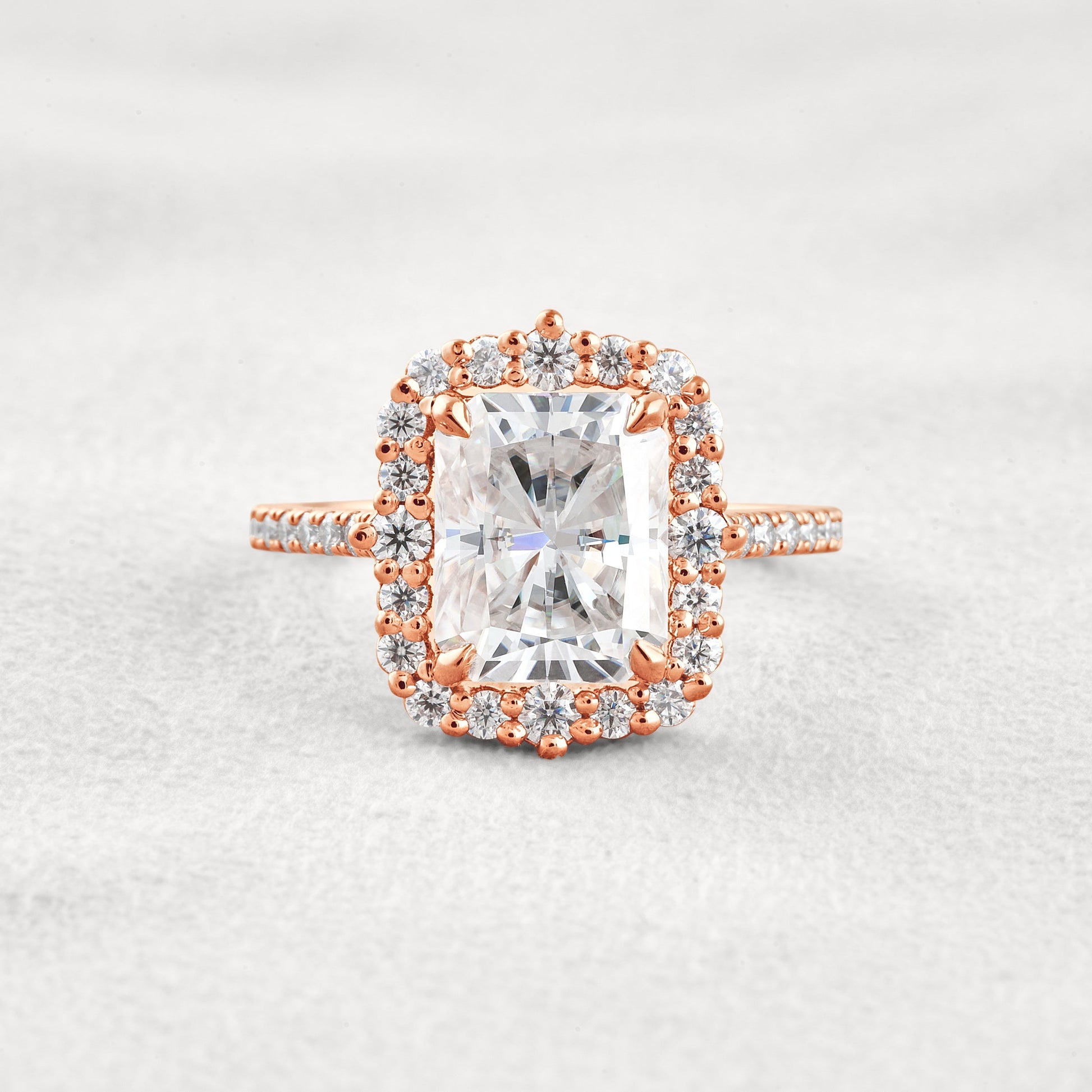 3.24 CT Radiant Cut Halo & Pave Moissanite Diamond Engagement Ring In Rose Gold