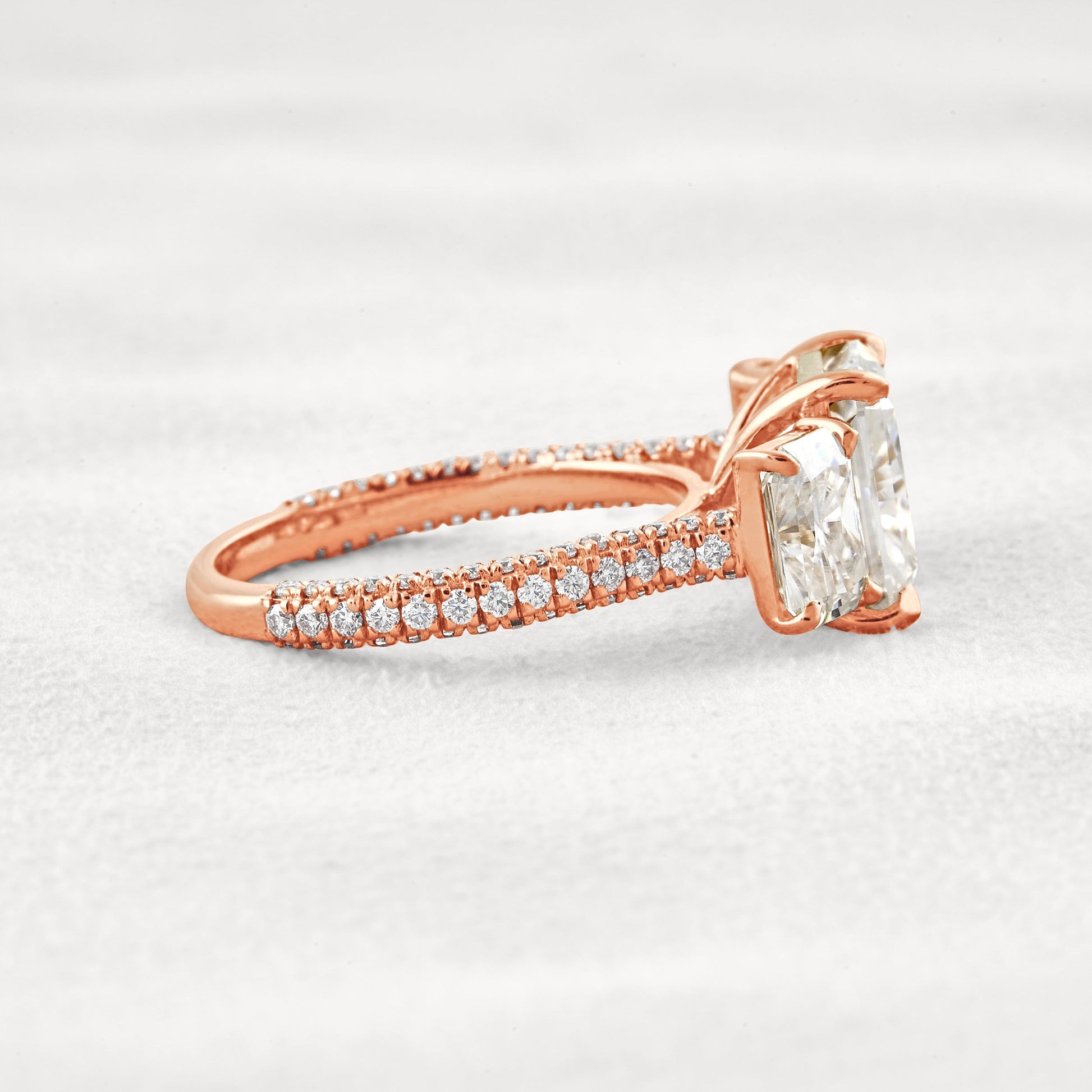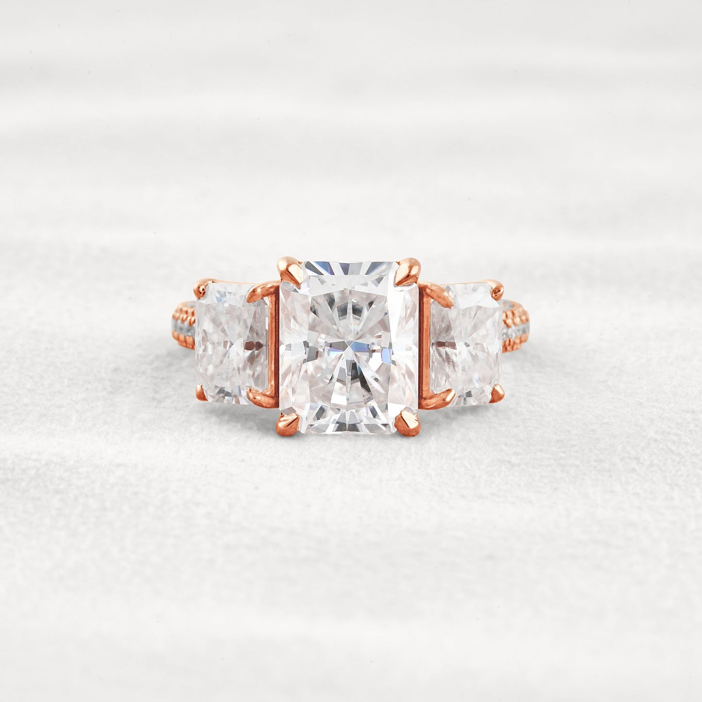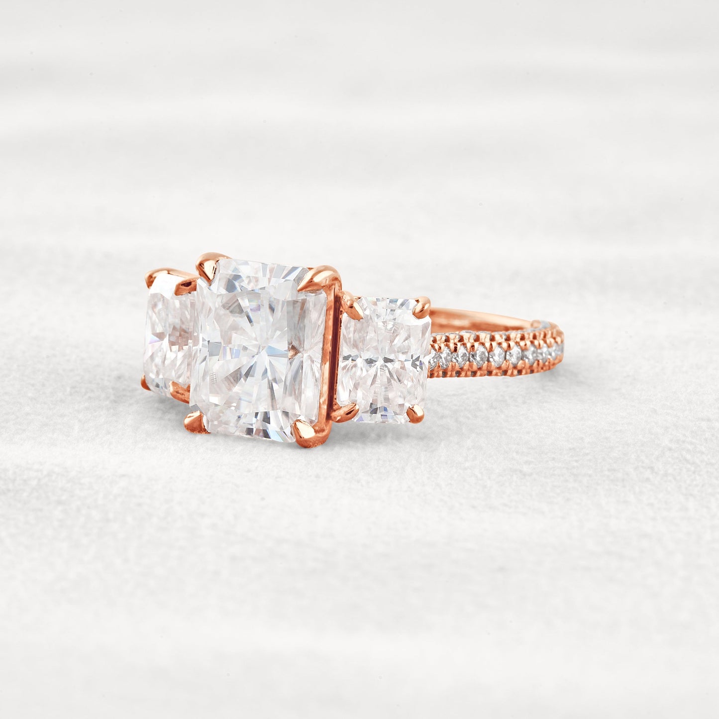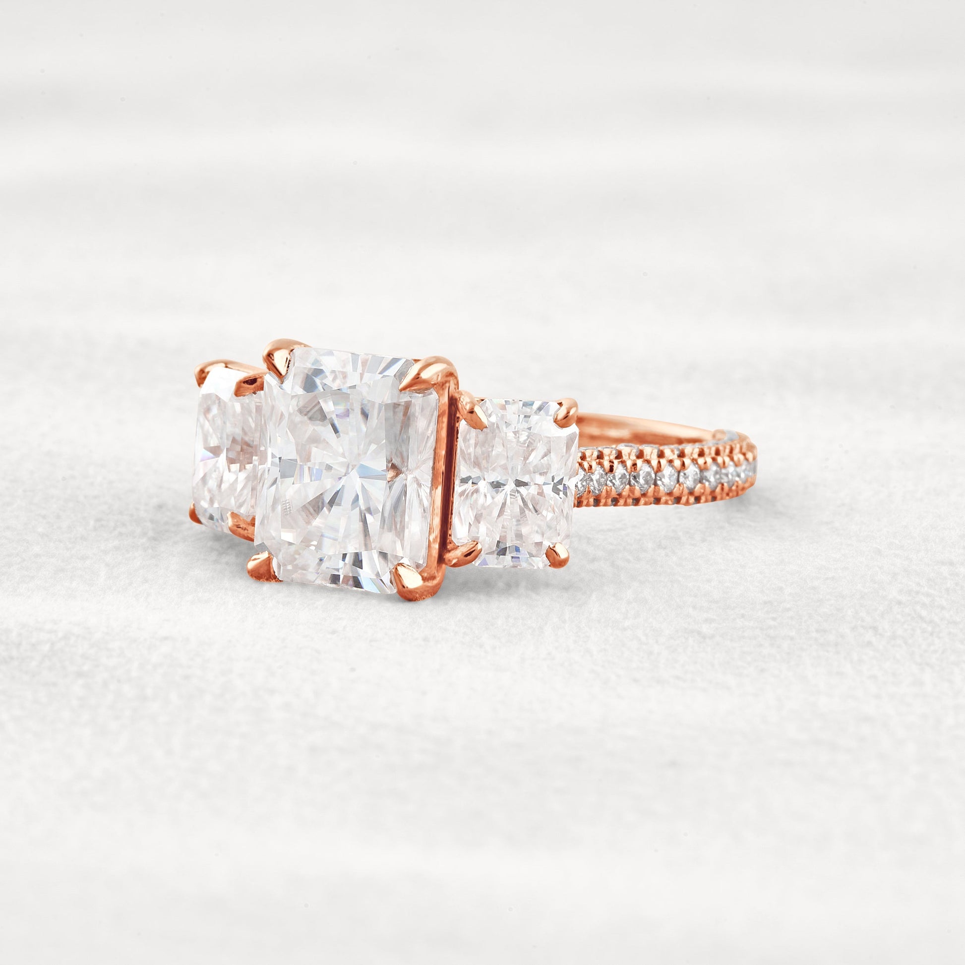 3.51 CT Radiant Cut 3 Stones Moissanite Diamond Engagement Ring In Rose Gold