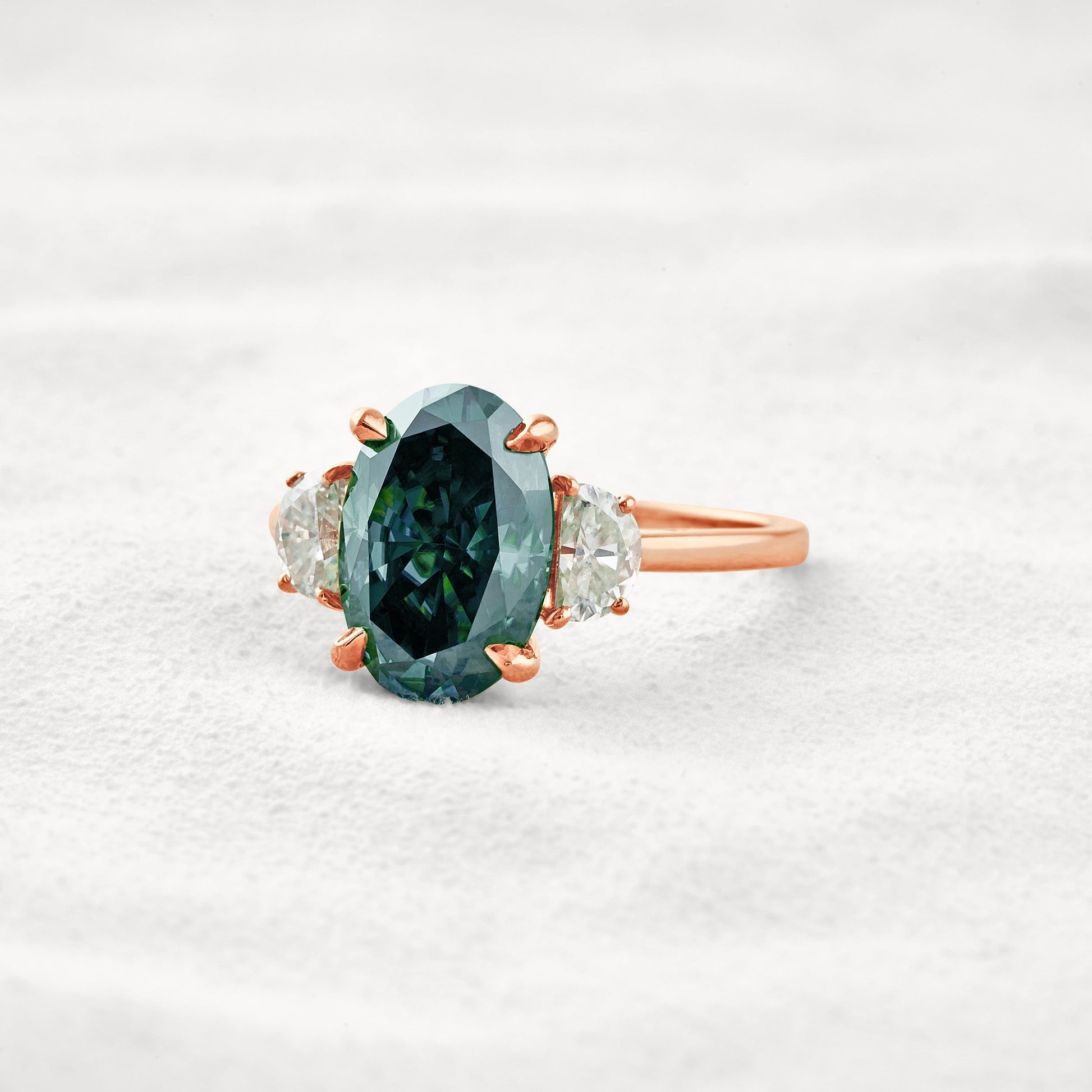 4 CT Dark Green Oval 3 Stones Cut Moissanite Diamond Engagement Ring In Rose Gold