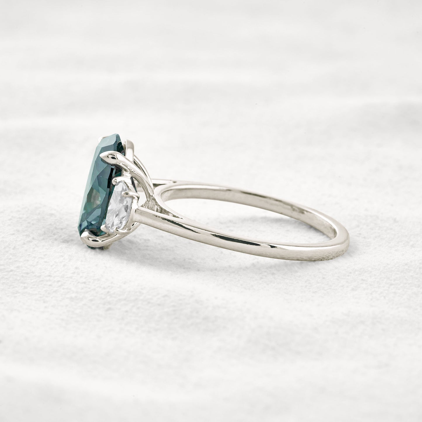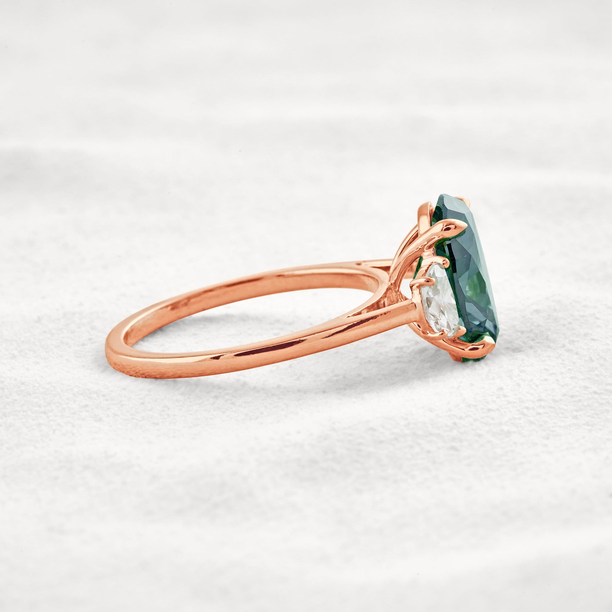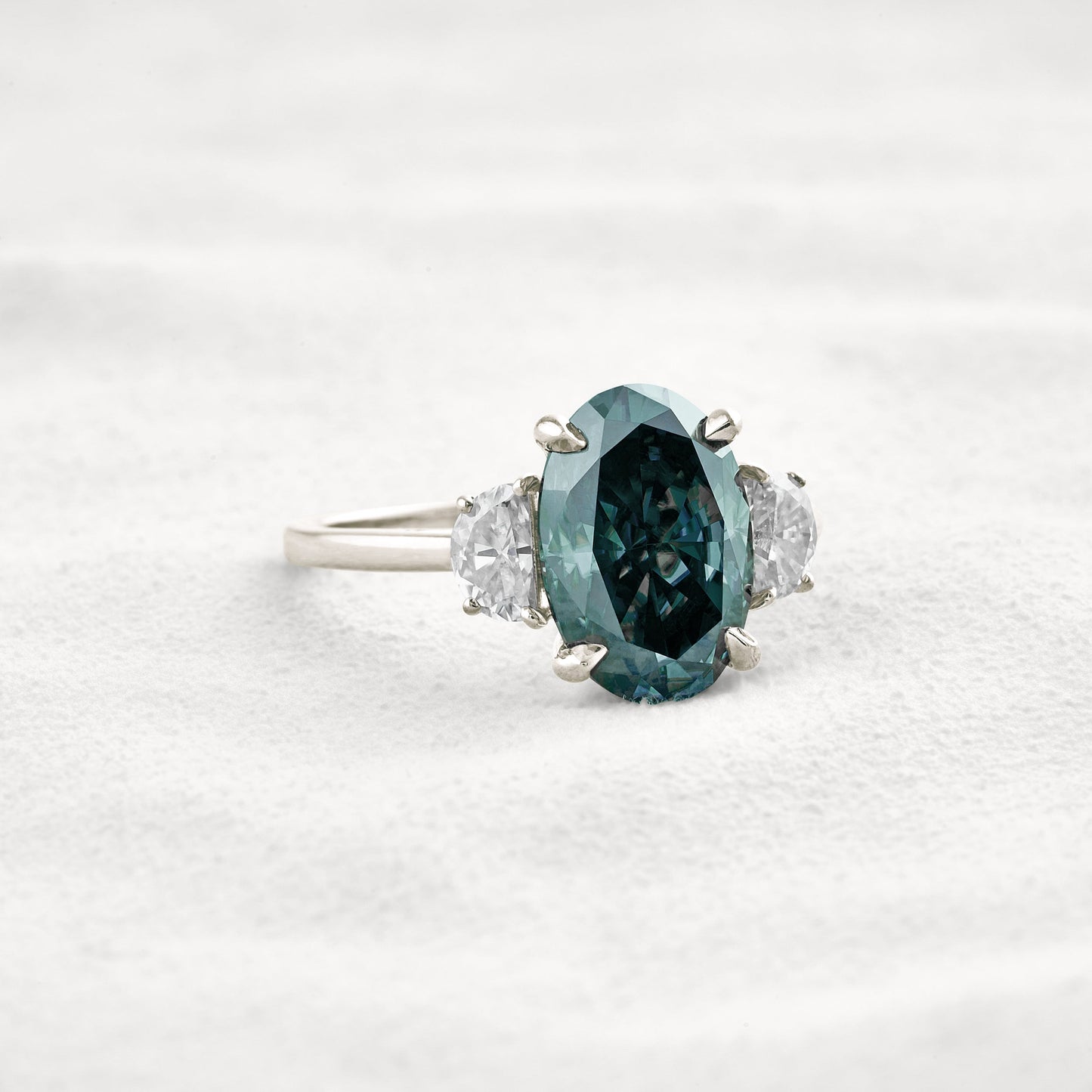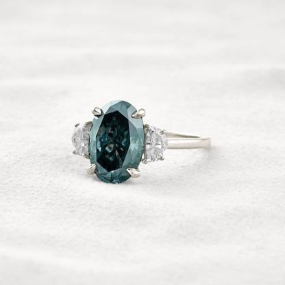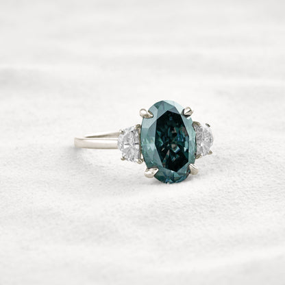 4 CT Dark Green Oval 3 Stones Cut Moissanite Diamond Engagement Ring In White Gold