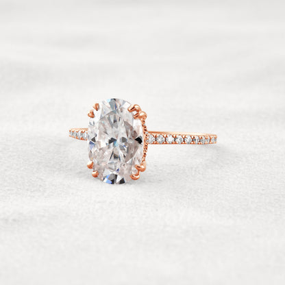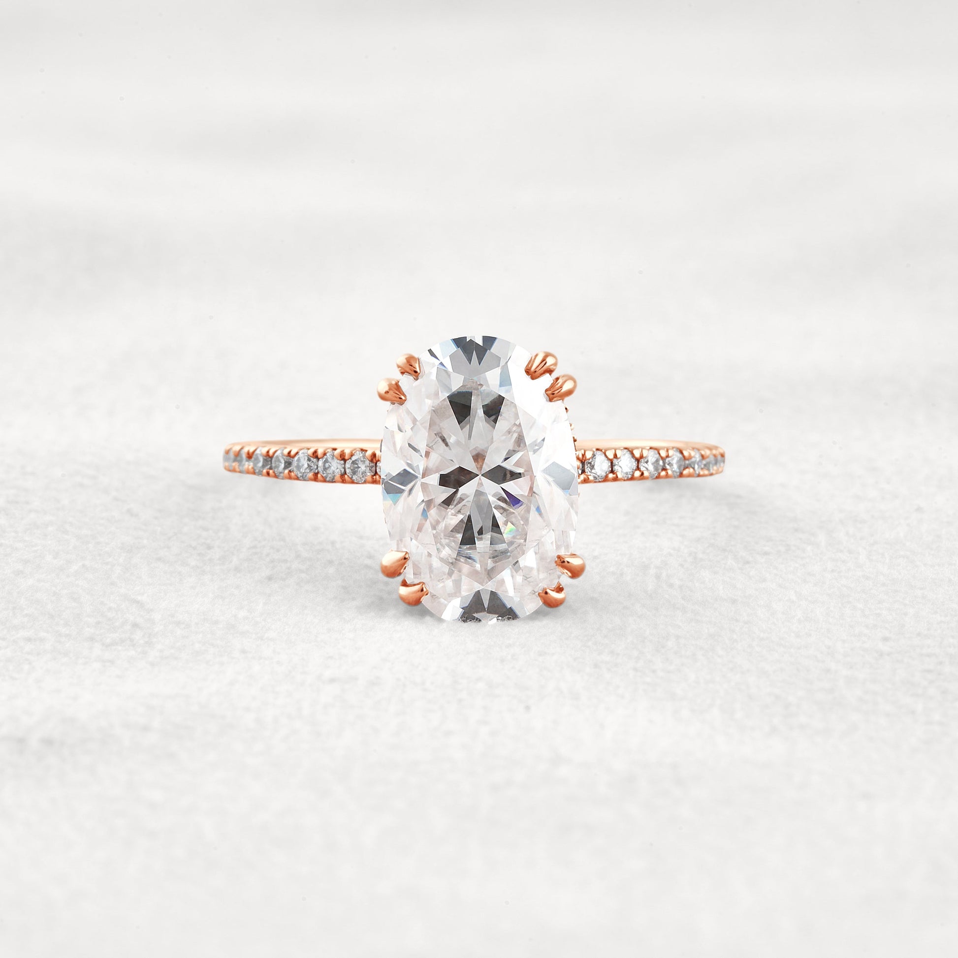 4 CT Oval Cut Pave Moissanite Diamond Engagement Ring & Wedding Ring In Rose Gold