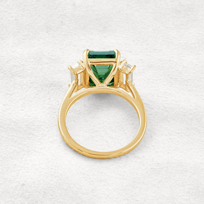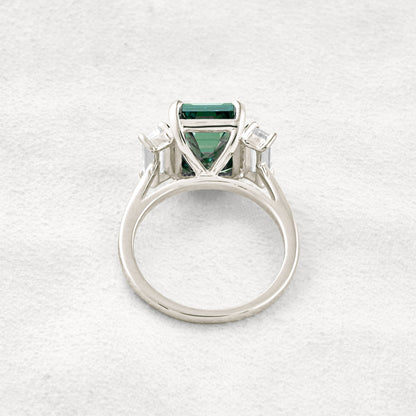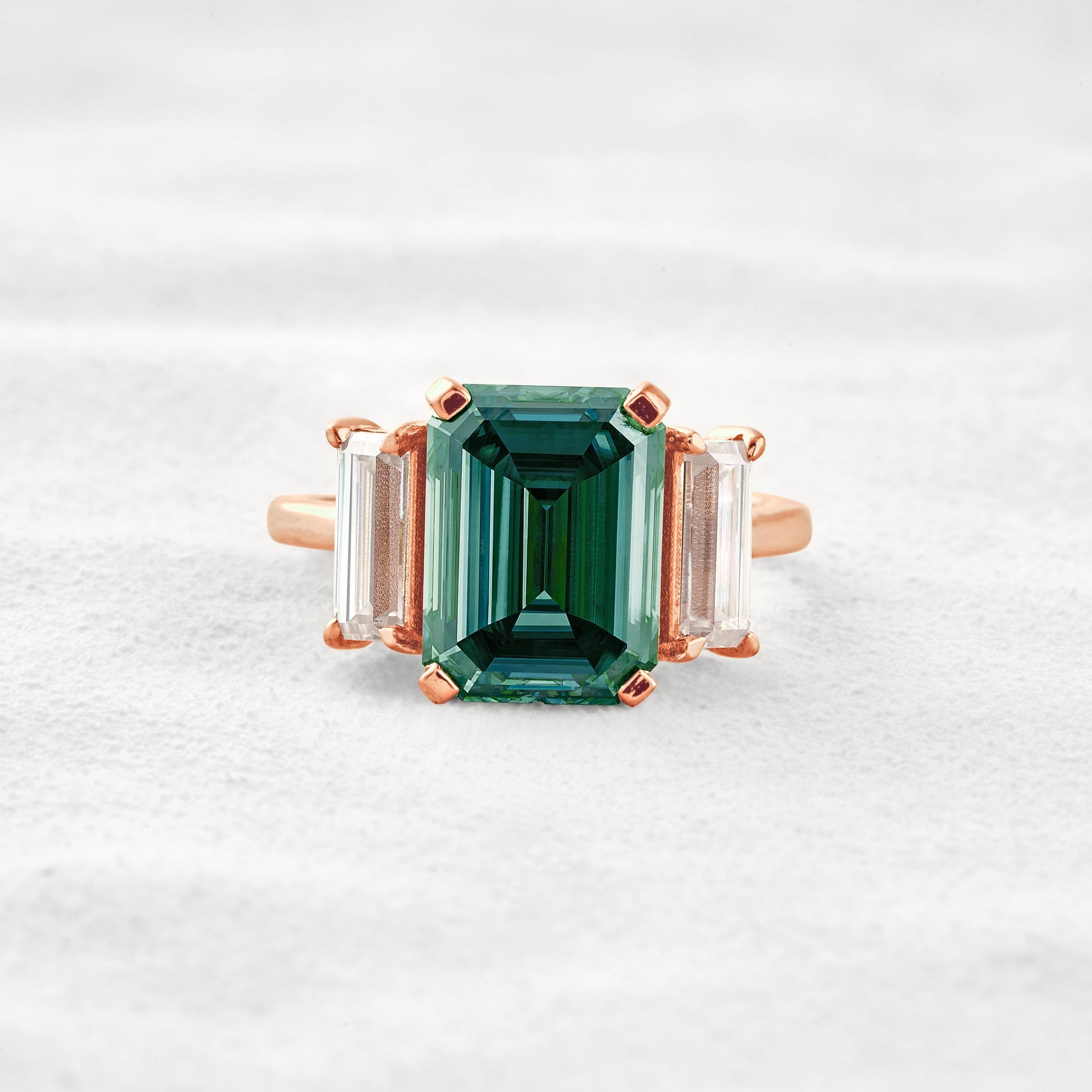 6.2 CT Dark Green Emerald Cut 3 Stones Moissanite Diamond Engagement Ring In Rose Gold