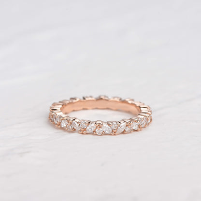 0.4 CT Round & Marquise Moissanite Diamond Alternative Stone Wedding Band