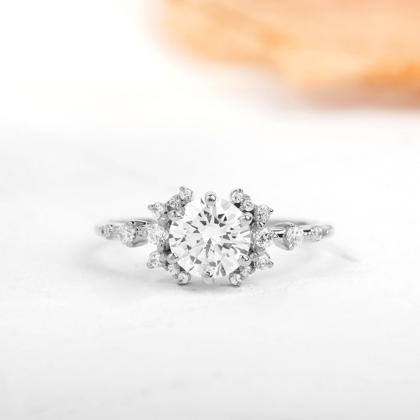 1.3 CT Round Cut Moissanite Diamond Engagement Ring