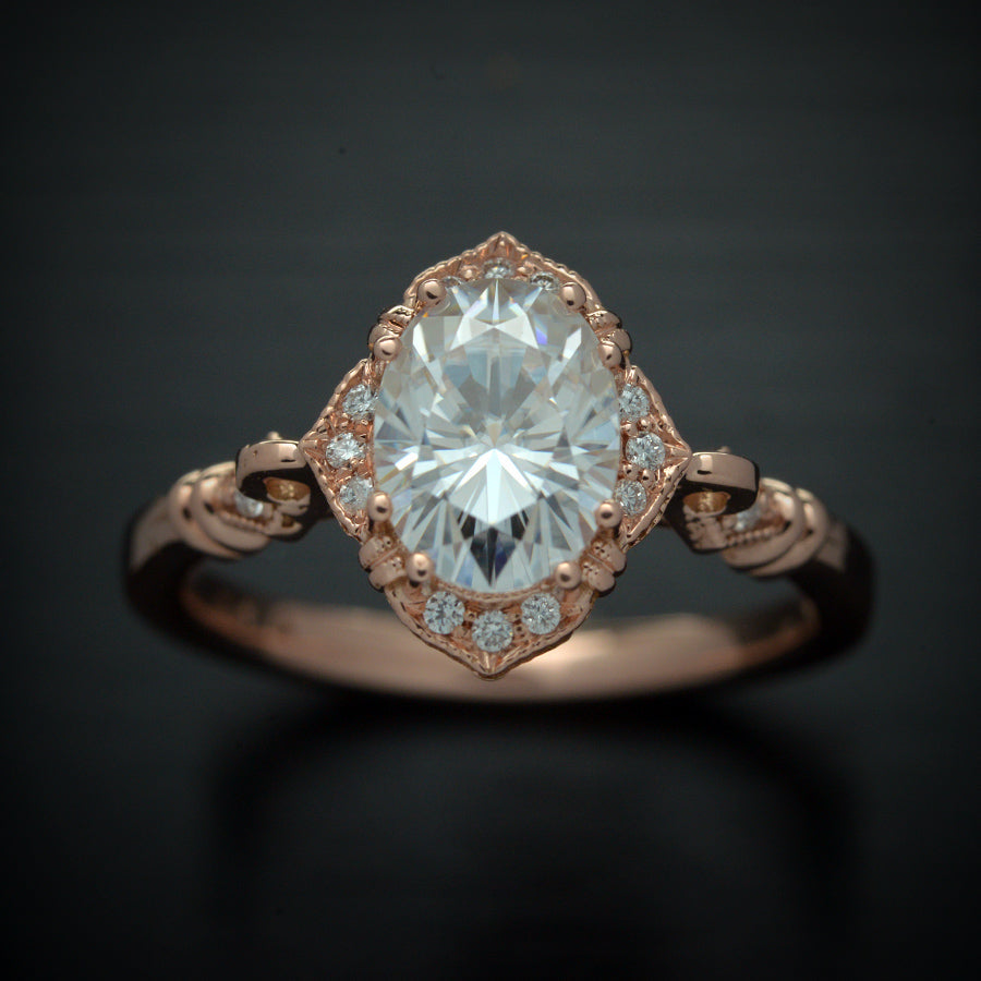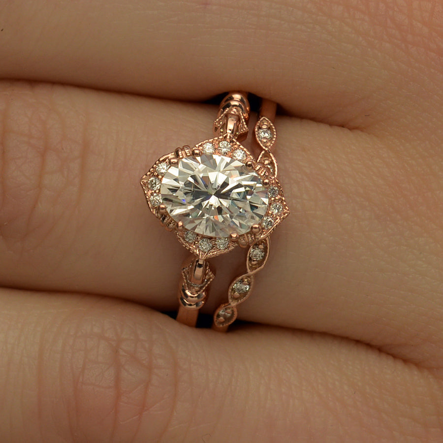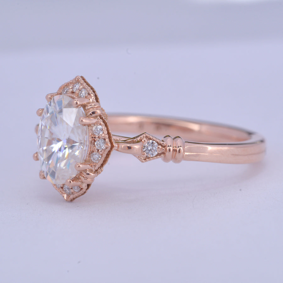 1.33 CT Oval Moissanite Diamond Vintage Engagement Ring